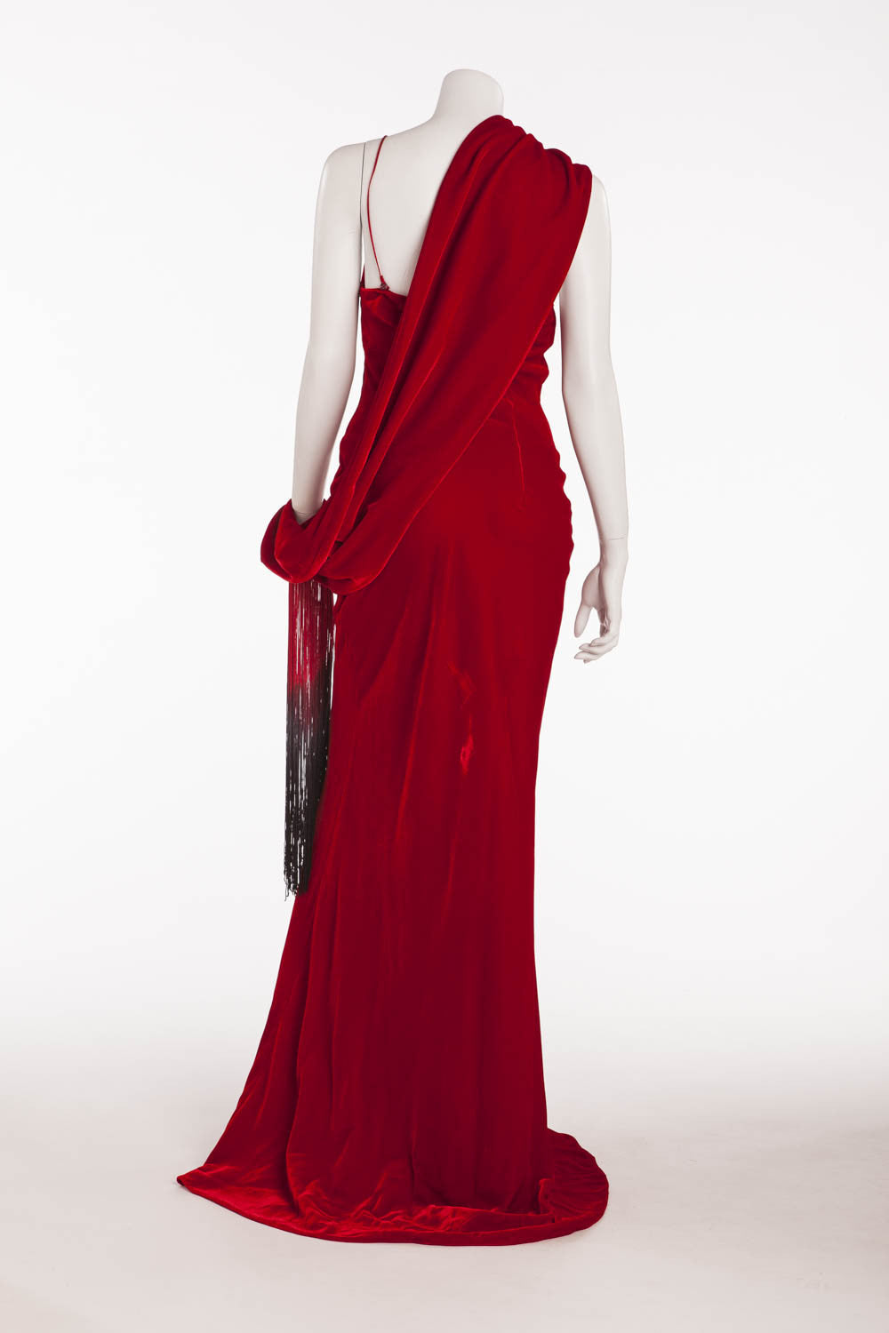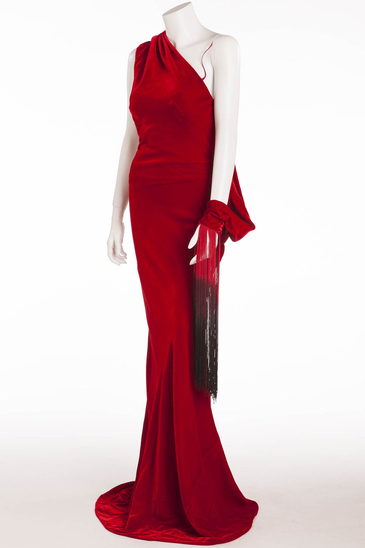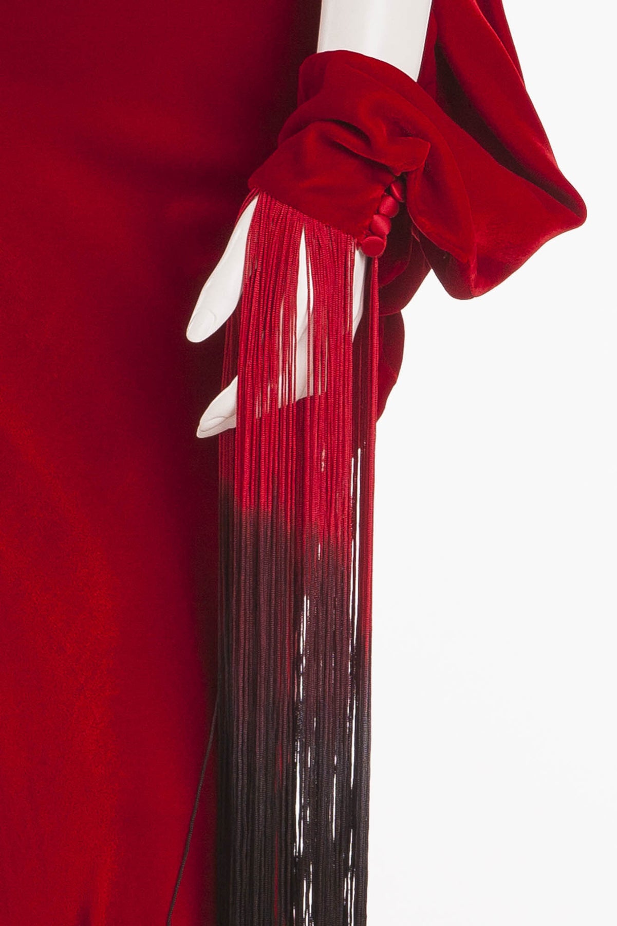 Original Alexander McQueen - Red Long Velvet Grecian Gown with Arm Tassel - IT 40