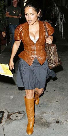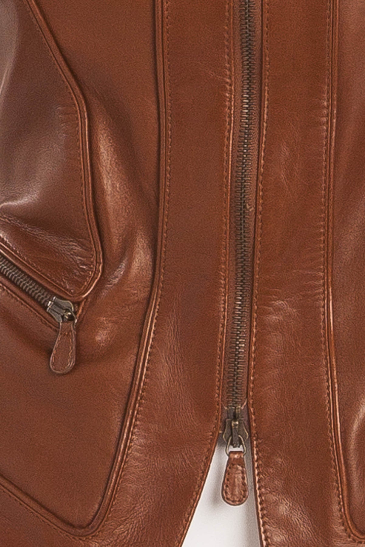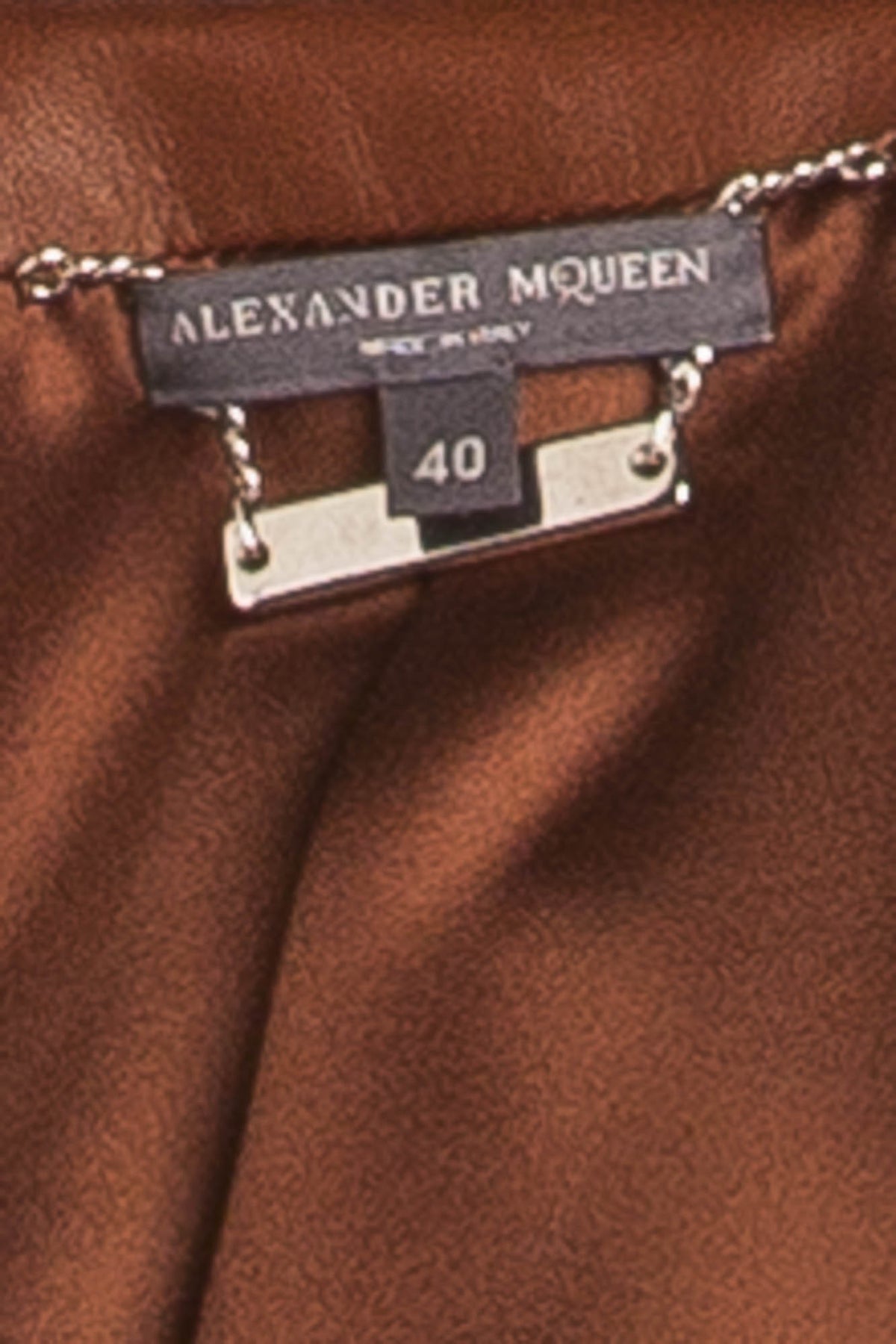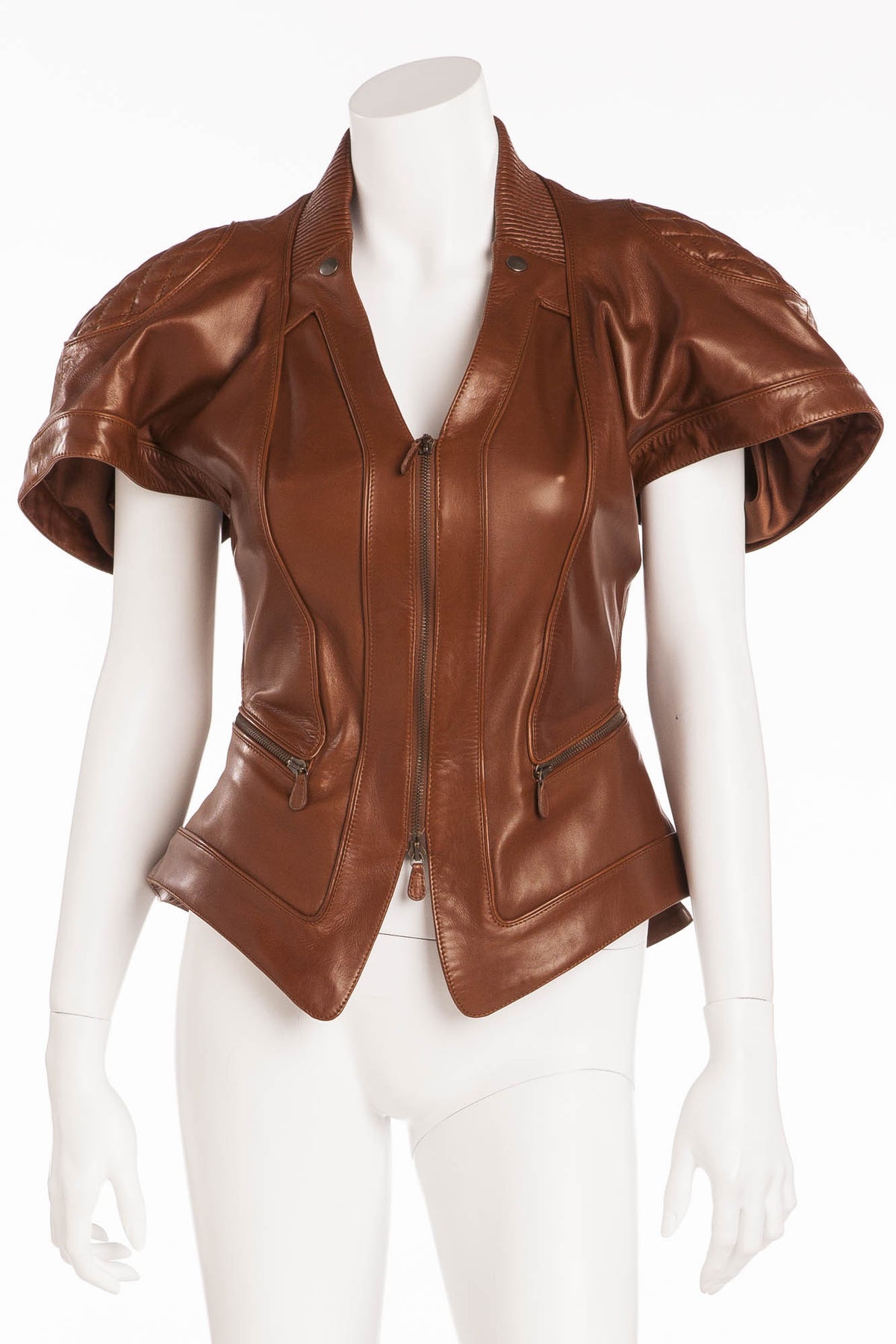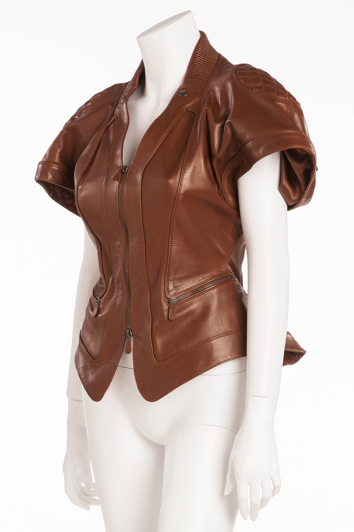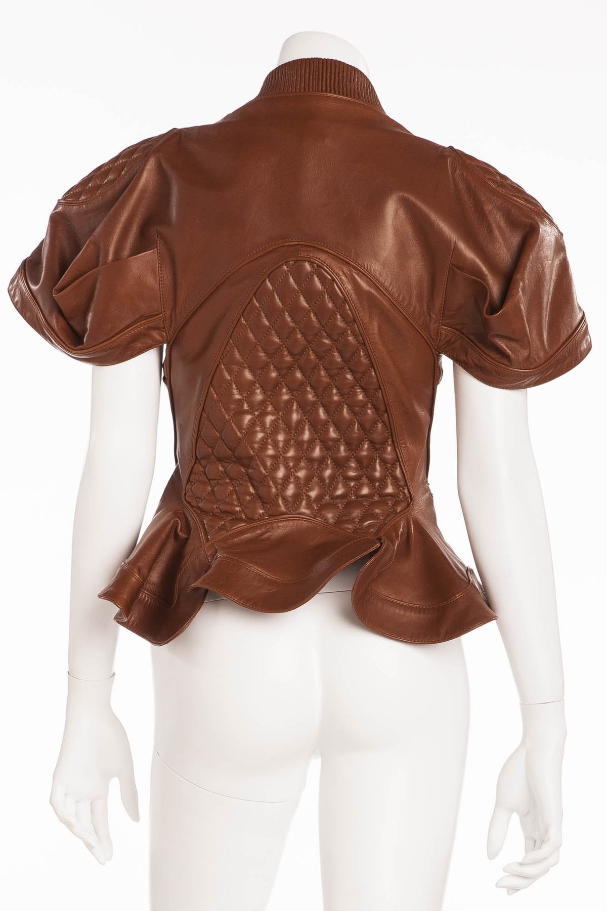 Original Alexander McQueen - Editorial, Tan Short Sleeve Peplum Leather Jacket - IT 40