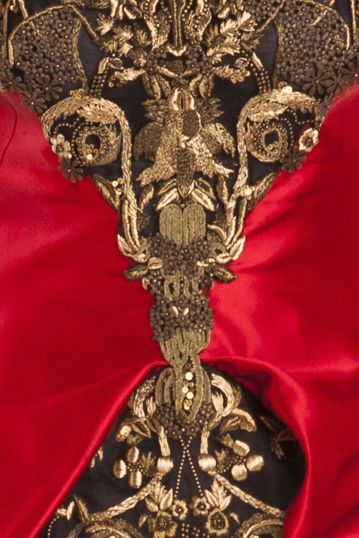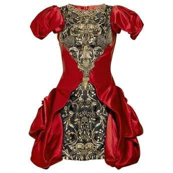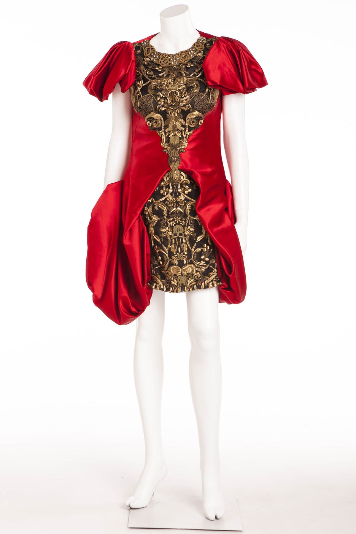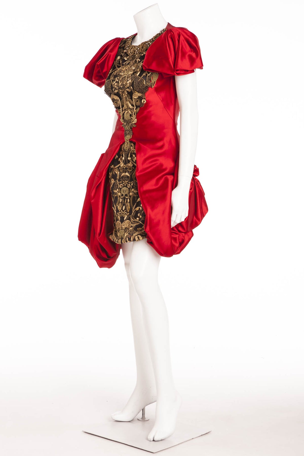 Original Alexander McQueen - As Seen on Beyonce - Short Sleeve Red Dress Embellished Bronze Front Mini Dress - IT 42