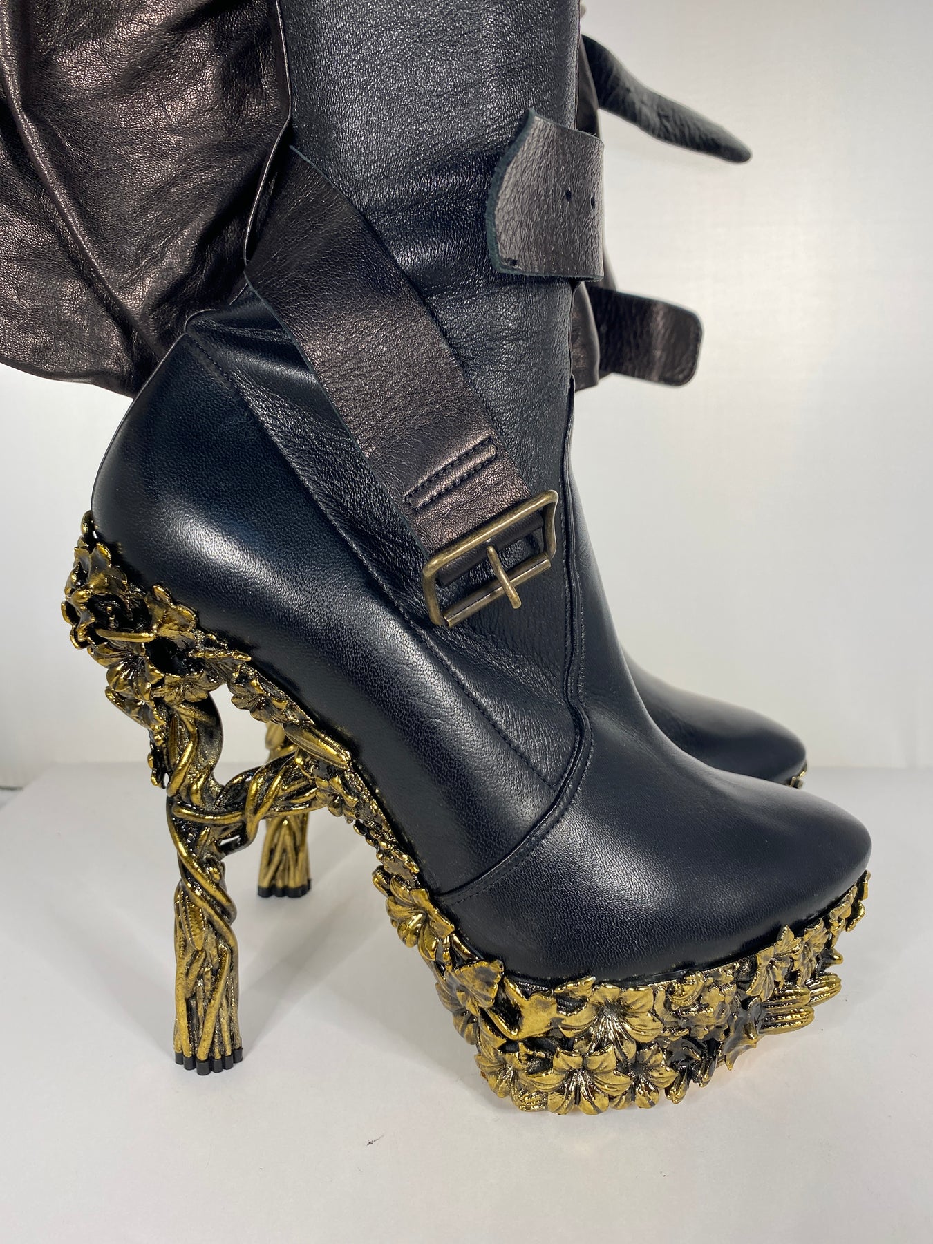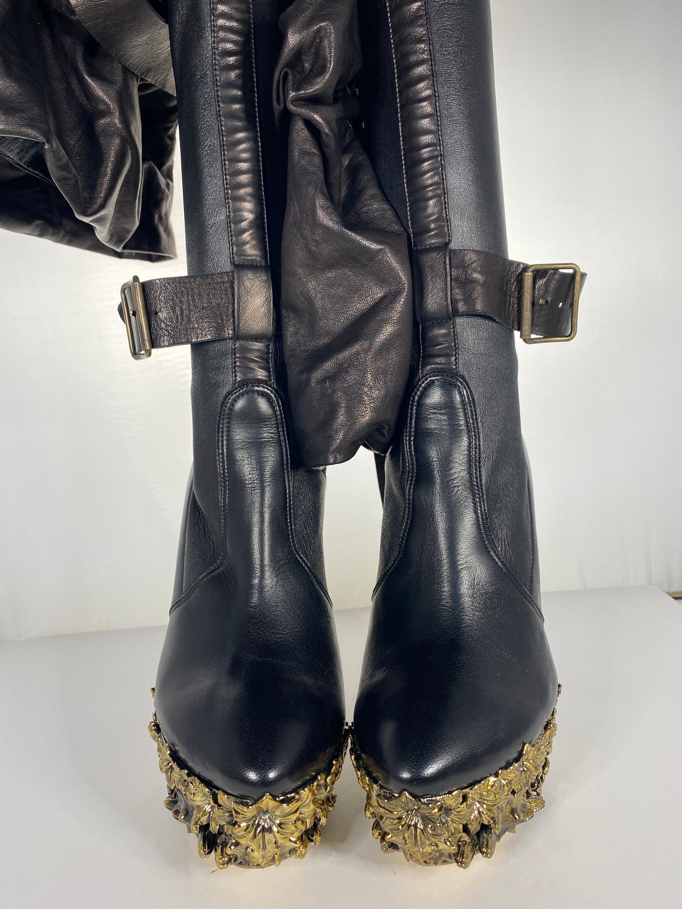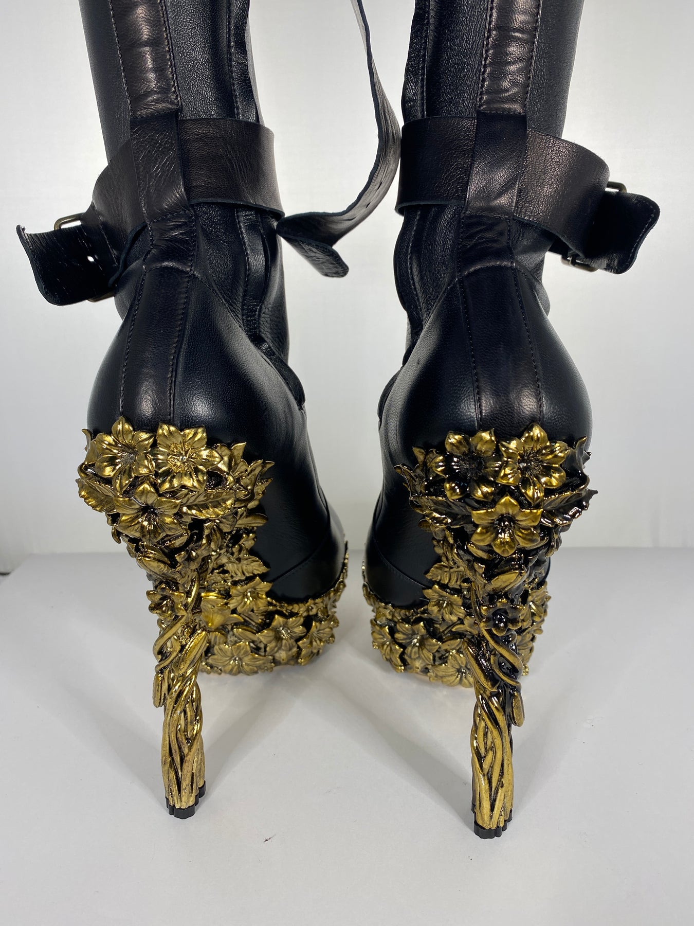 Extremely Rare Collectible 100% Authentic Dress and boots From Alexander McQueen Last Collection, Fall 2010 "Angels and Demons", Look 3, Part of only 16 Looks . This Stunning and Unique set is a Must Have for every collector since it is The last collection released after Alexander McQueen’s death and it is part of fashion history. All Original items from  that 2010 collection , influenced by English Sculptor Grinling Gibbons.