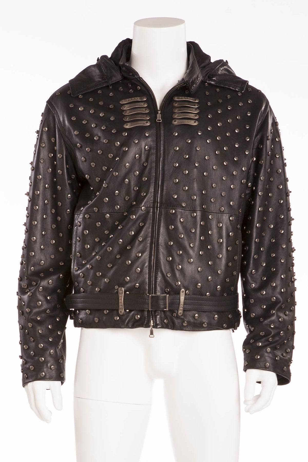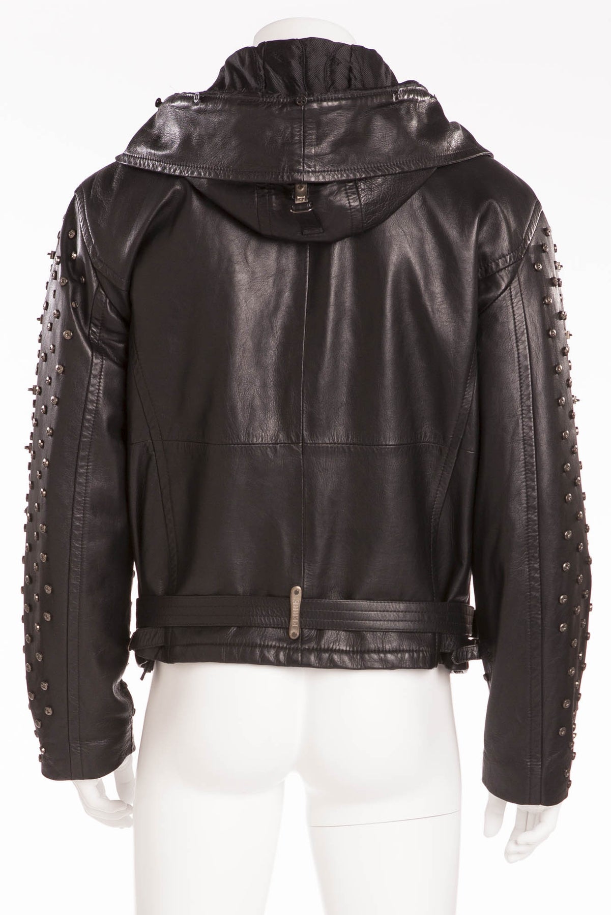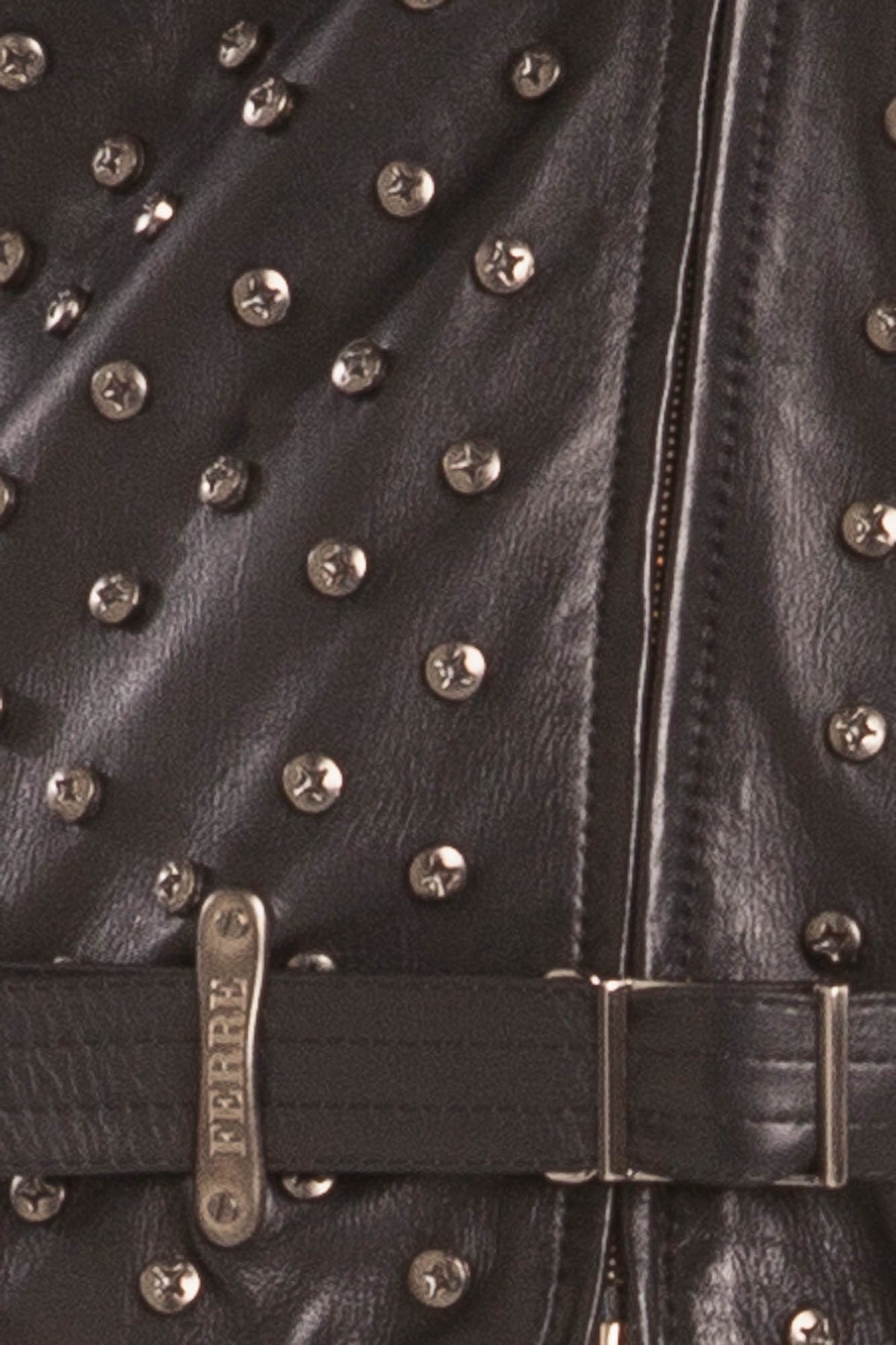 Gianfranco Ferre - Black Leather Screw Embellishment Zip Up Jacket - IT 54
