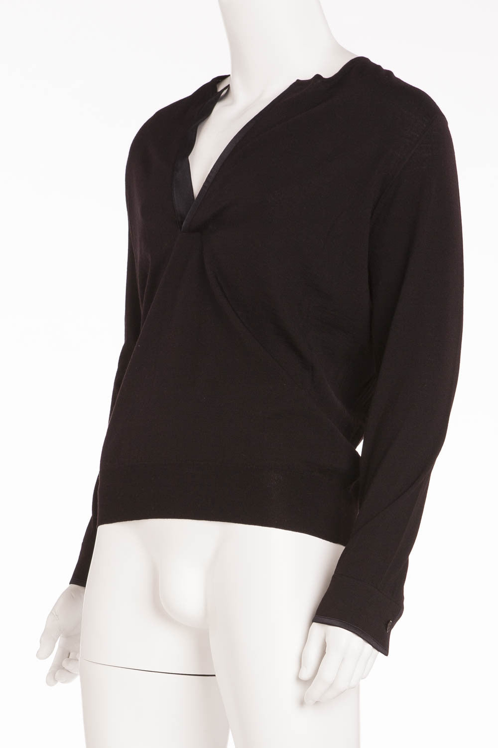 Hermes - NWT Black Long Sleeve V Neck Shirt - XL