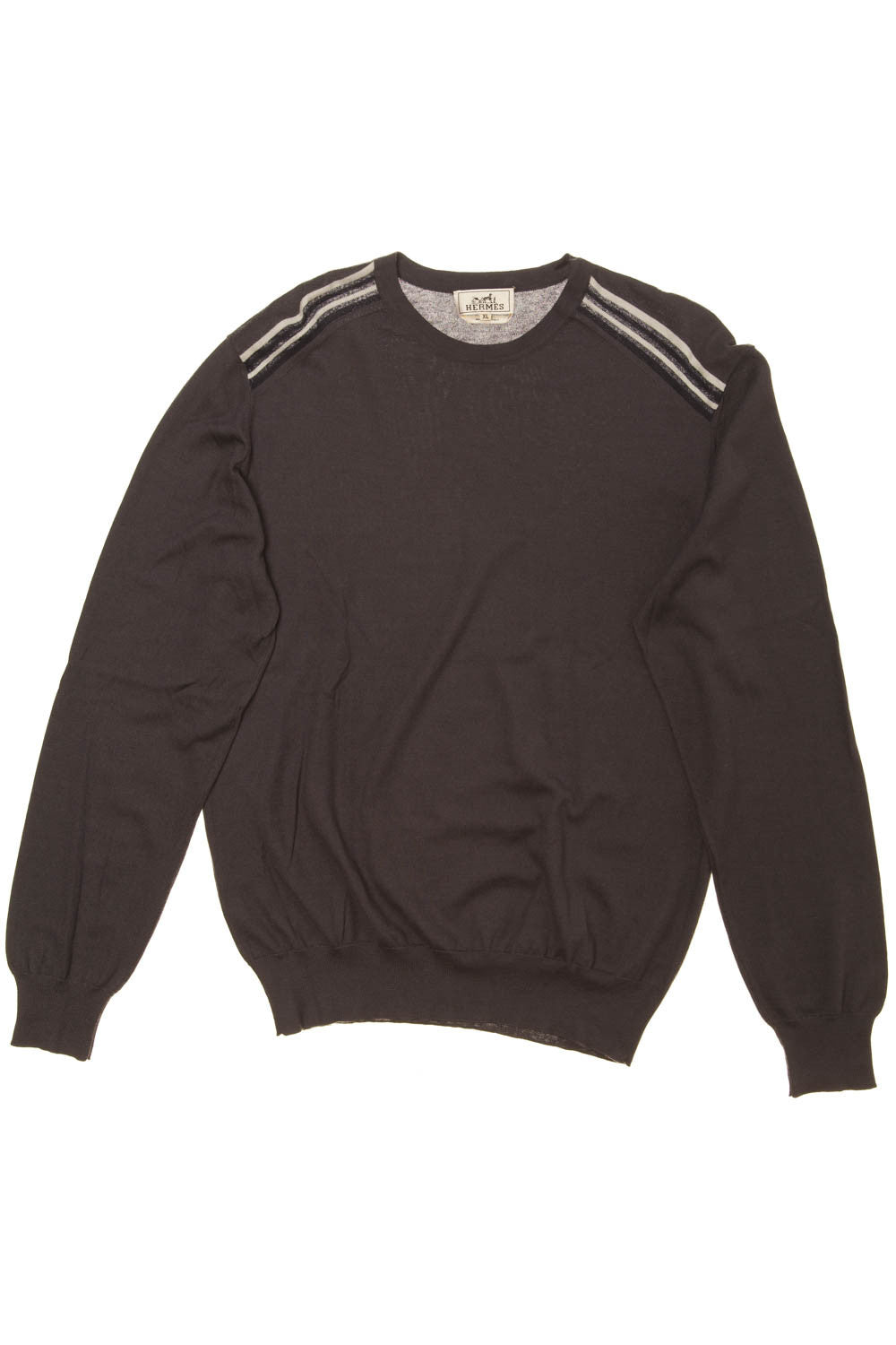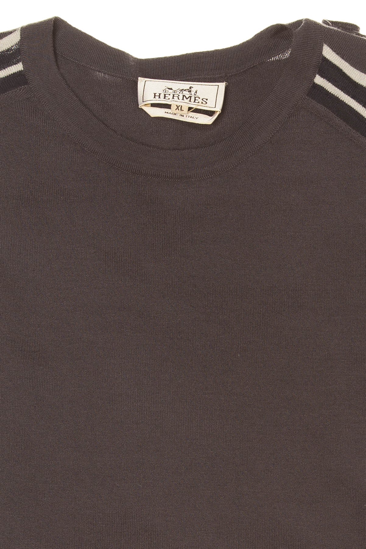 Hermes - Dark Slate Blue Long Sleeve Shirt Striped Shoulders - XL