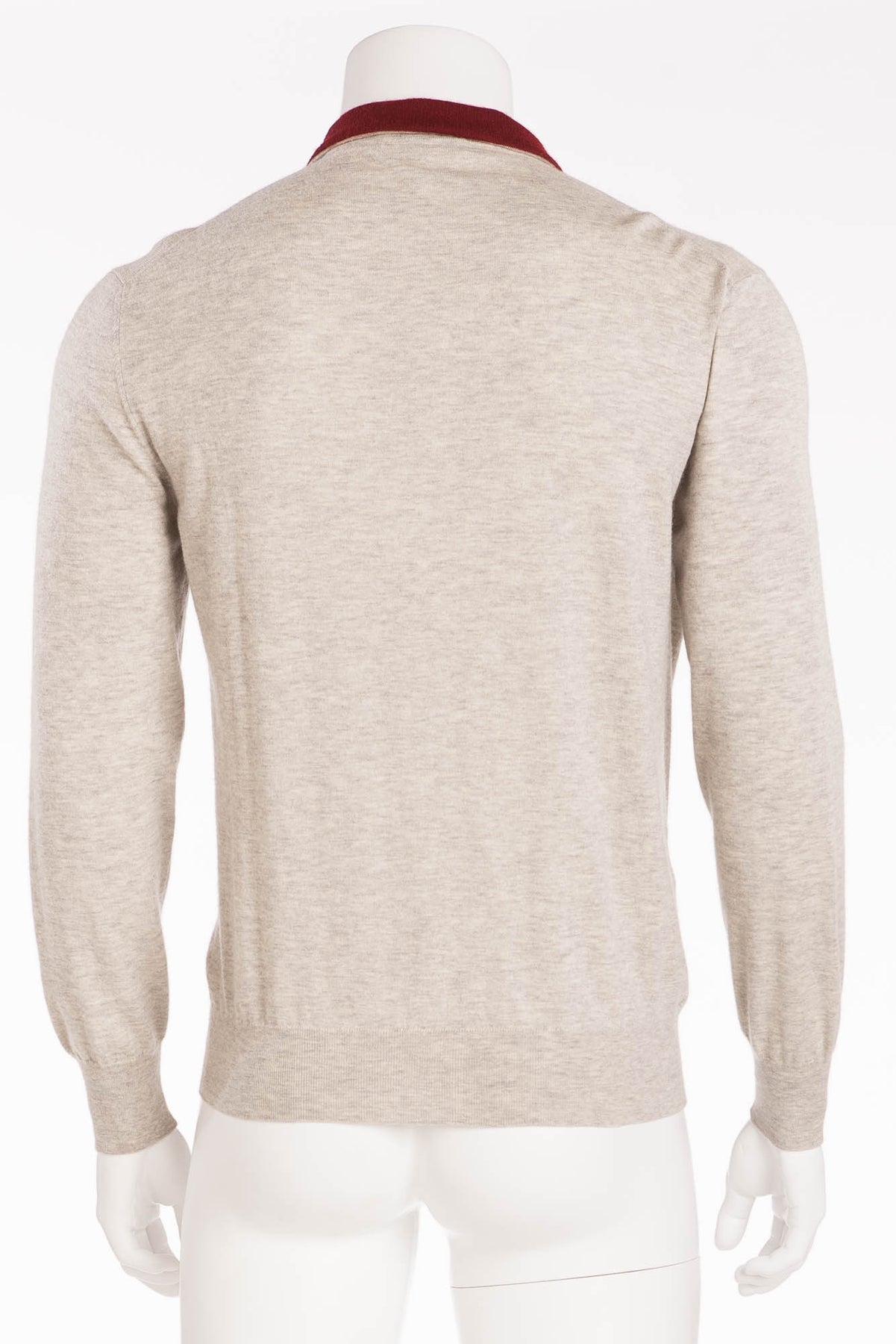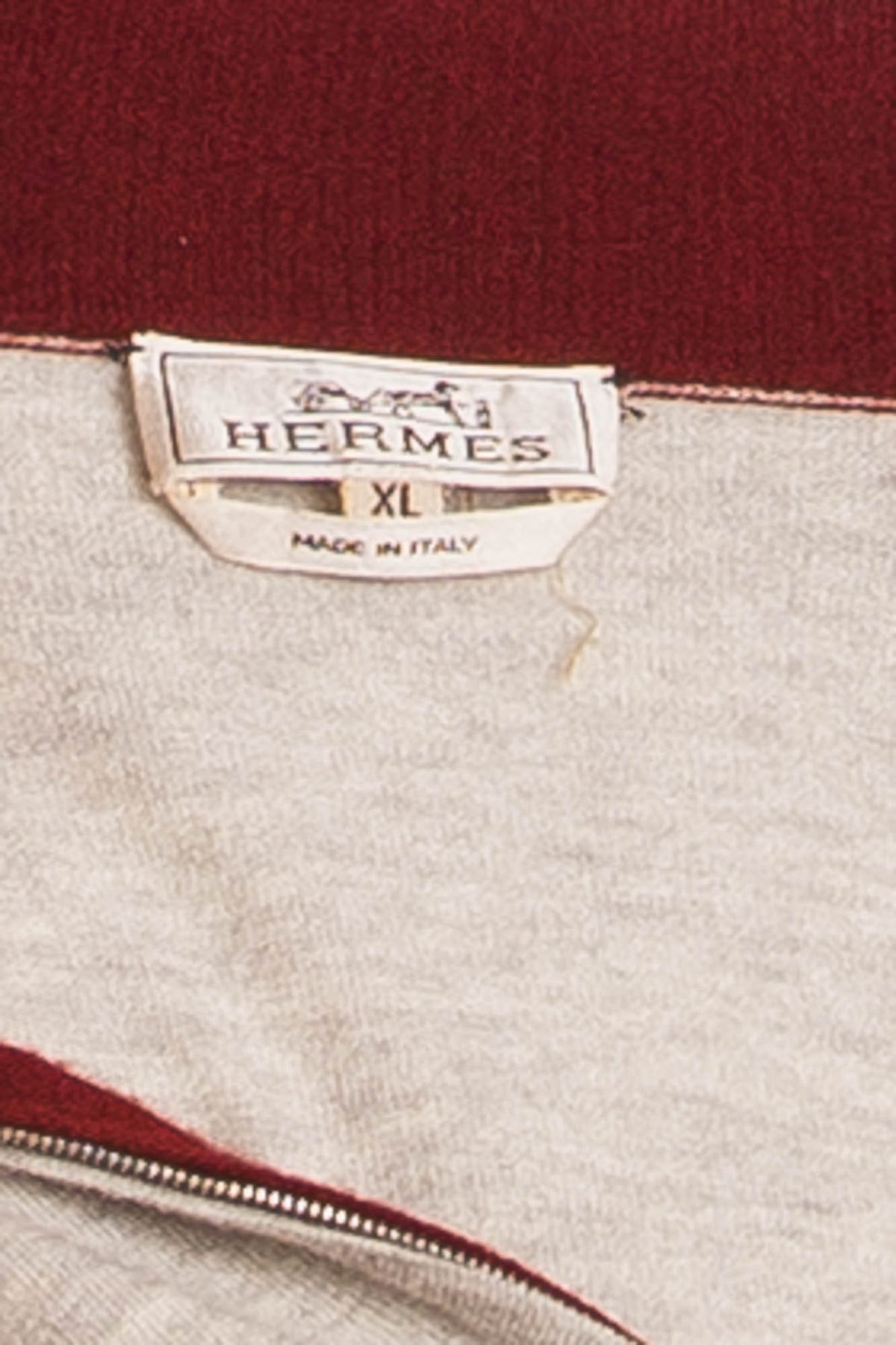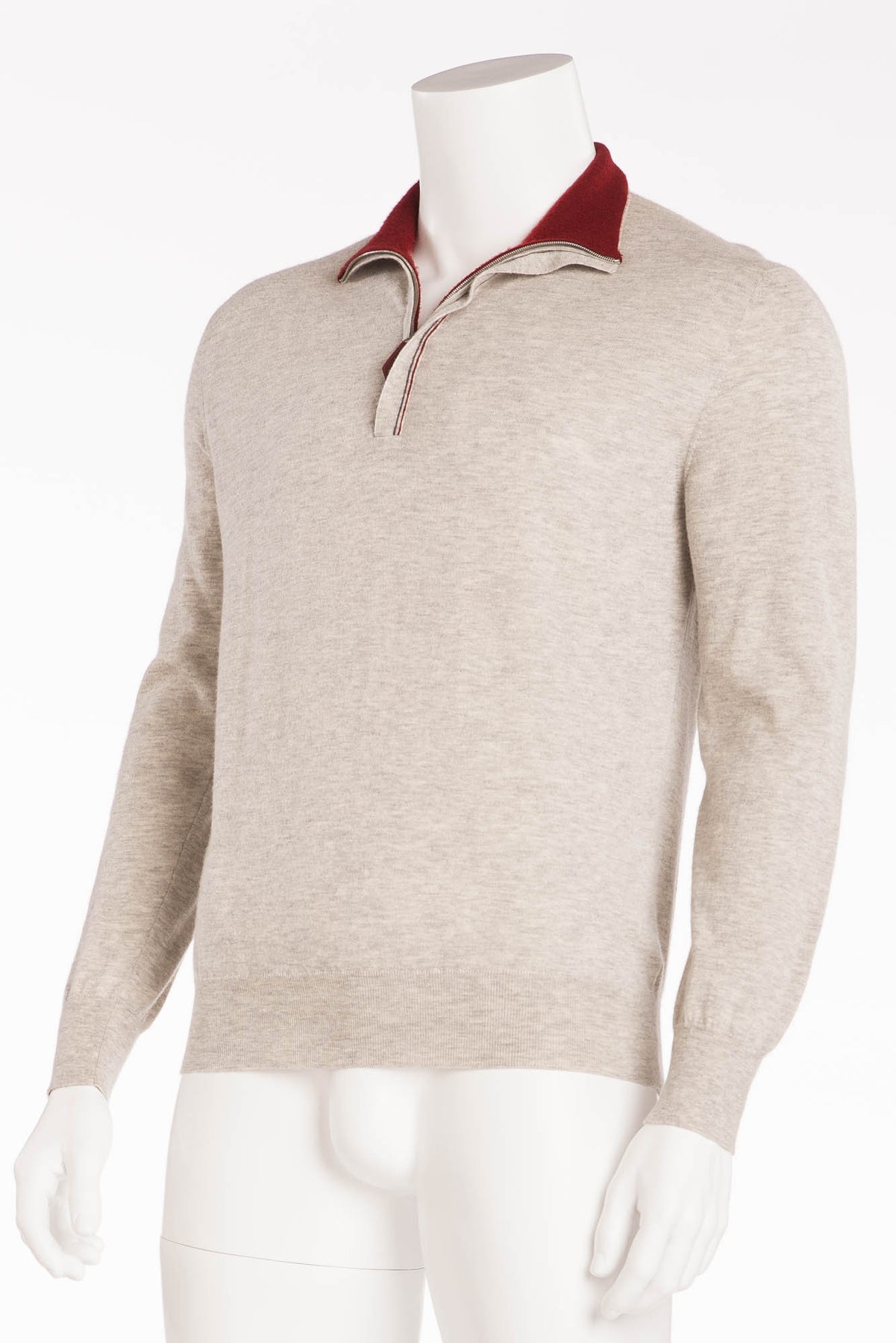 Hermes - Grey Zip Neck Cashmere Sweater with Red Collar - XL