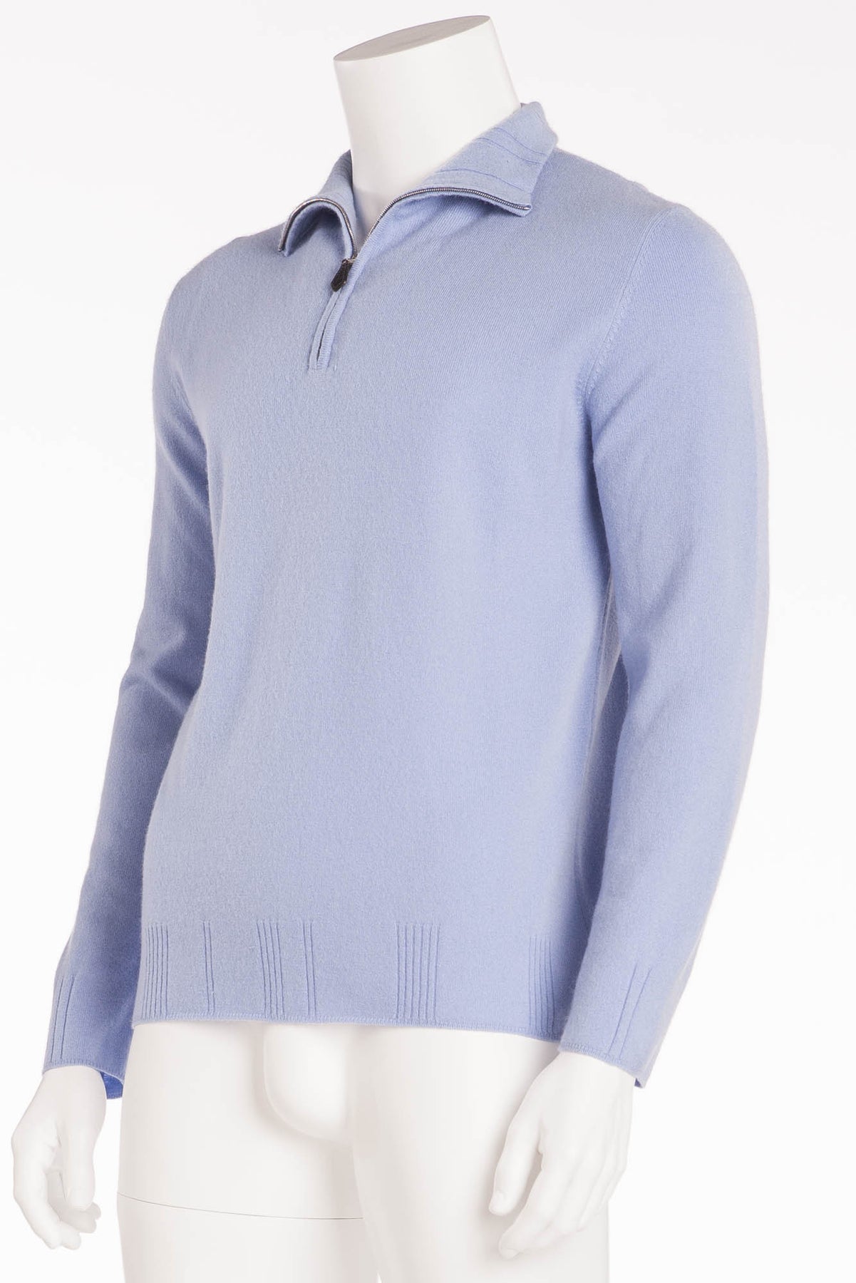 Authentic Hermes - Sky Blue Zip Neck Sweater - XL