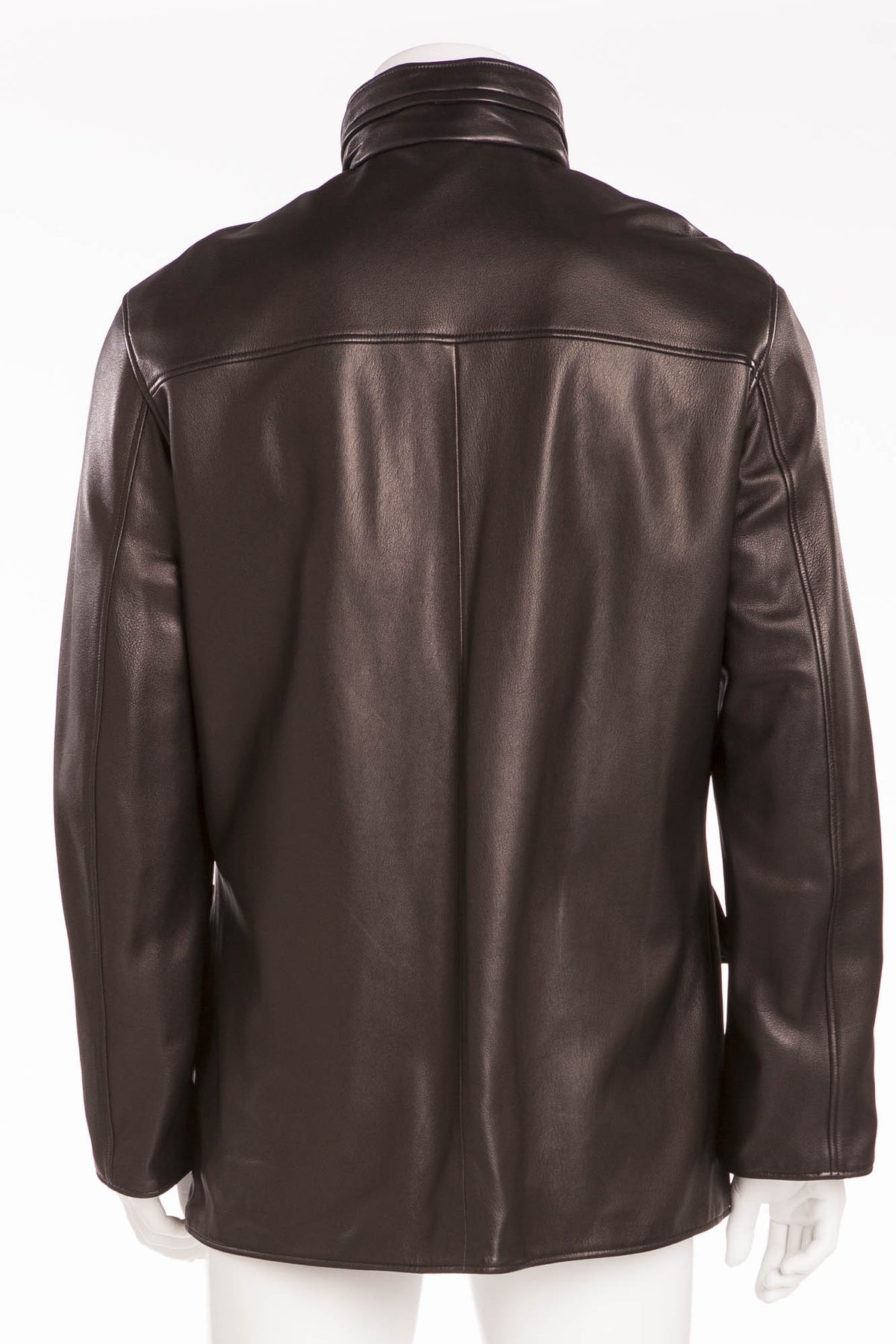Authentic Hermes - Black Leather Zip Up Jacket - IT 54
