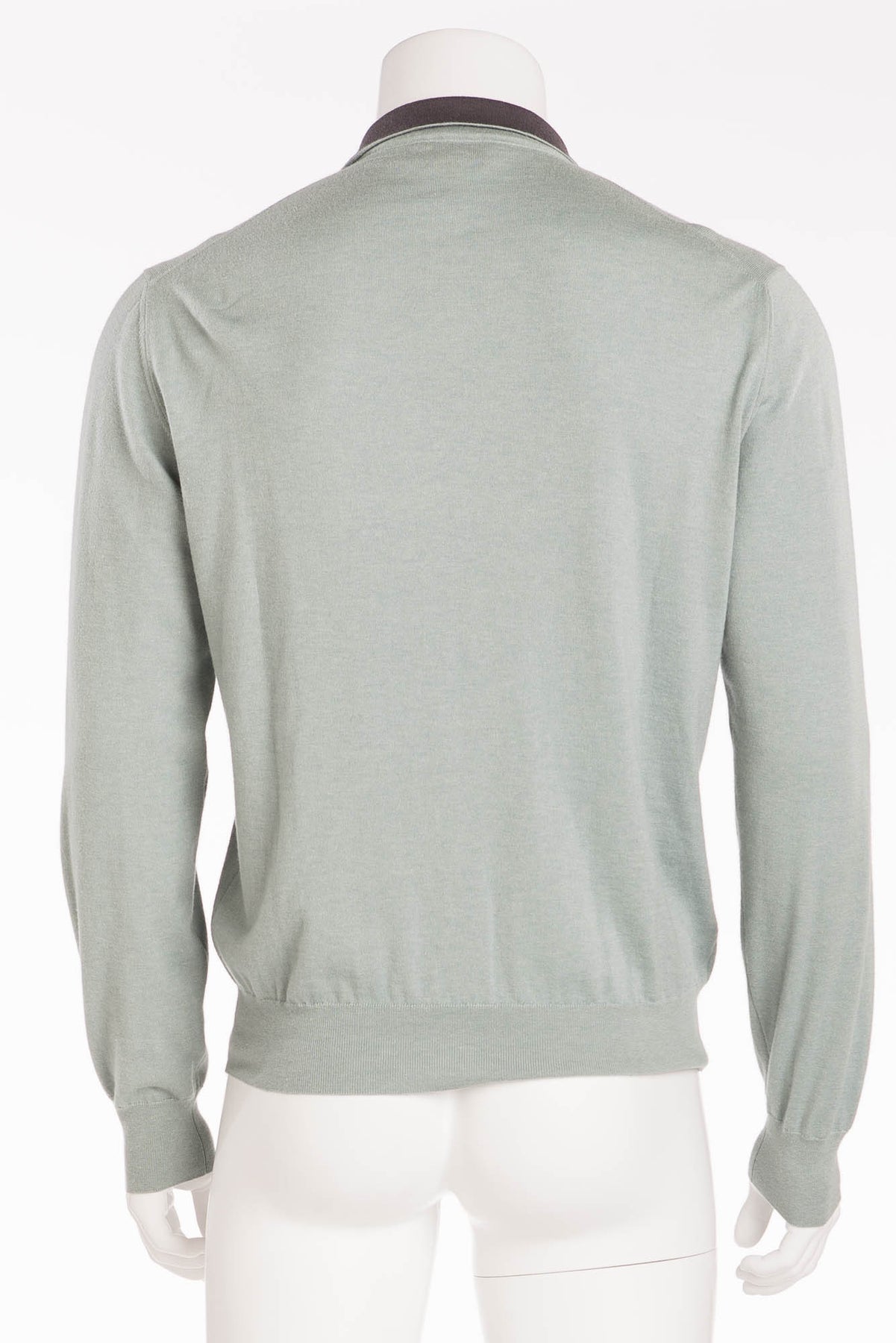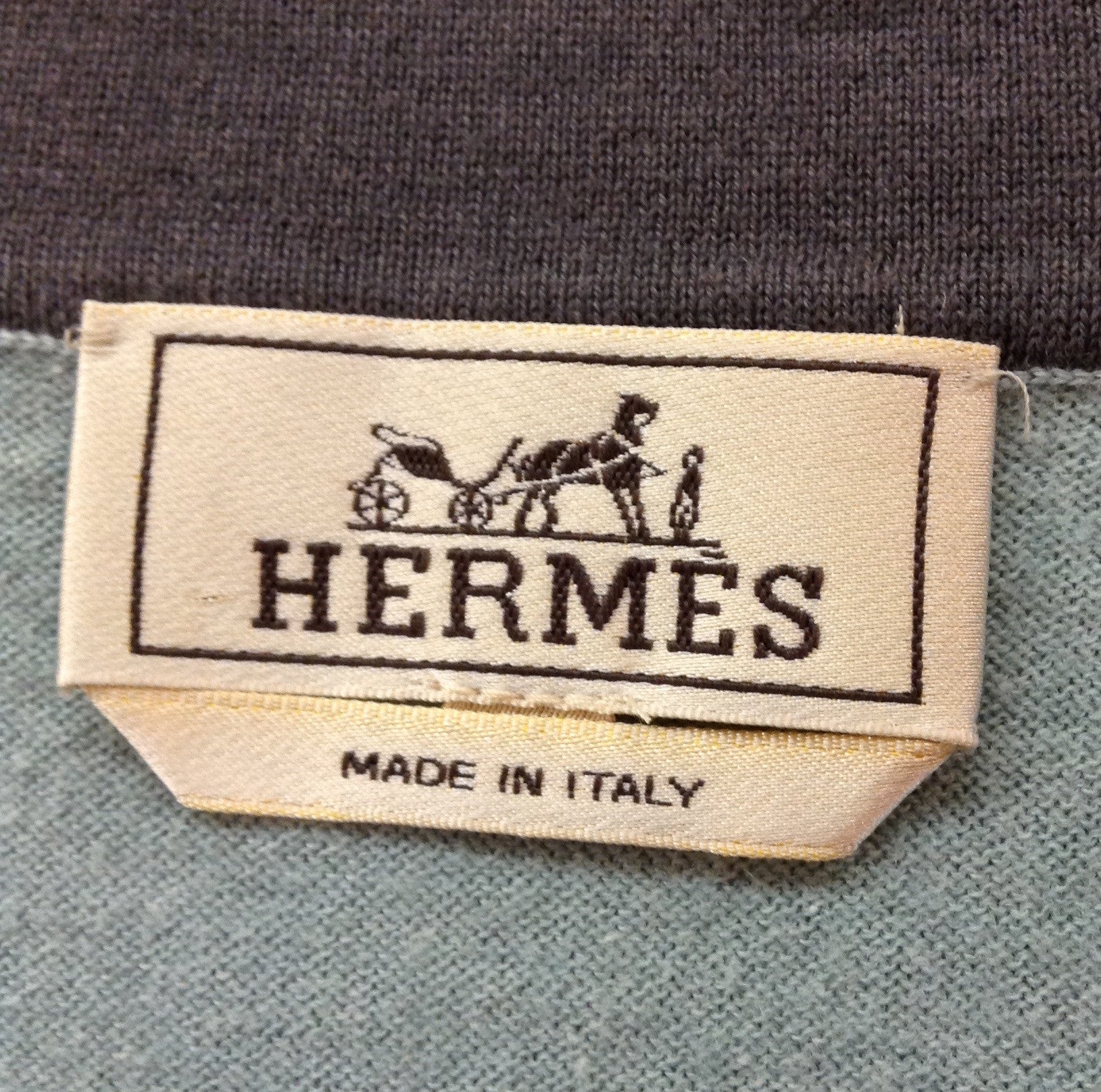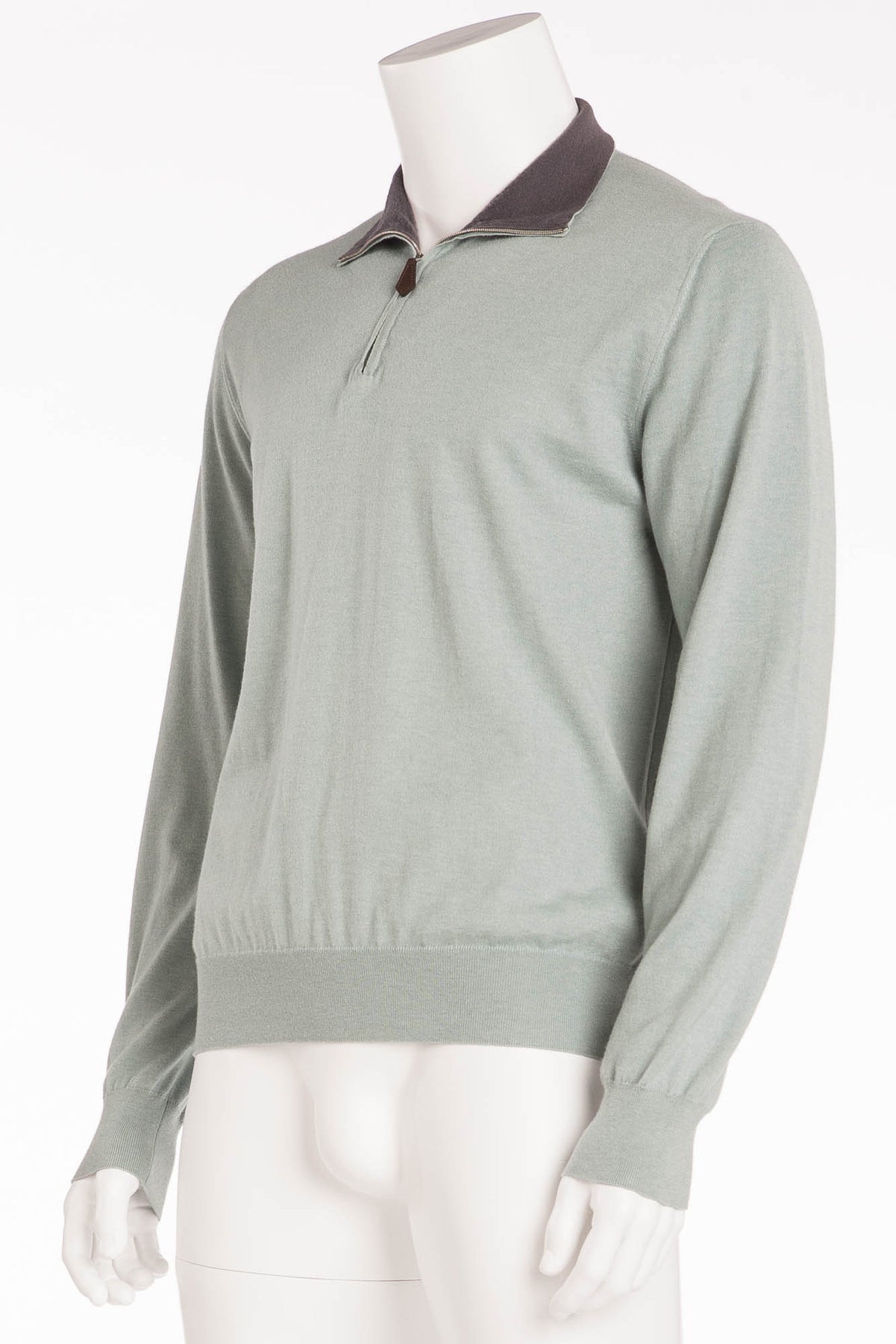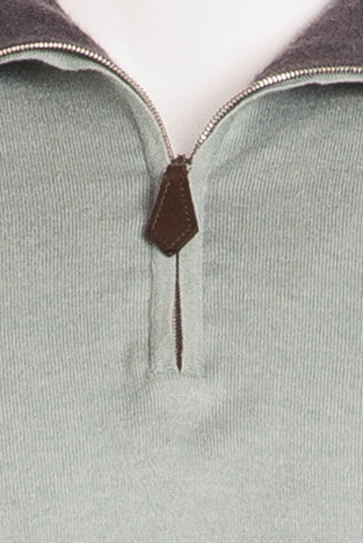 Authentic Hermes - Green Zip Neck Cashmere Sweater Grey Collar - XL