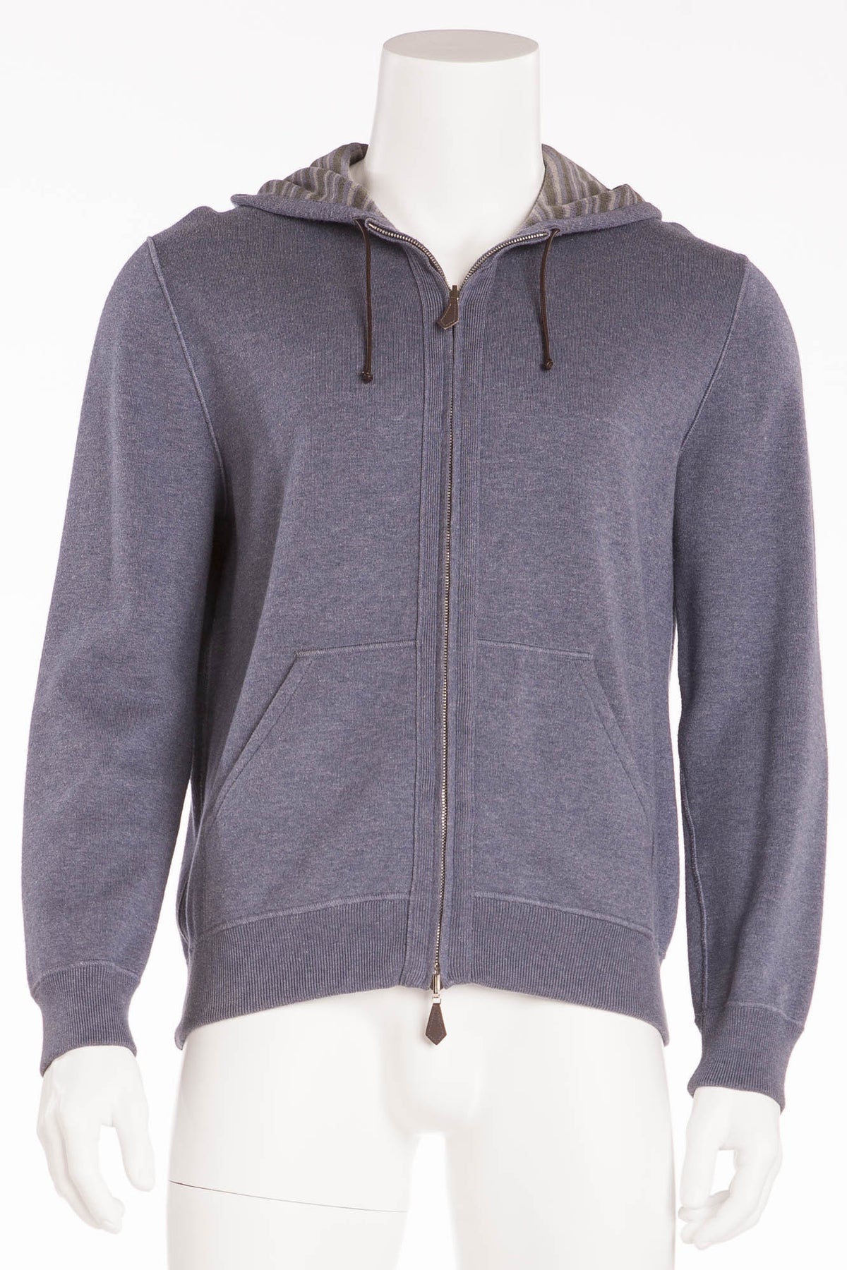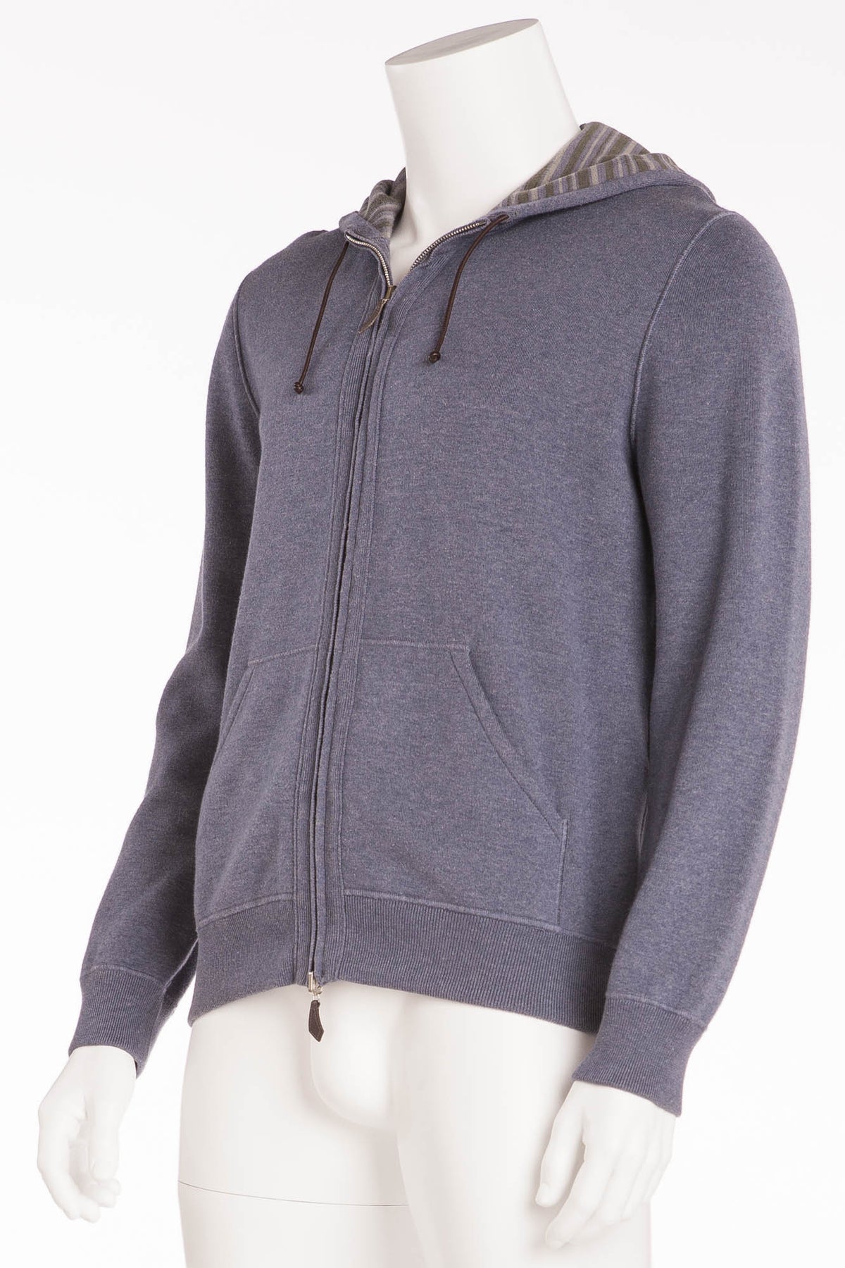 Authentic Hermes - Long Sleeve Hooded Zip Up Grey Blue - L
