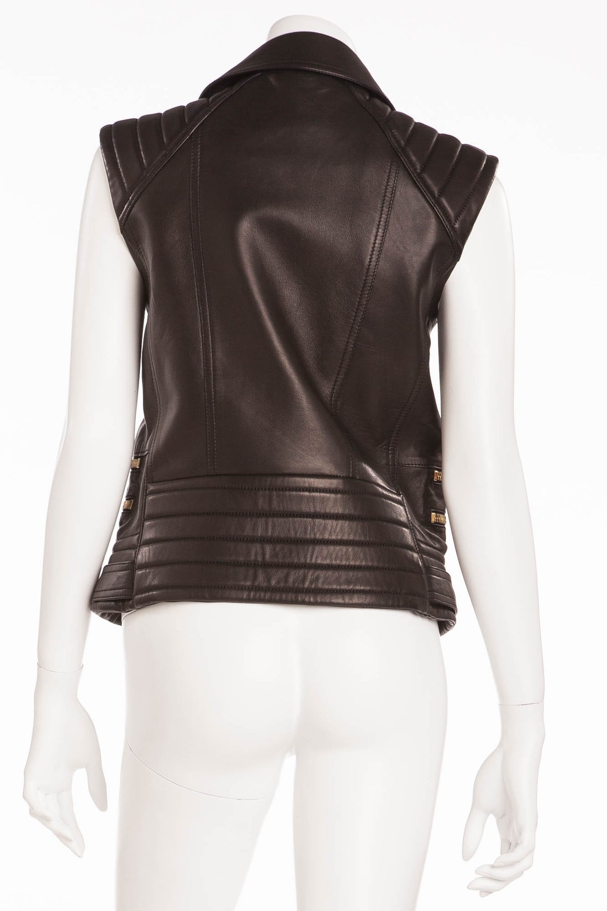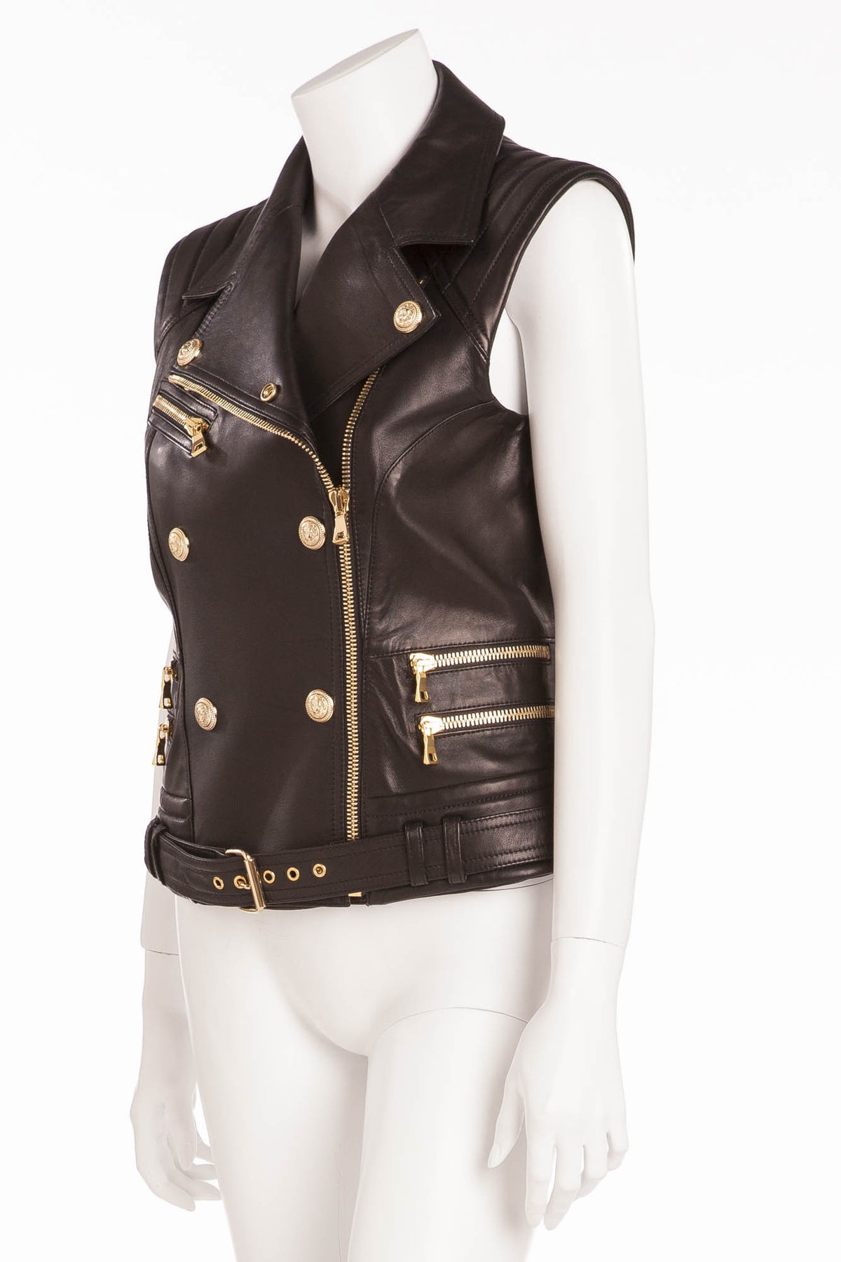 Balmain - Black Leather Vest Gold Zippers and Buttons - FR 40