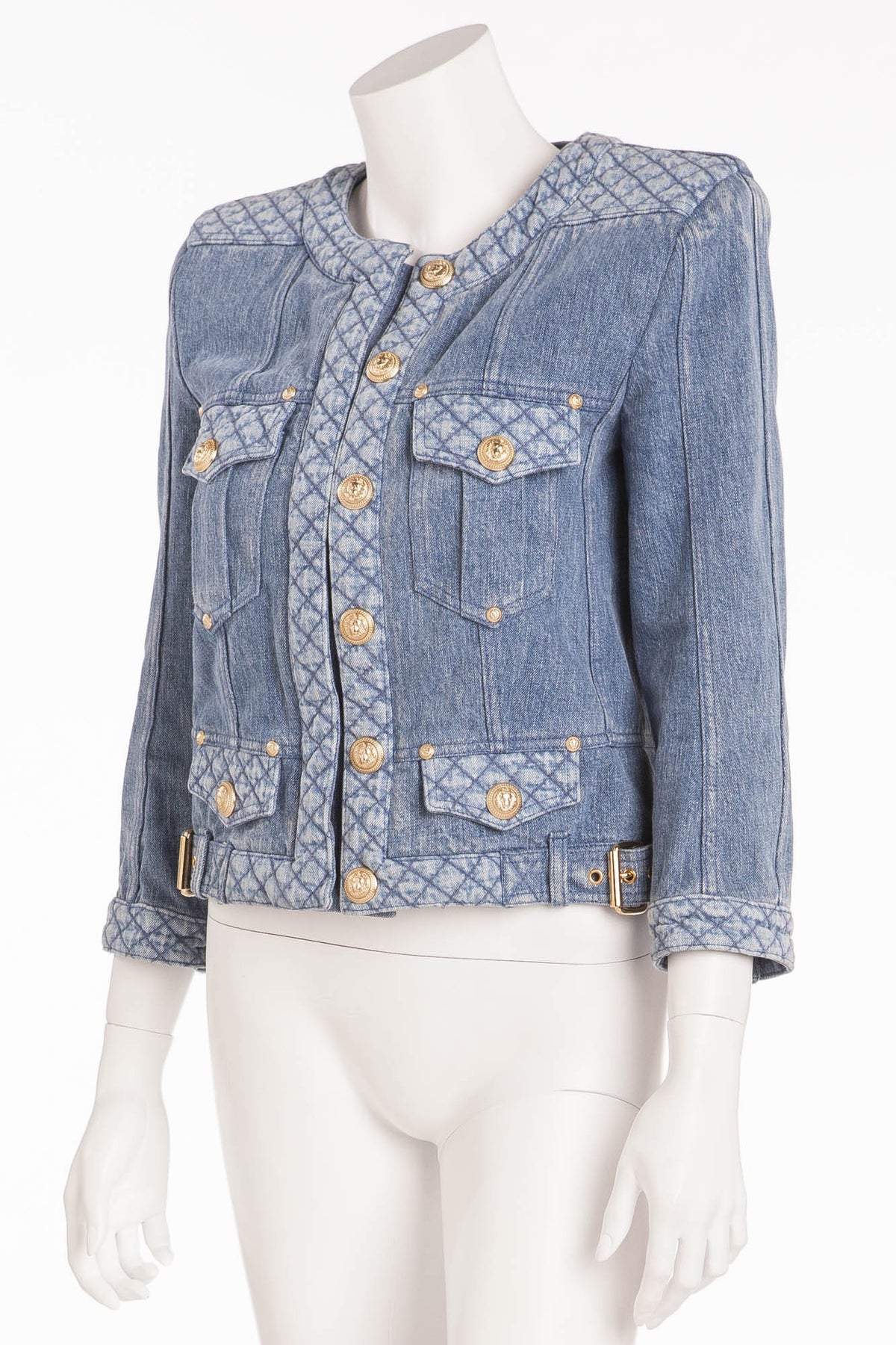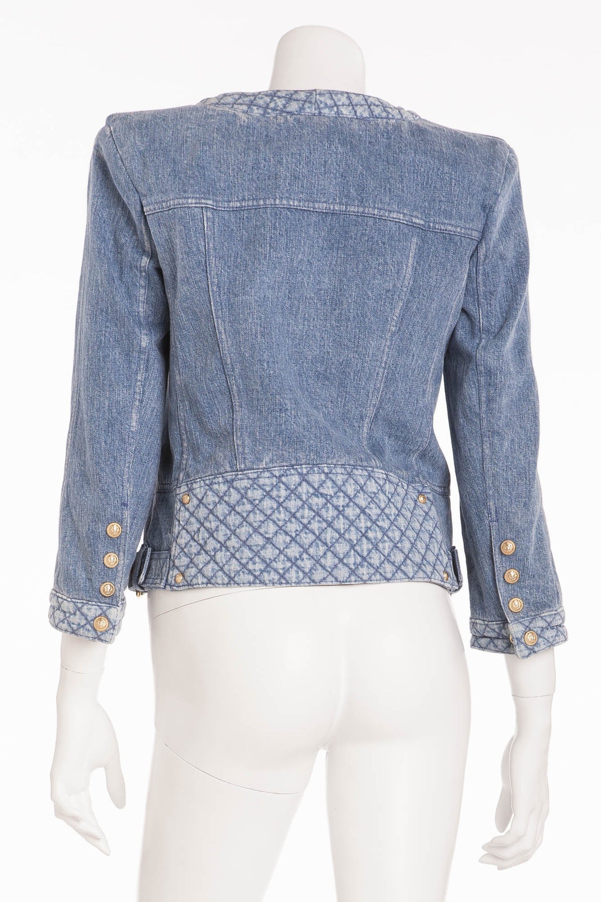 Balmain - Denim Jean Quilted Trim Jacket with Gold Snap Buttons - FR 40
