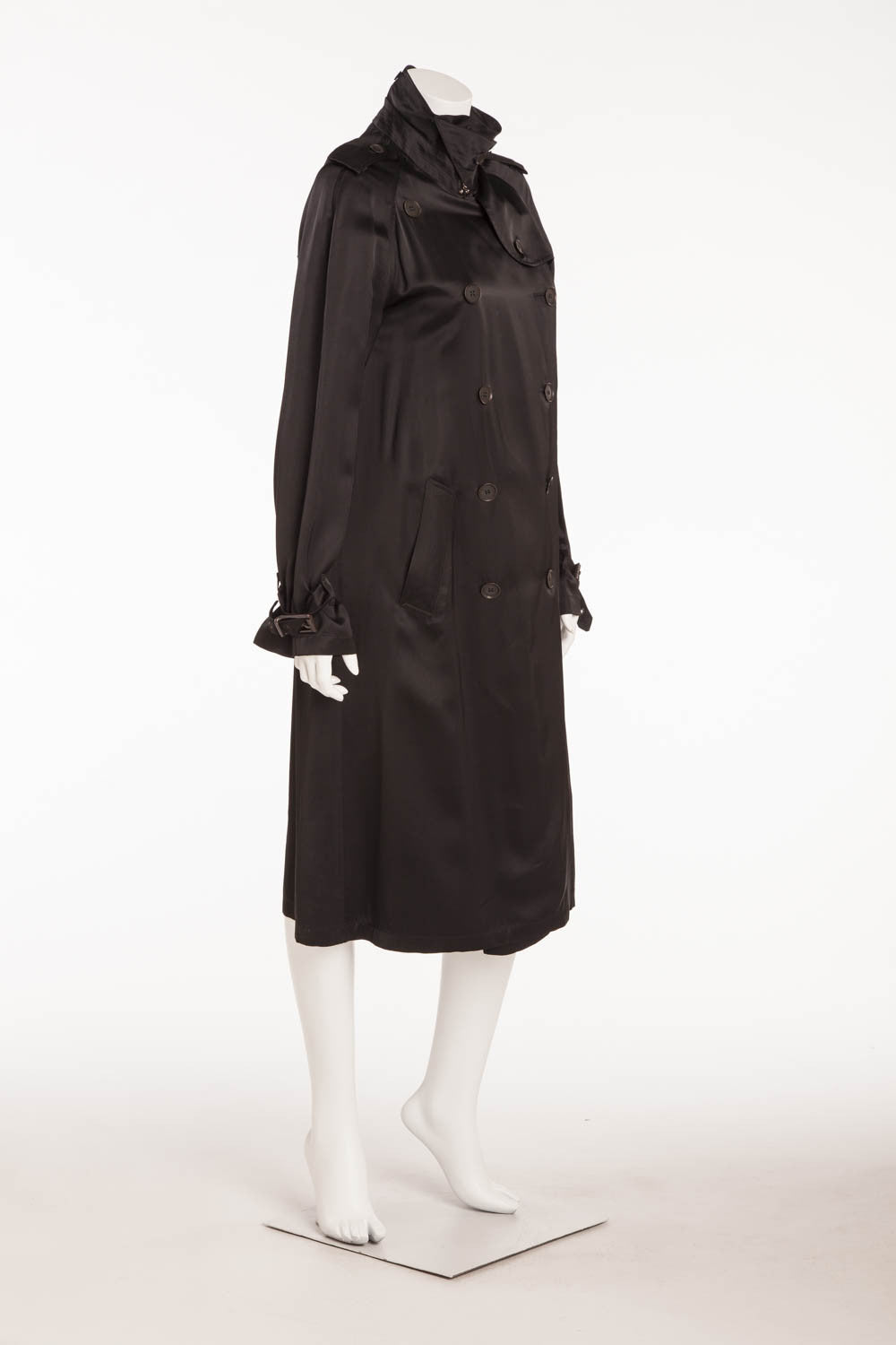Burberry - Silk Black Button Up Trench Coat with Belt - FR 42