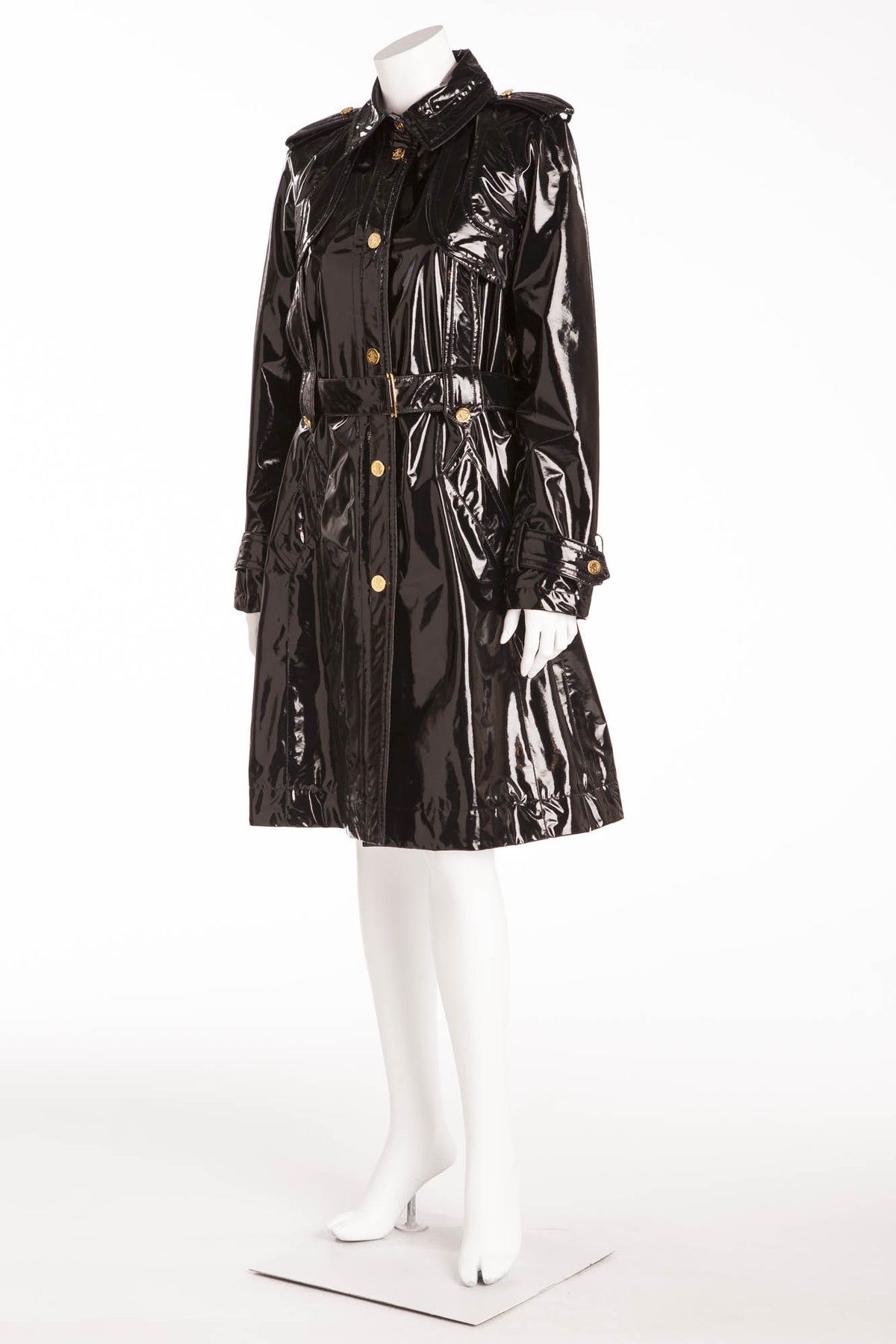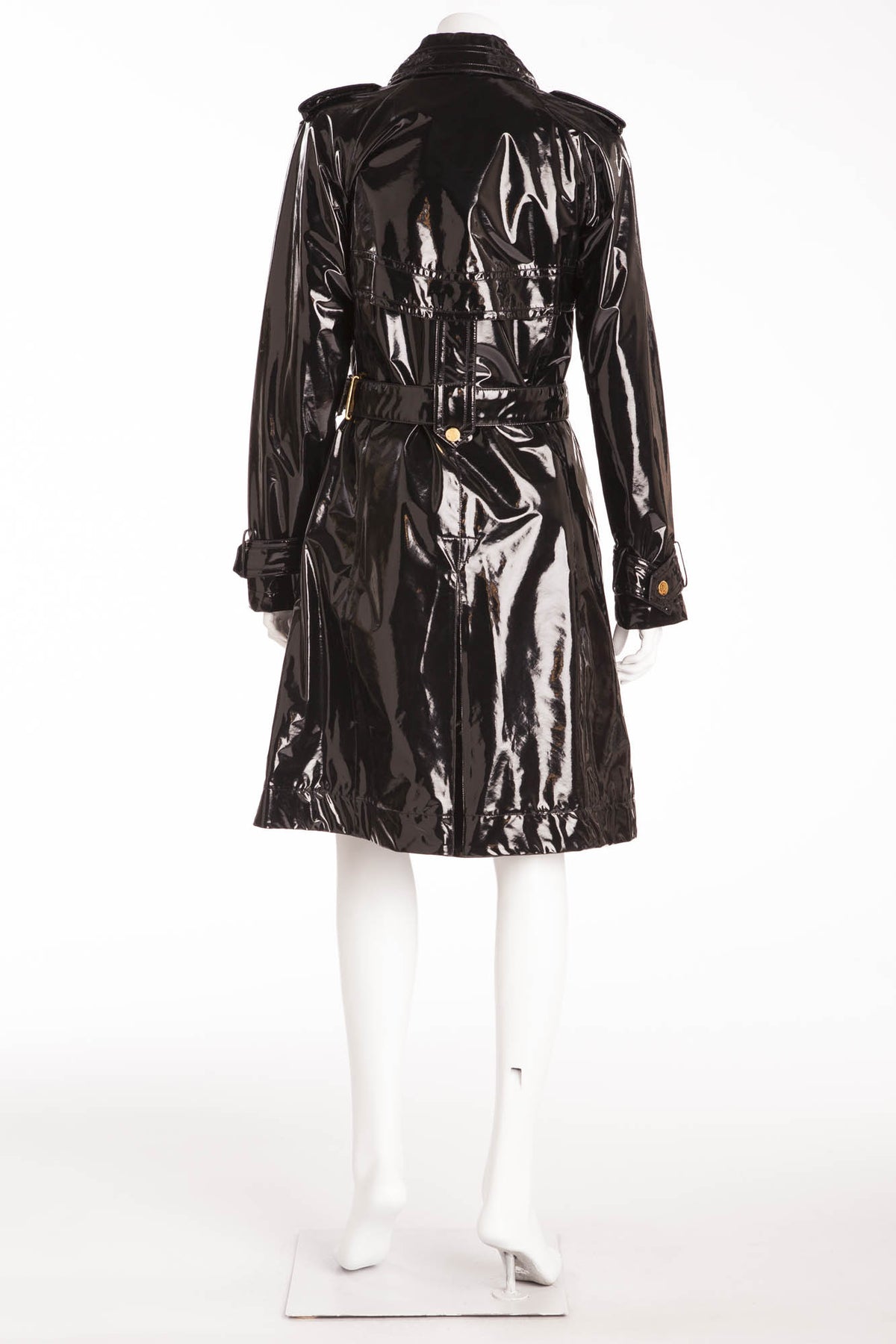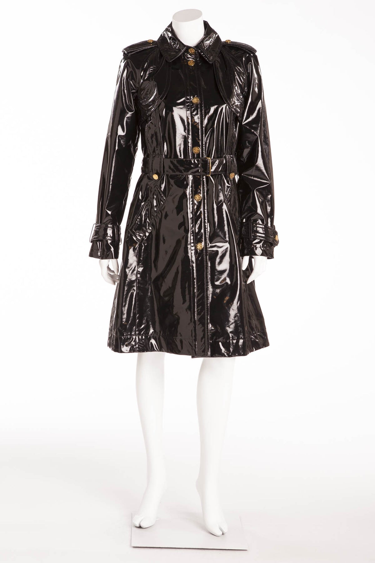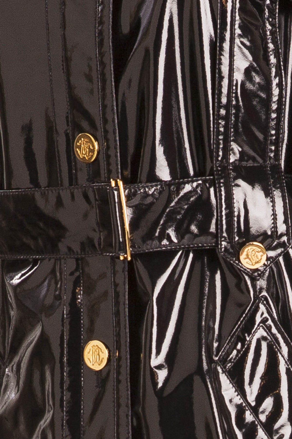 Roberto Cavalli - Black Patent Long Sleeve Coat with Tie Waist - IT 42