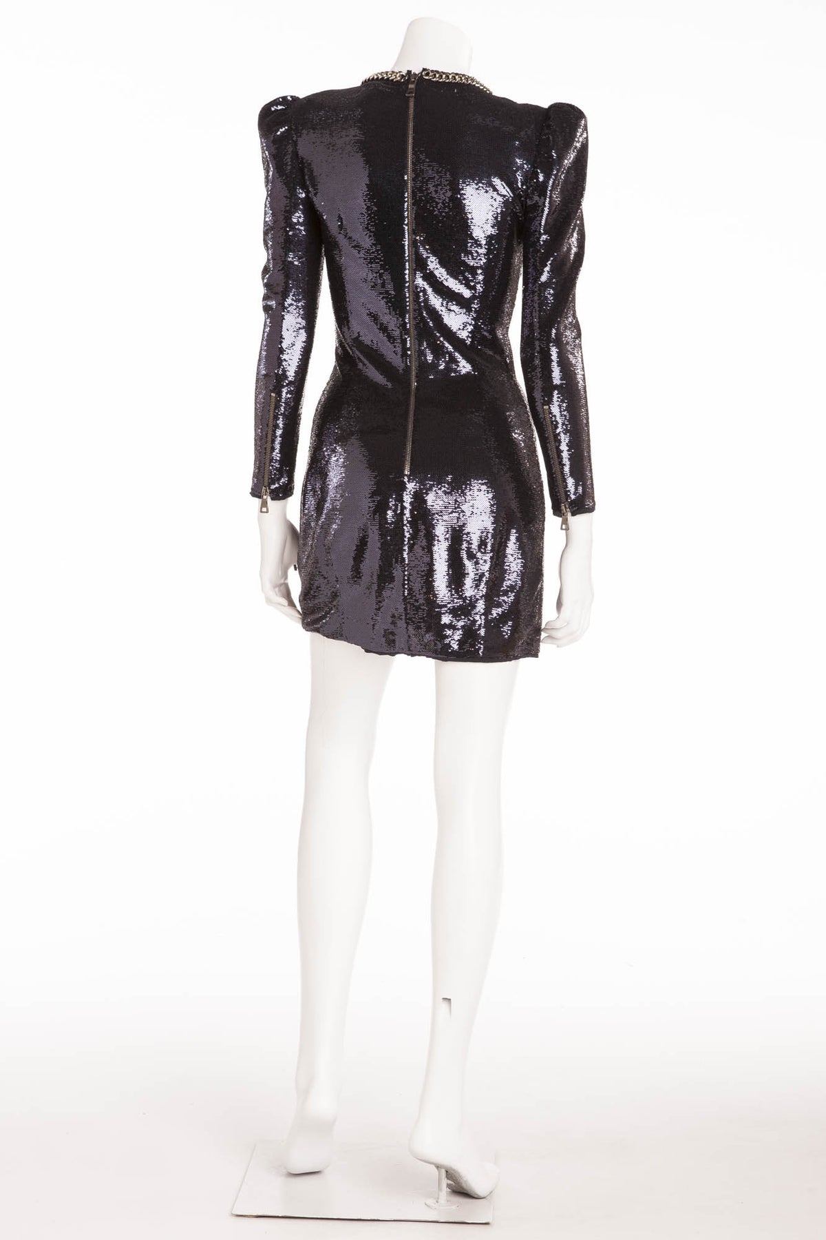 Balmain - Dark Blue Long Sleeve Sequin Dress - FR 38
