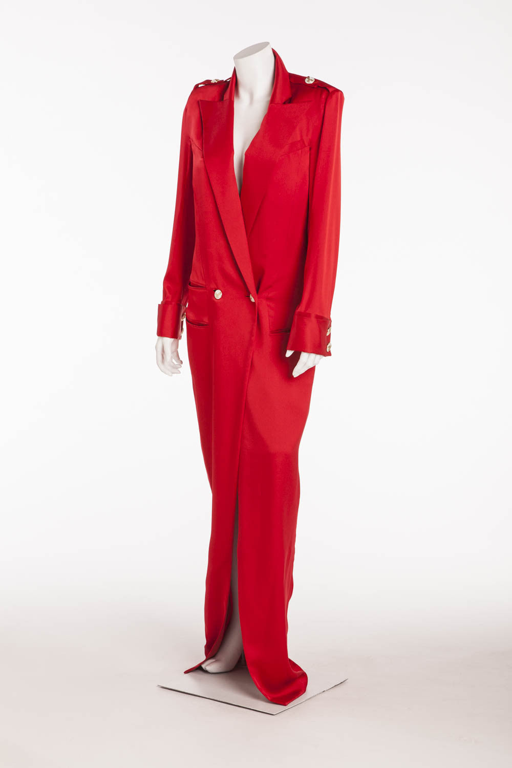 Balmain - As Seen on Blake Lively - Brand New Red Long Sleeve Silk Coat Dress - FR 42