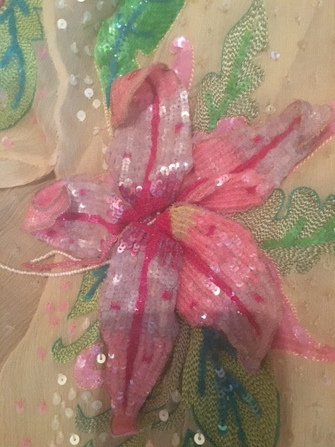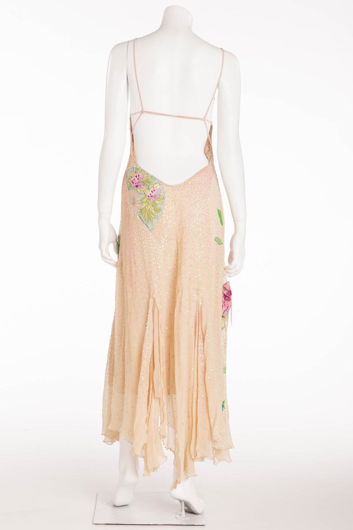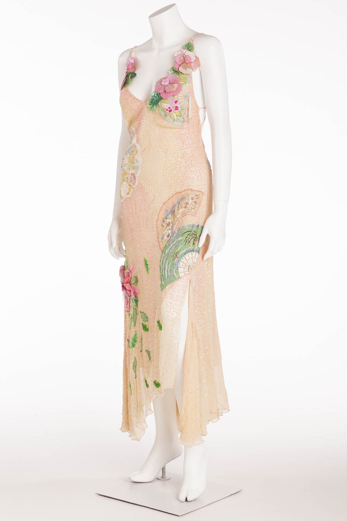 Blumarine - Editorial, Nude color Dress with Pink and Green Embellishments - IT 40