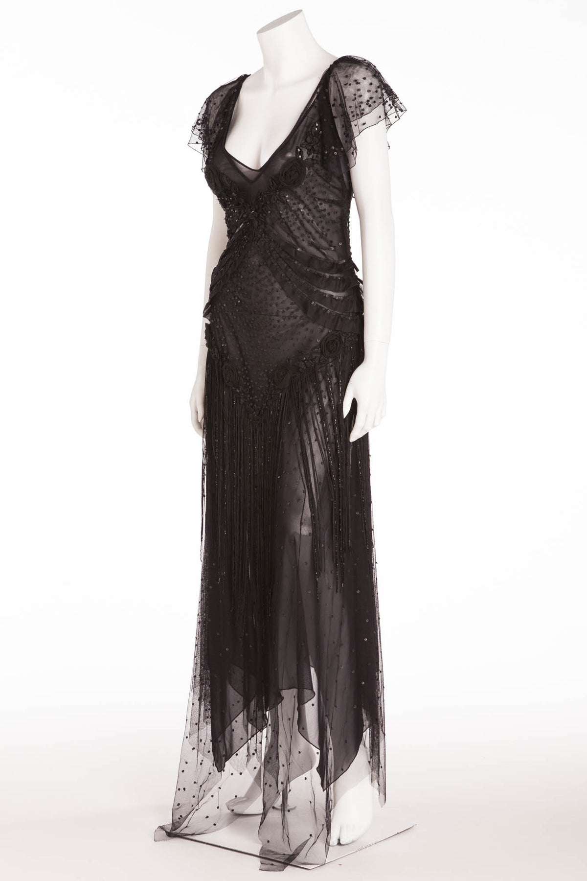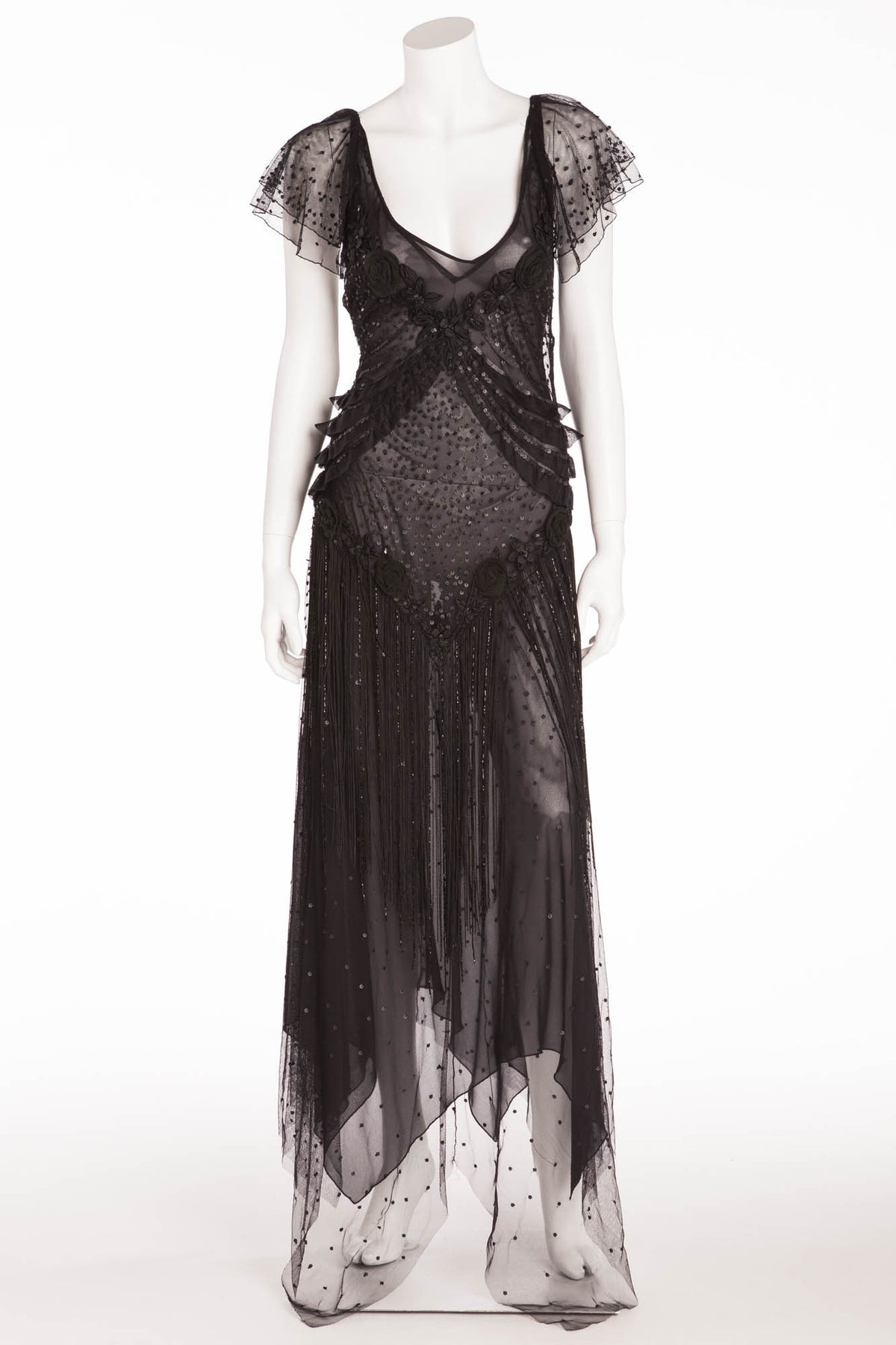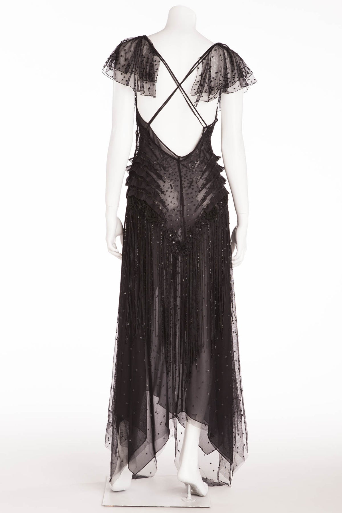 Blumarine - Editorial, Black Lace Long Dress with Sequins and Fringe - IT 42