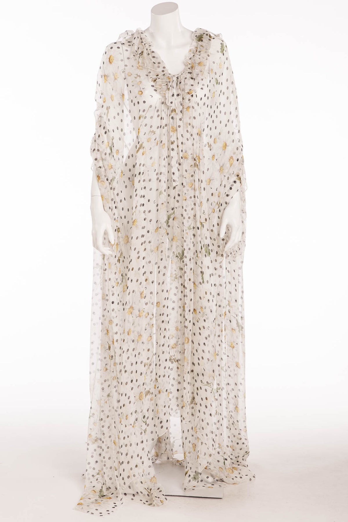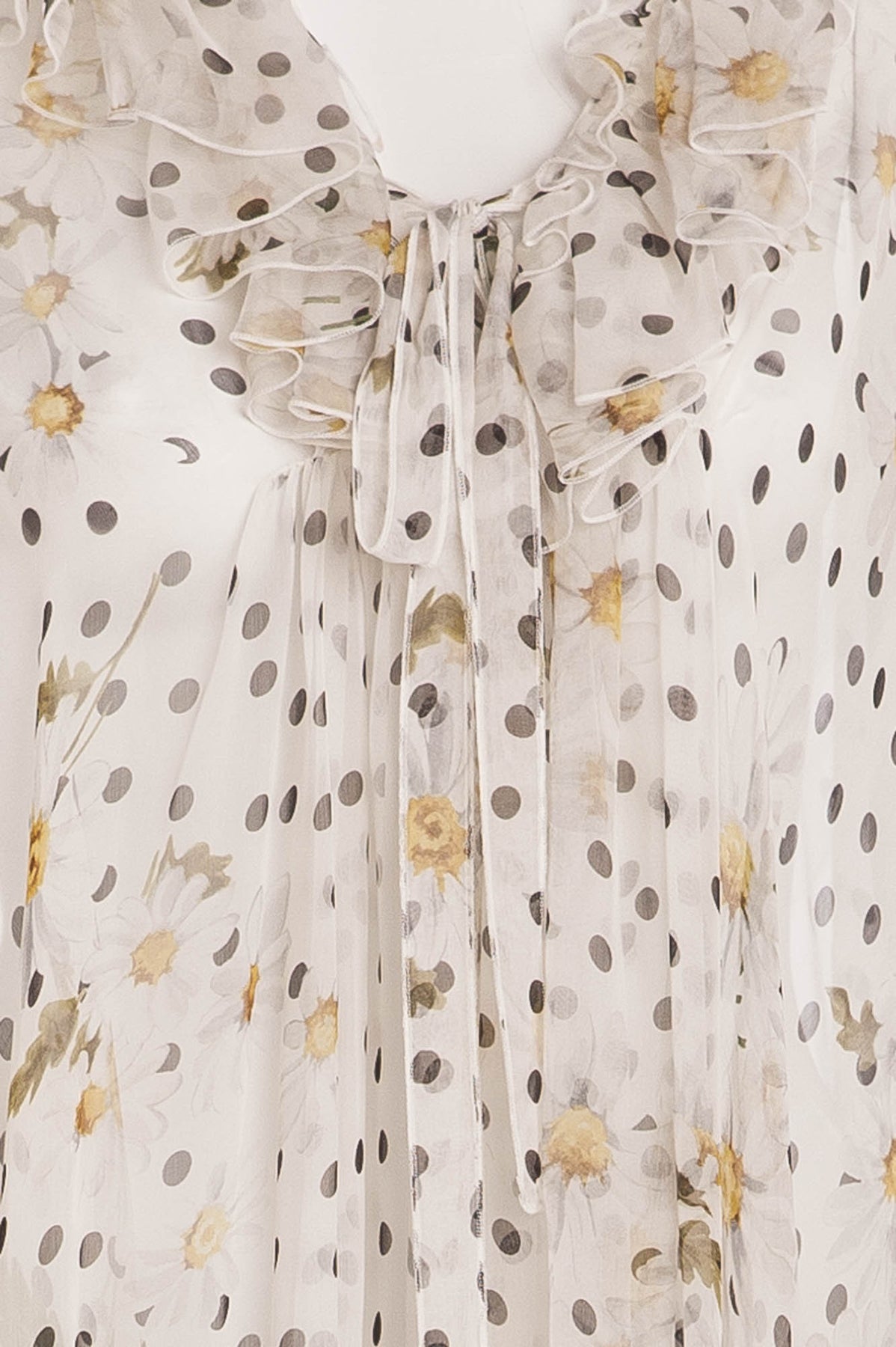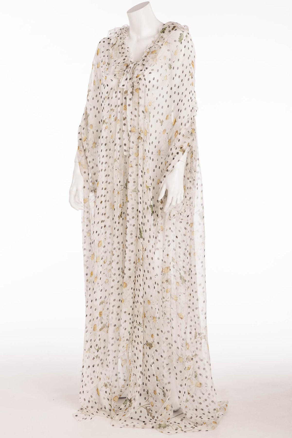 Dolce & Gabbana - White Black Polka Dot & Daisy Caftan Dress -