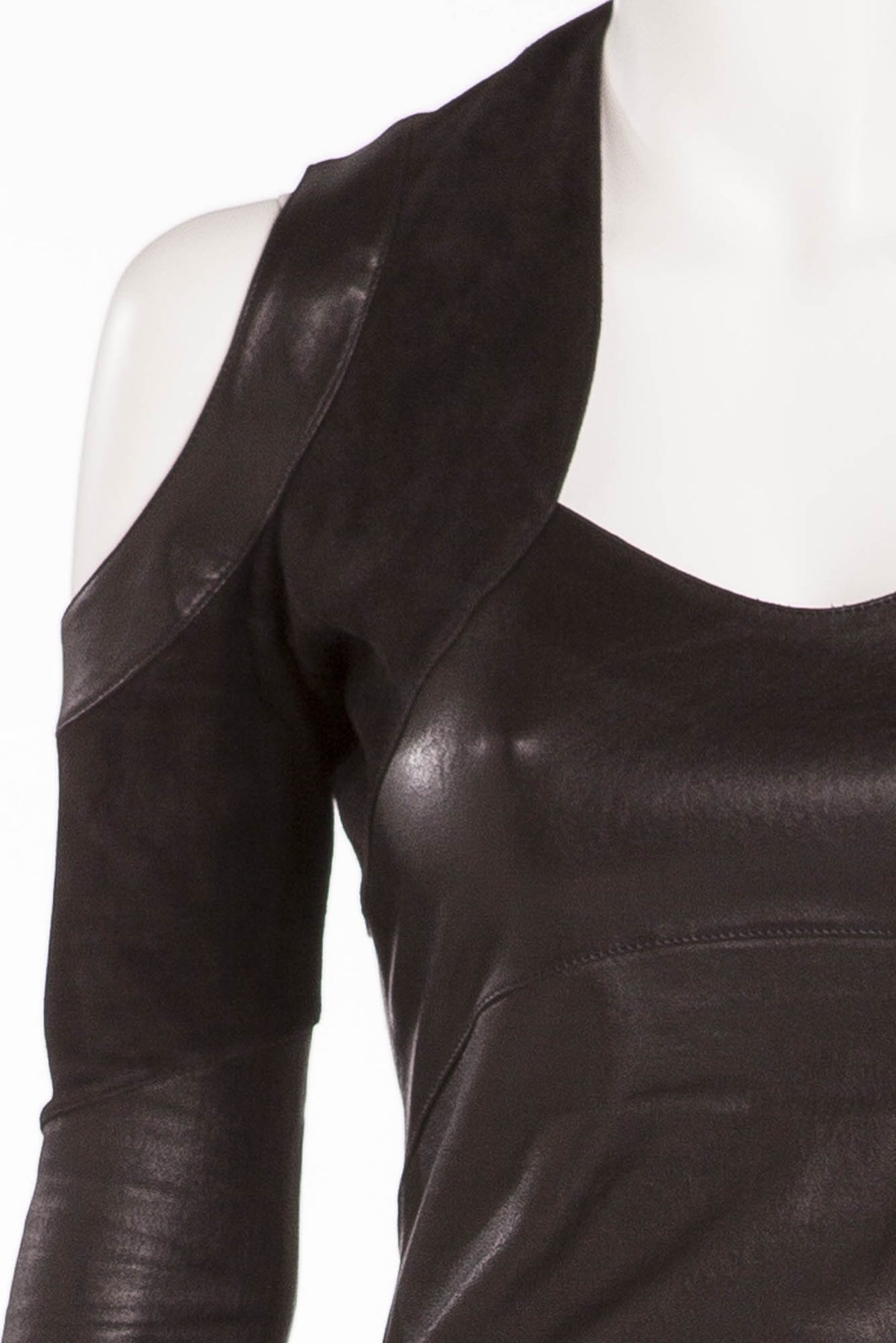 Jitrois - Black Leather & Suede Cold Shoulder Dress - FR 38