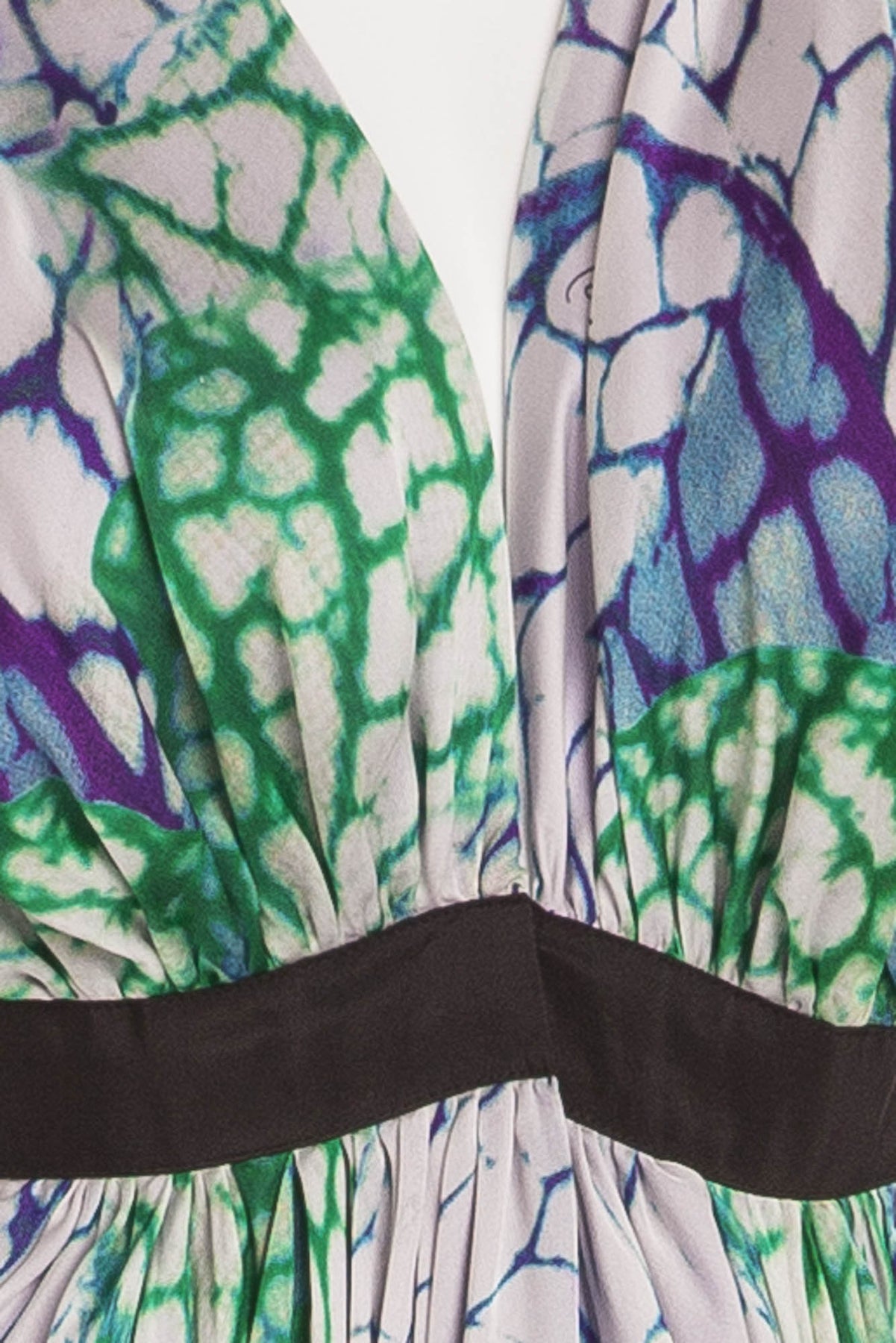 • Multicolored silk-chiffon kaftan with a tie-dye print