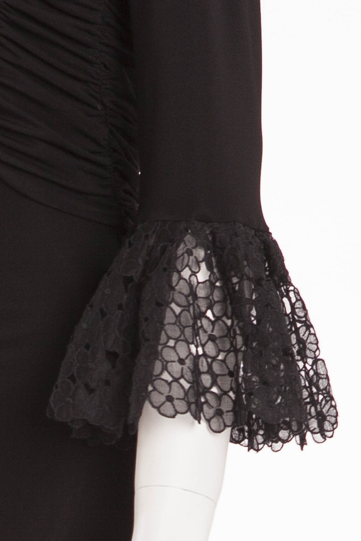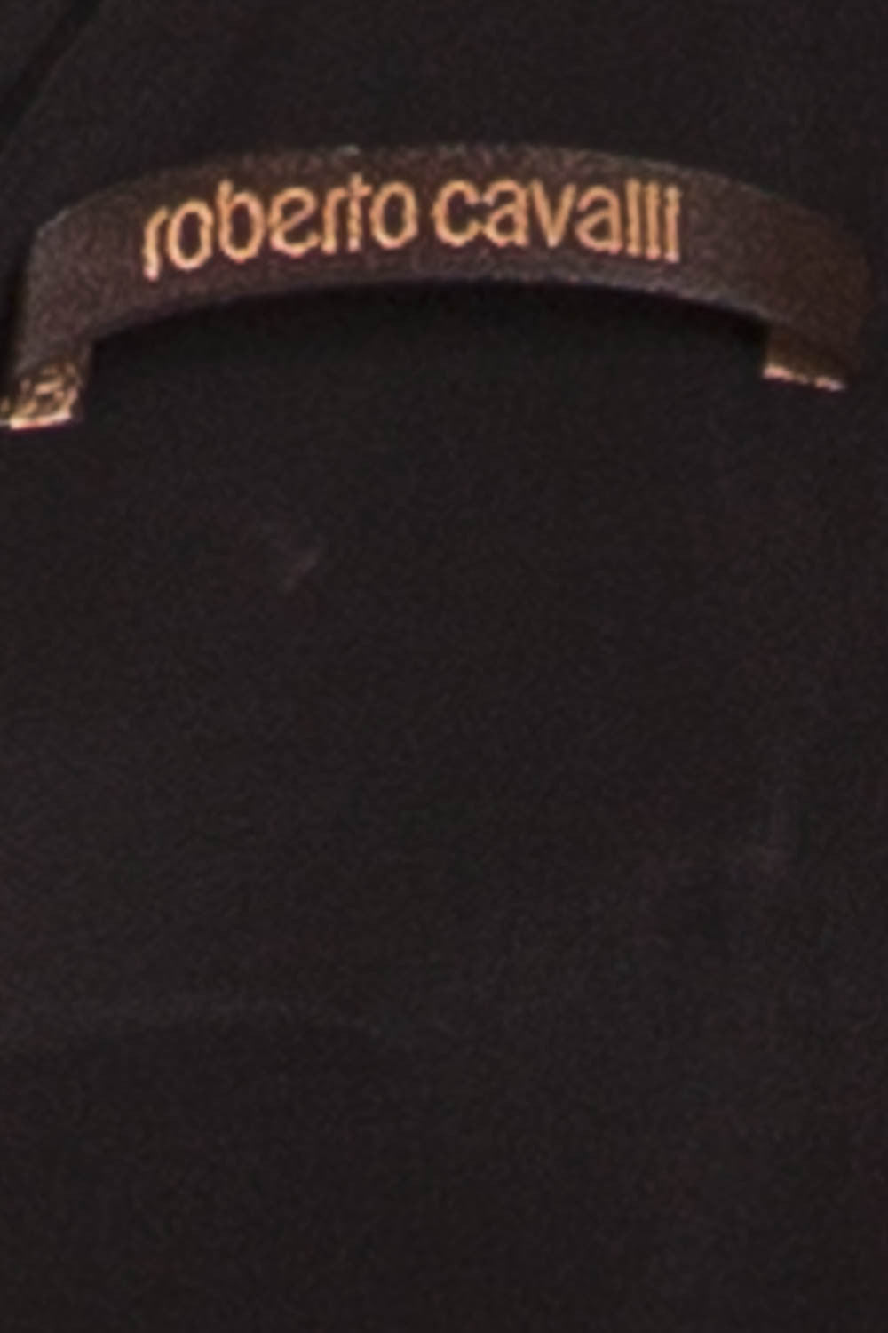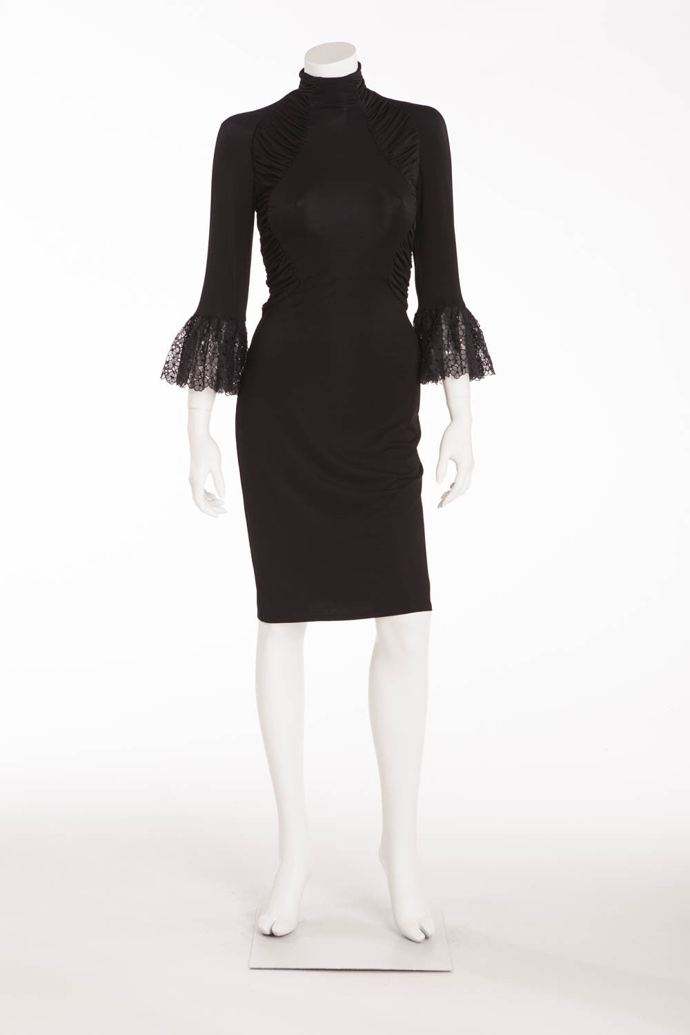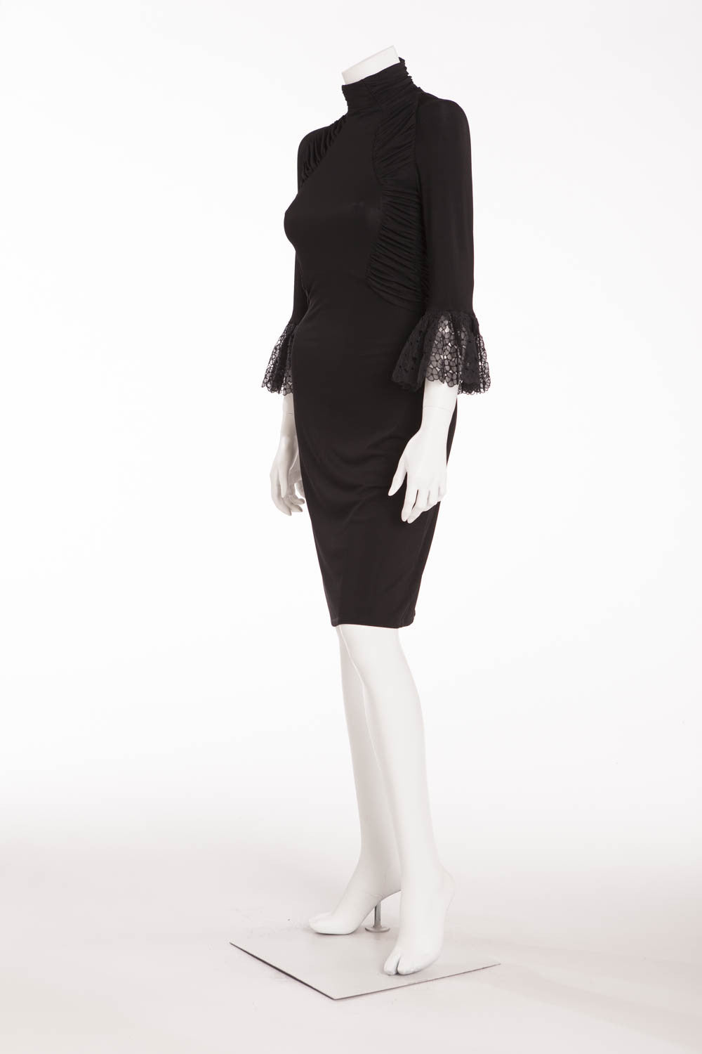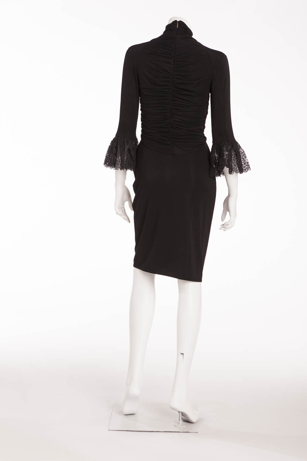 Roberto Cavalli - Black Ruched Dress with Lace Trim Sleeves