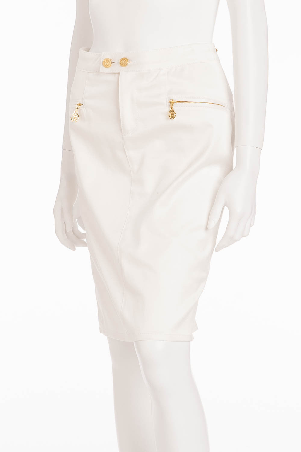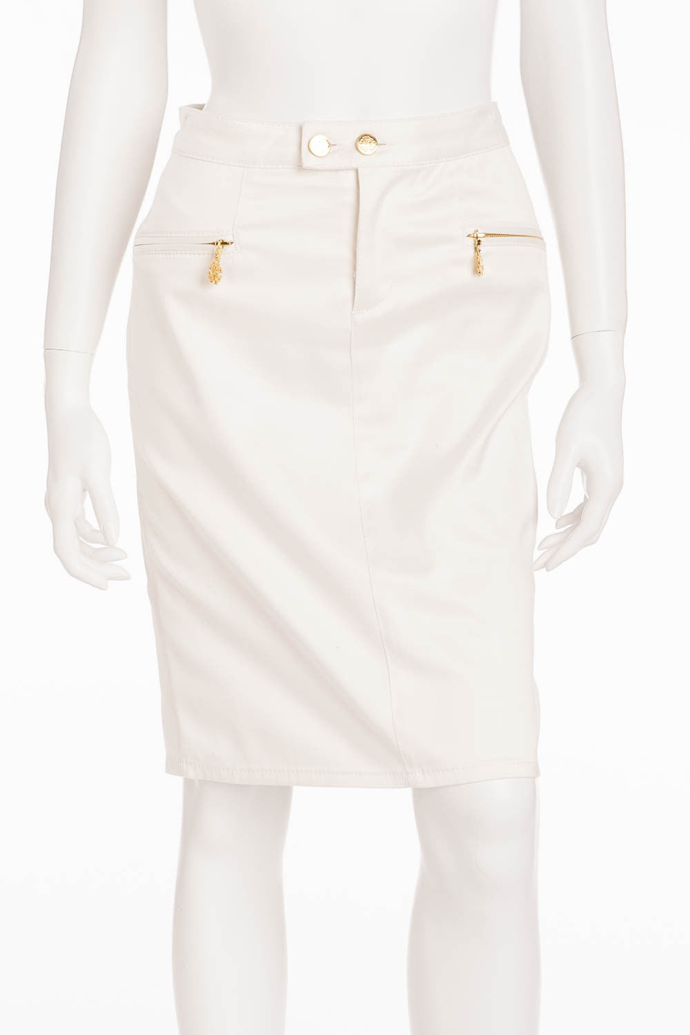Roberto Cavalli - BN White Pencil Skirt with Gold Zippers - IT 40