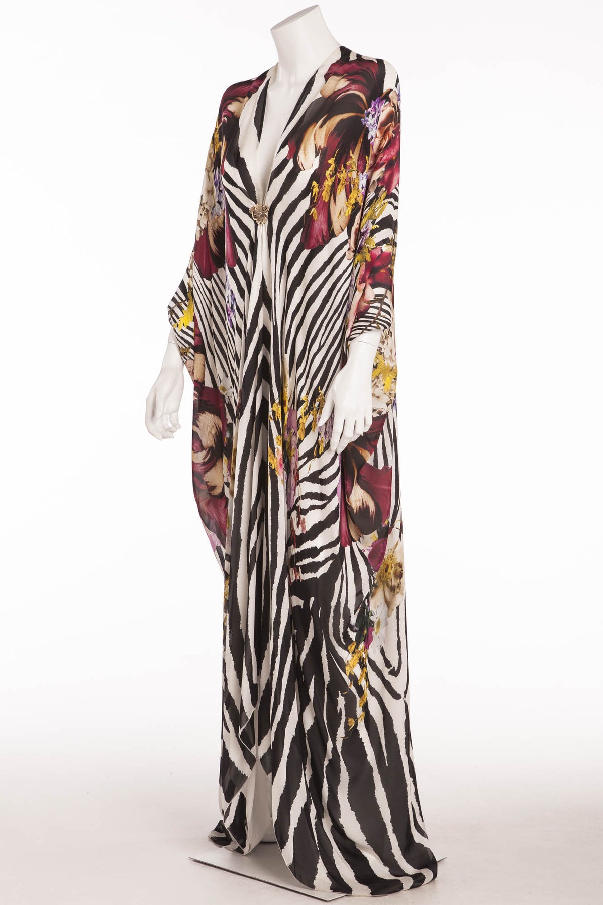 Roberto Cavalli - Zebra & Flowers Patterned Caftan Cutout Back