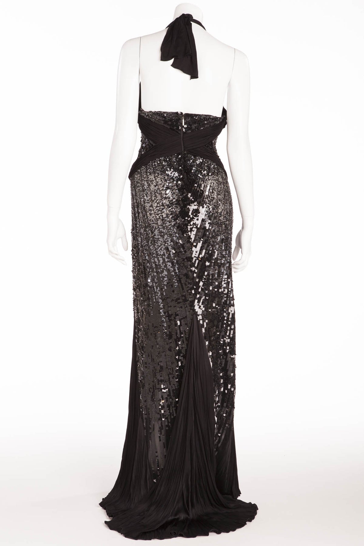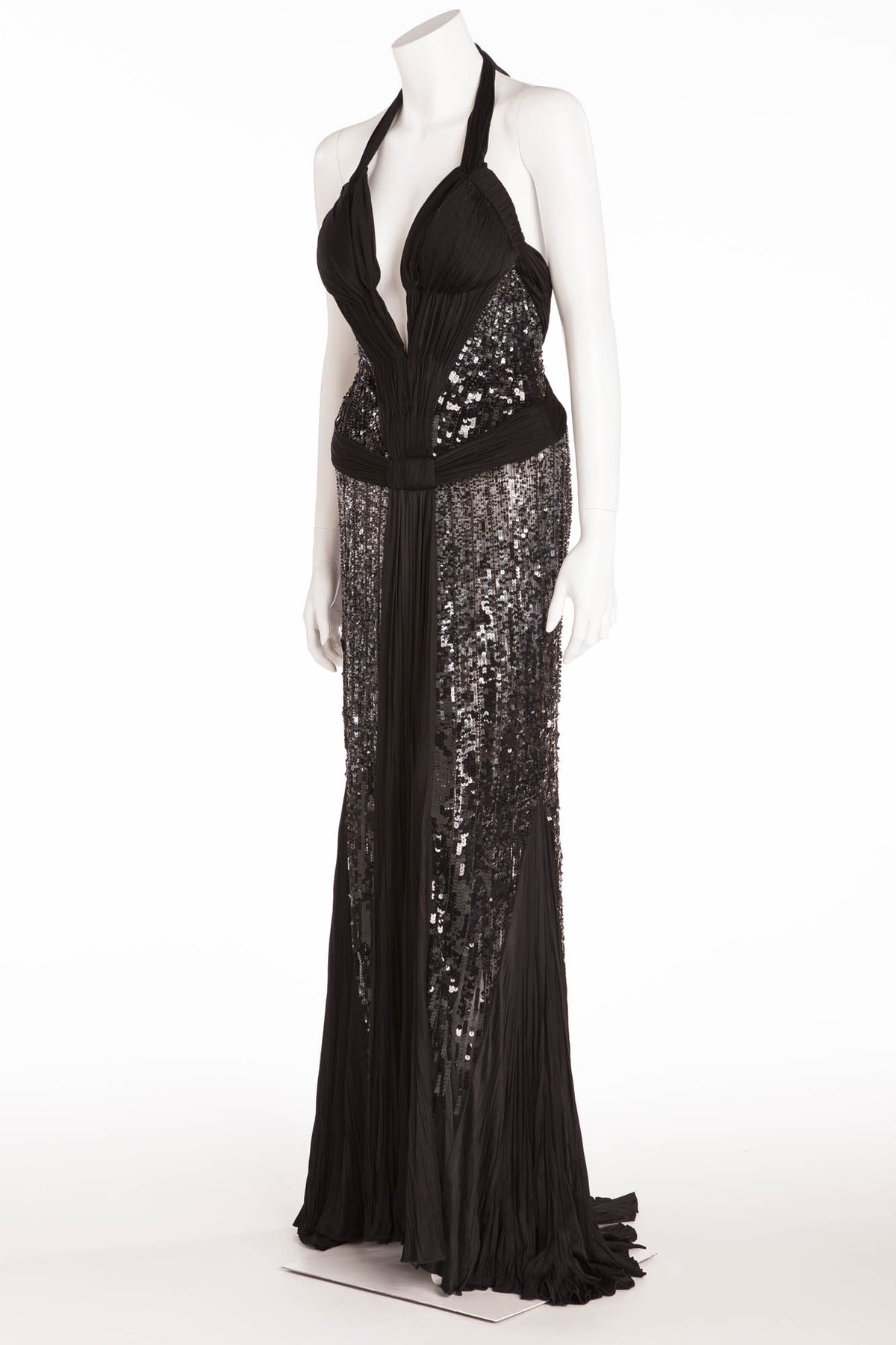 Roberto Cavalli - Limited Edition Black Sequins Pleated Long Halter Gown - IT 40