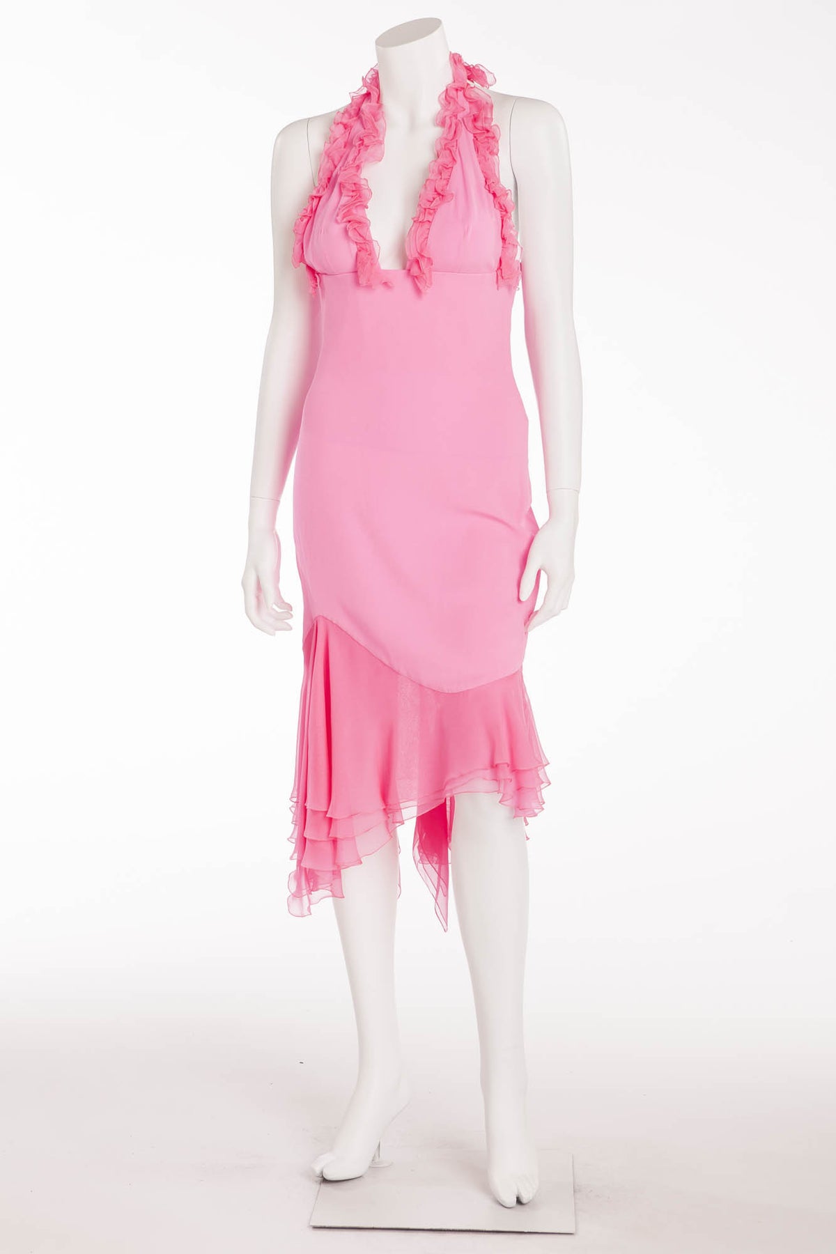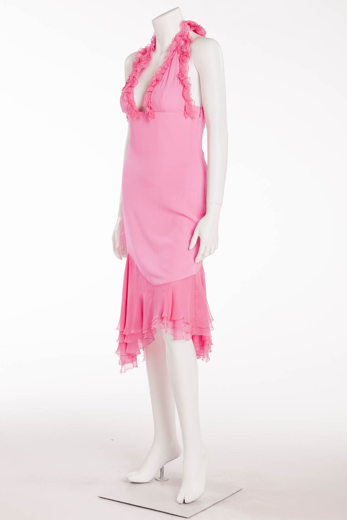 Versace -New Hot Pink Halter Dress with Ruffles - IT 42