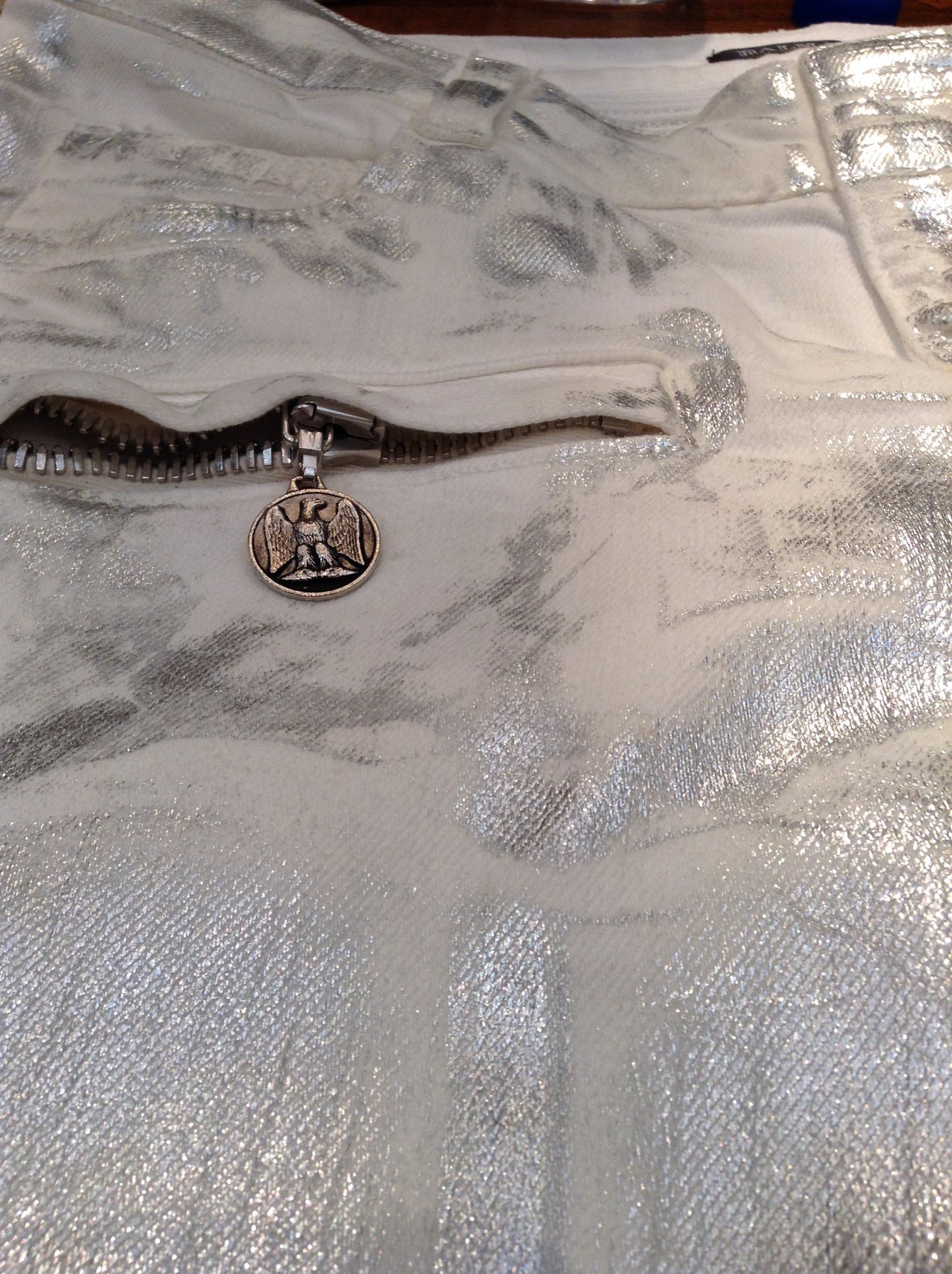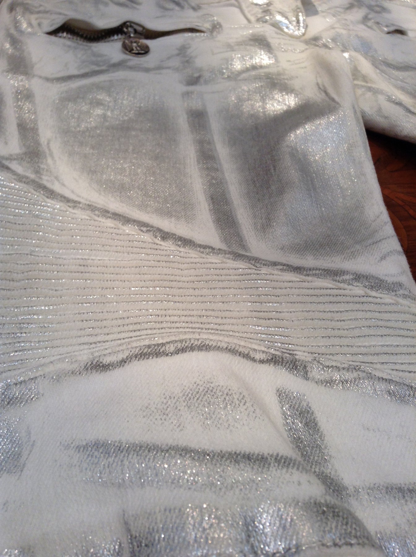 • Silver Coating over White Jeans