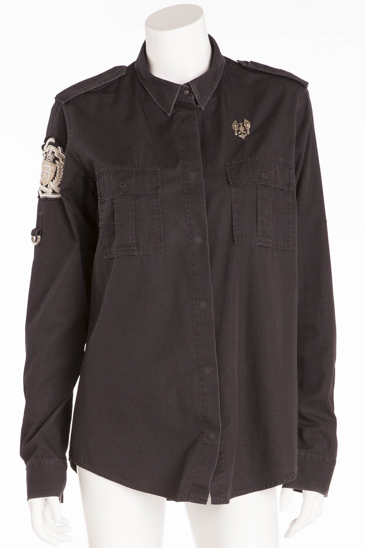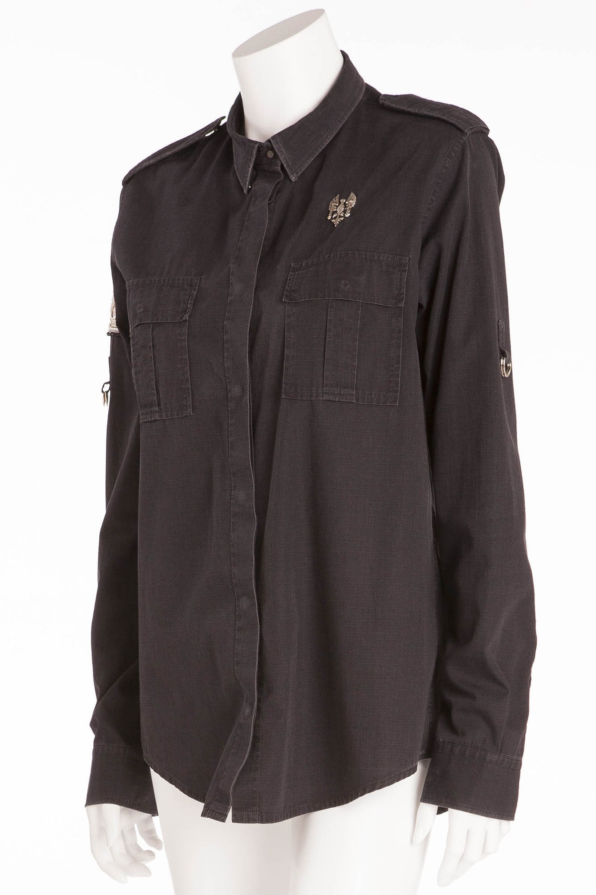 Balmain - Black Long Sleeve Button Down with Embellished Shoulders - FR 40