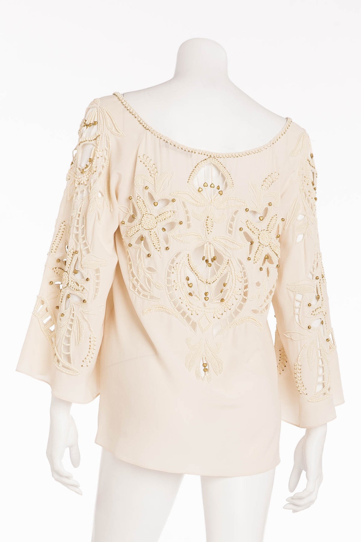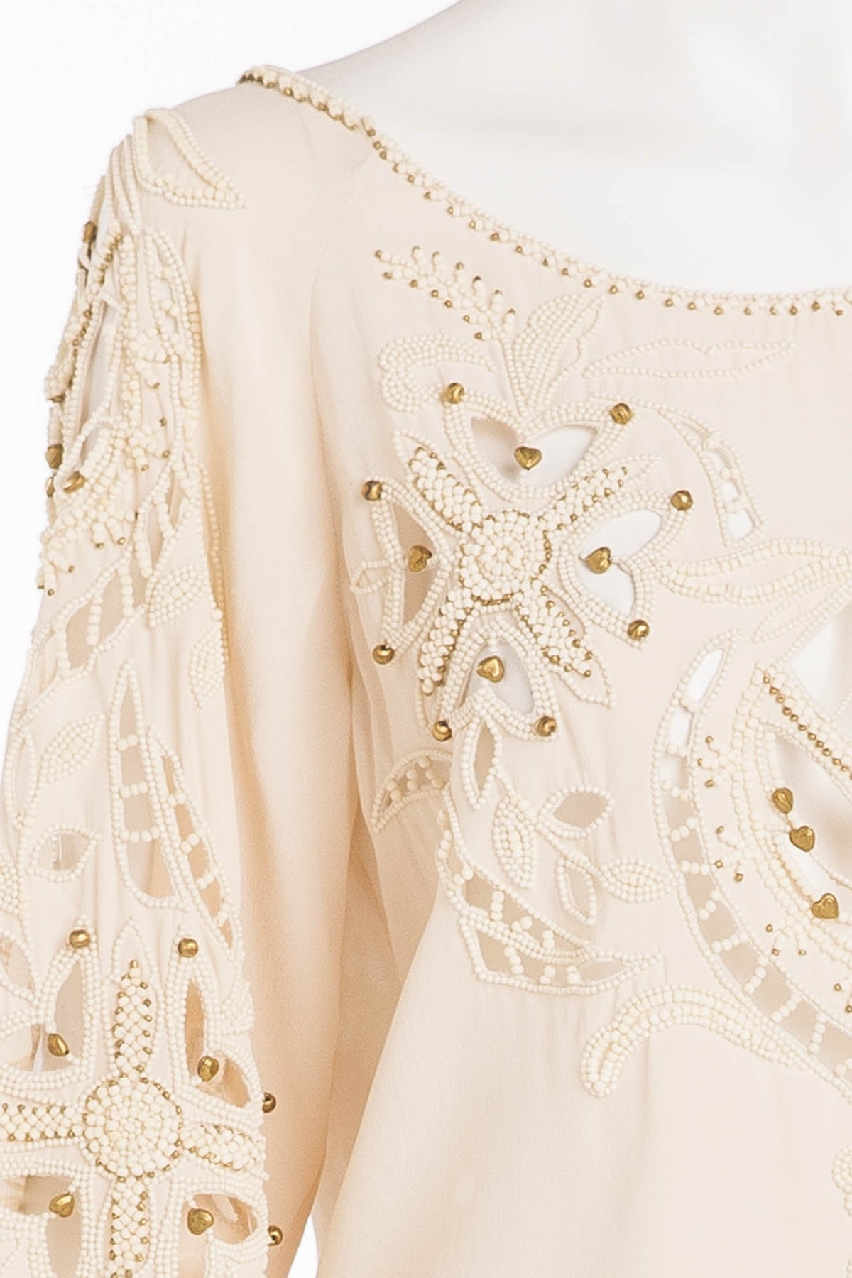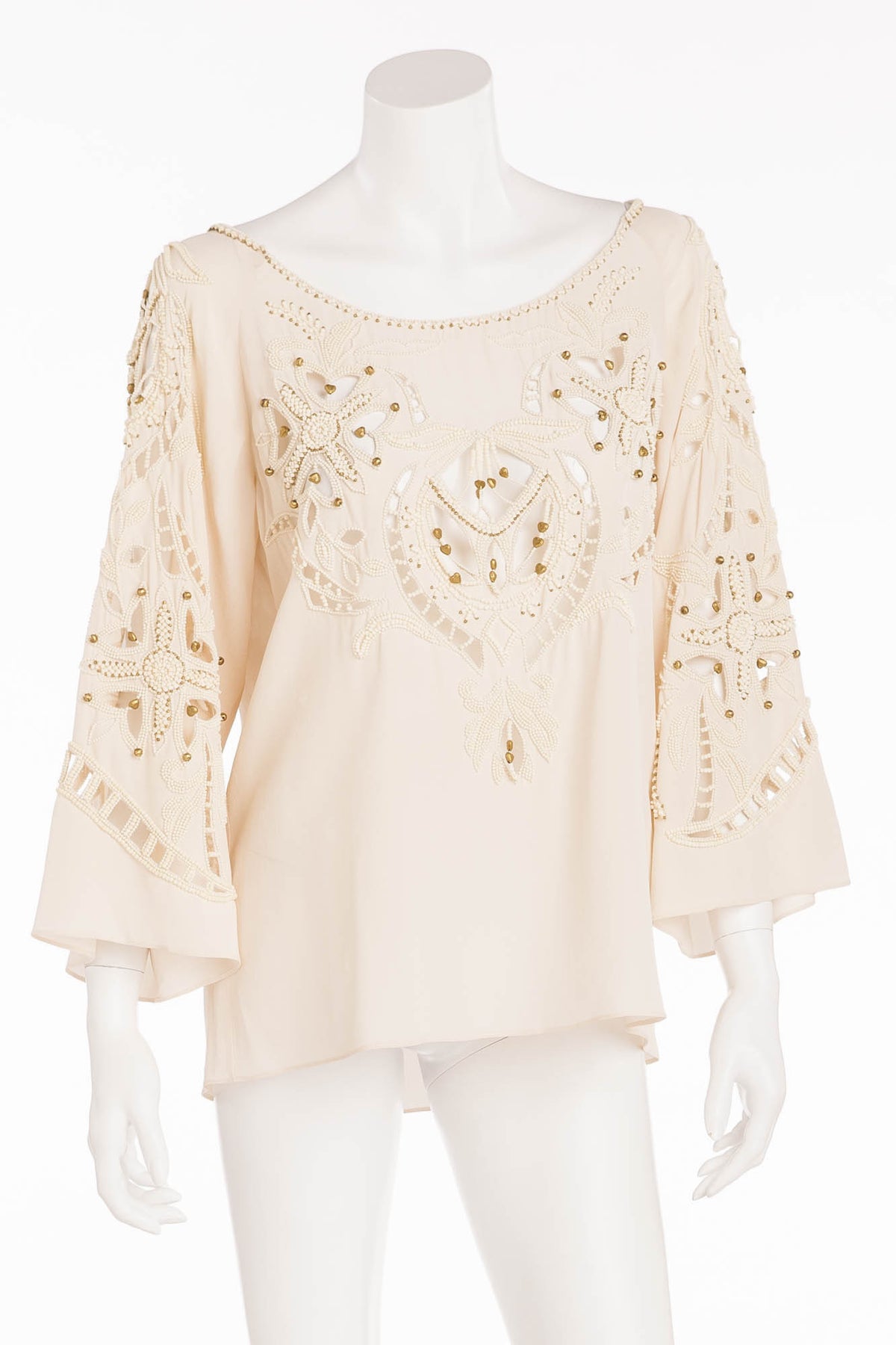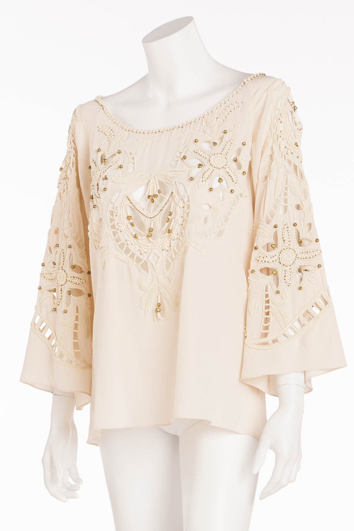 Chloe - Off White Beaded 3/4 Sleeve Top - FR 38