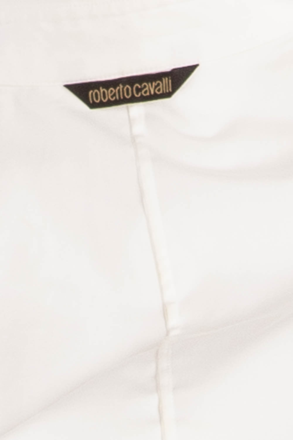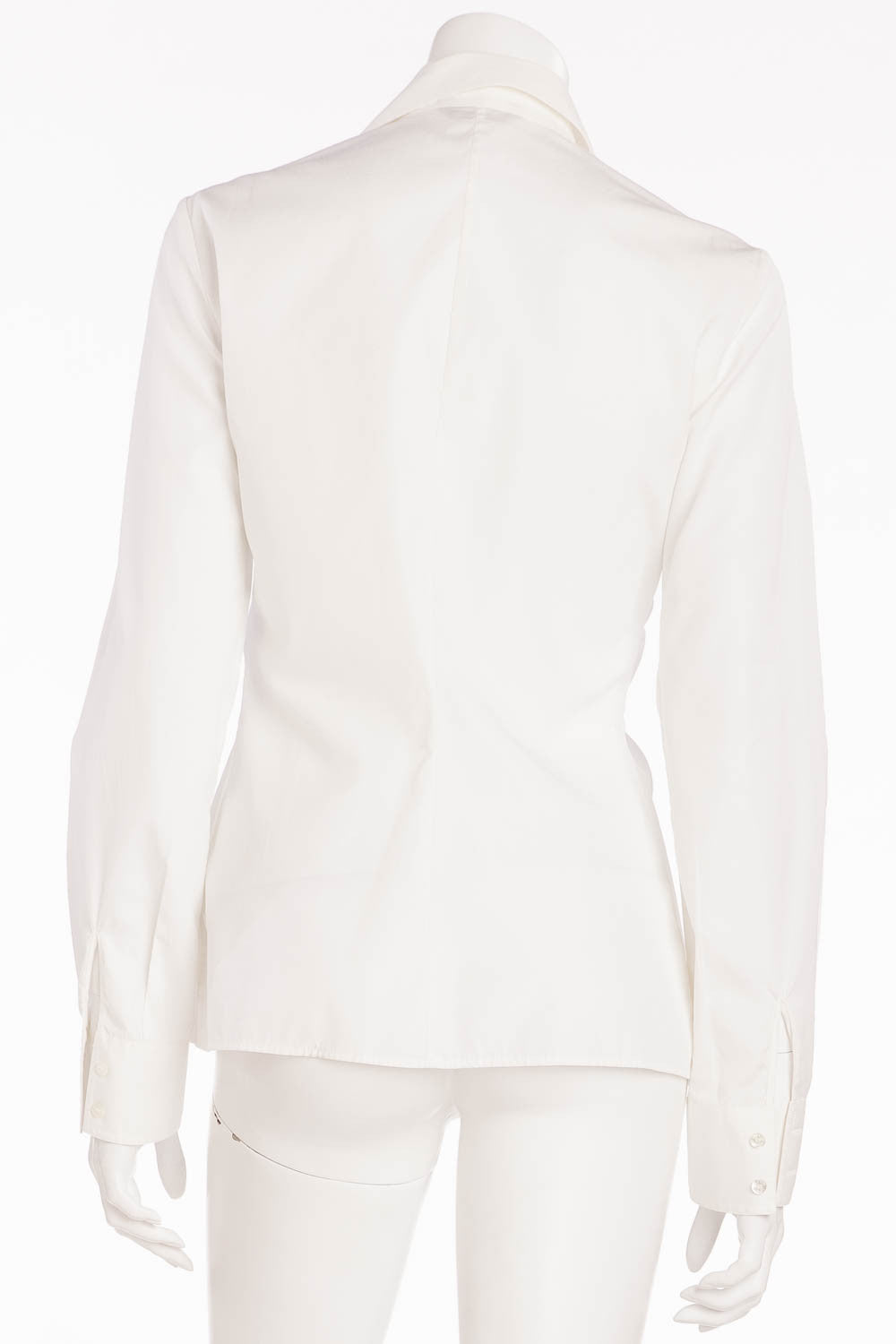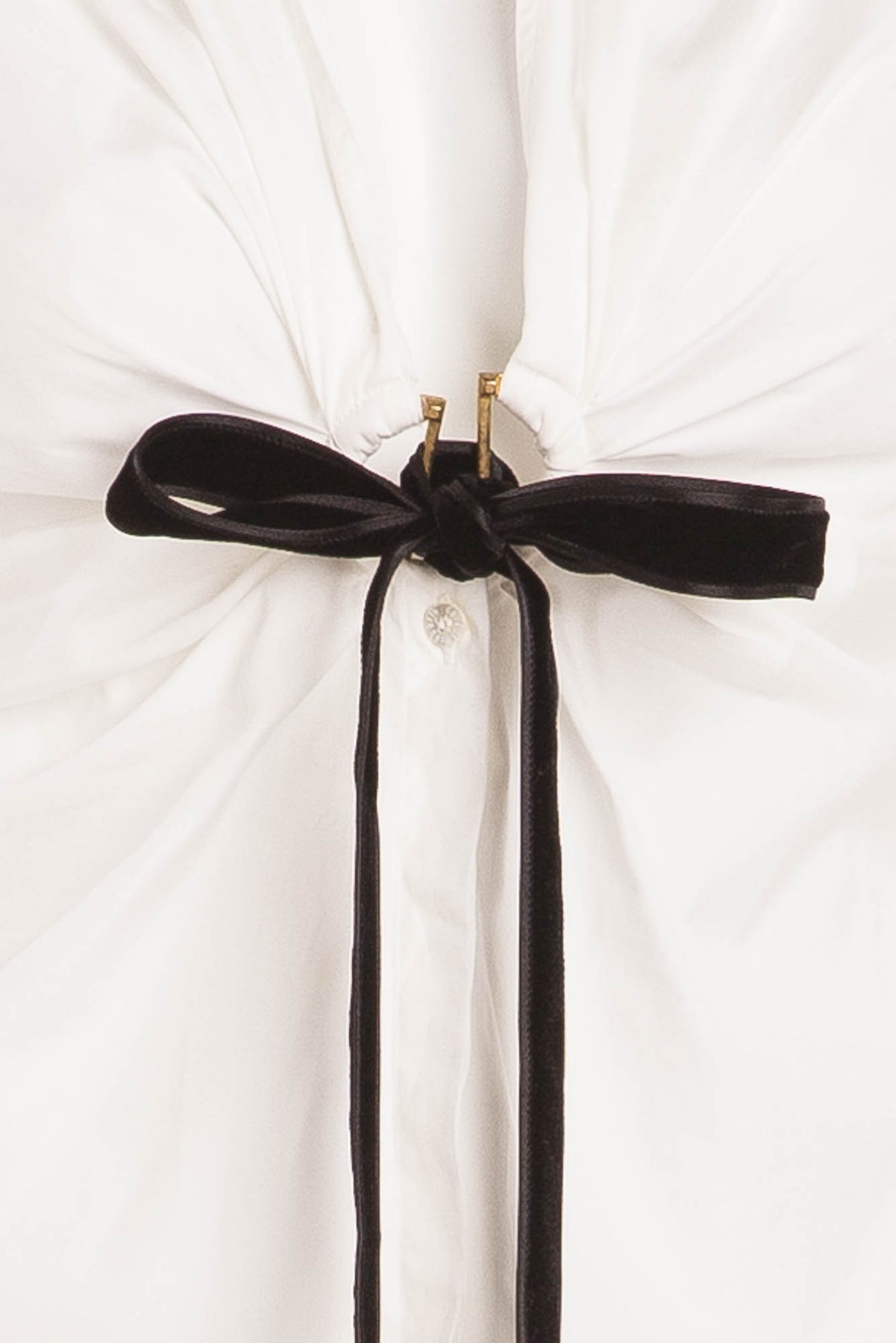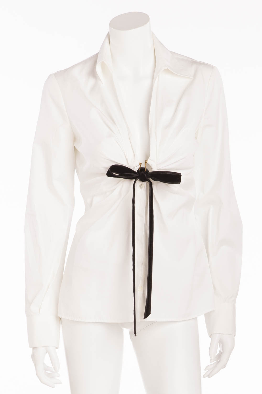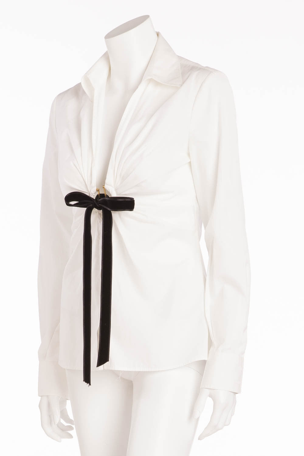 Roberto Cavalli - White Collared Long Sleeve Button Up with Black Velvet Bow - IT 40