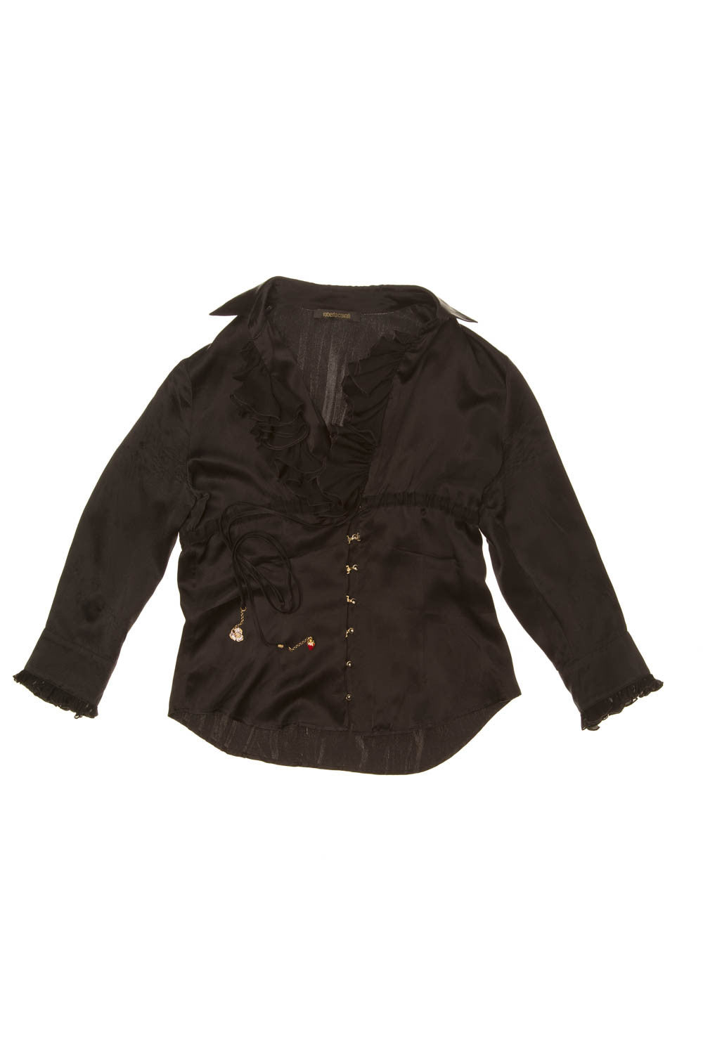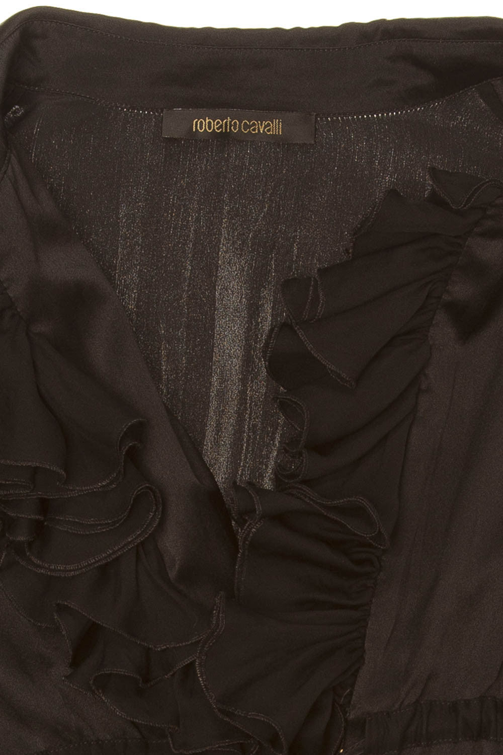 Roberto Cavalli - Black Satin Blouse with Ruffles - IT 40