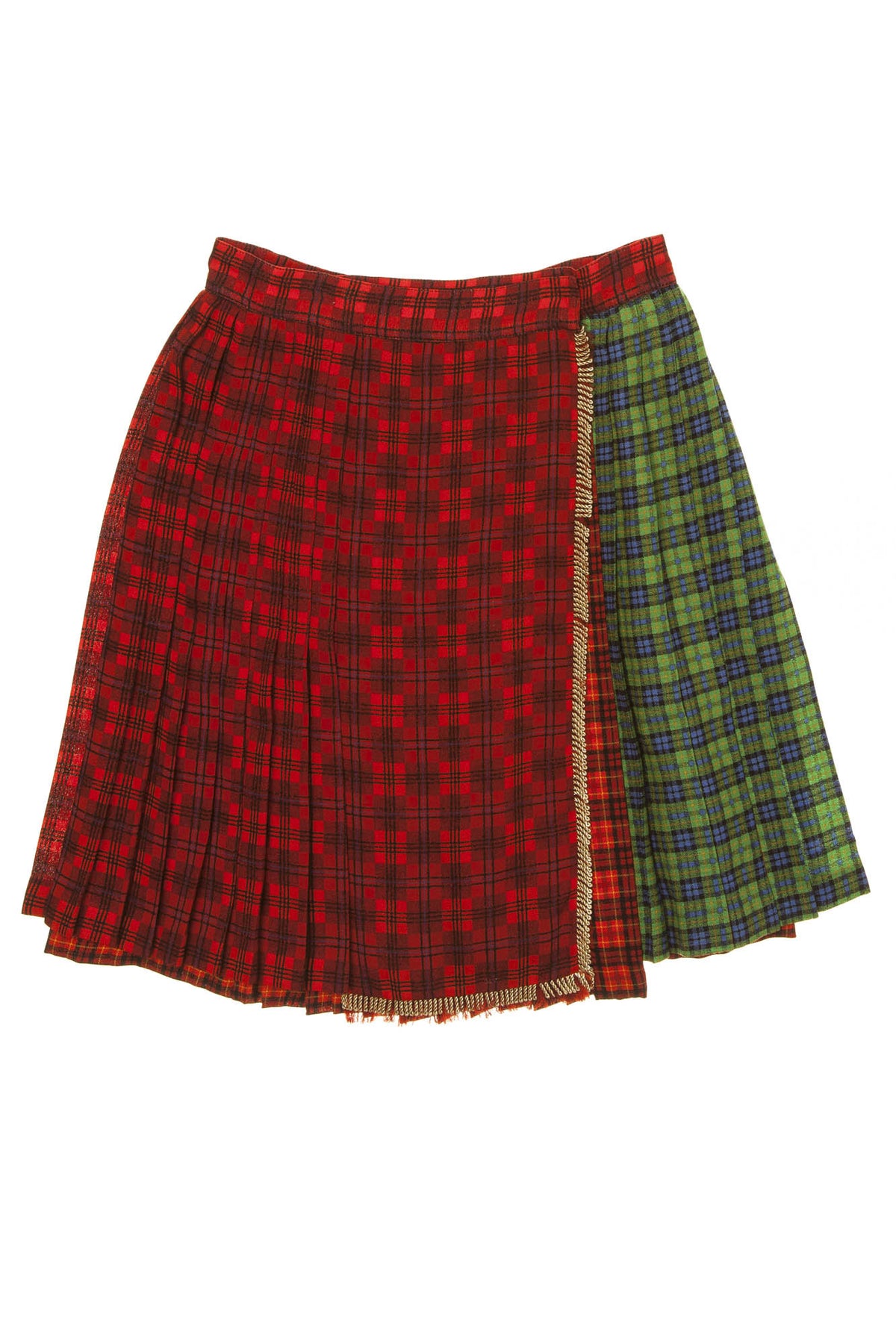 Gianni Versace Couture - Tartan Pleated Wool Blend Green and Red Plaid Skirt - IT 42