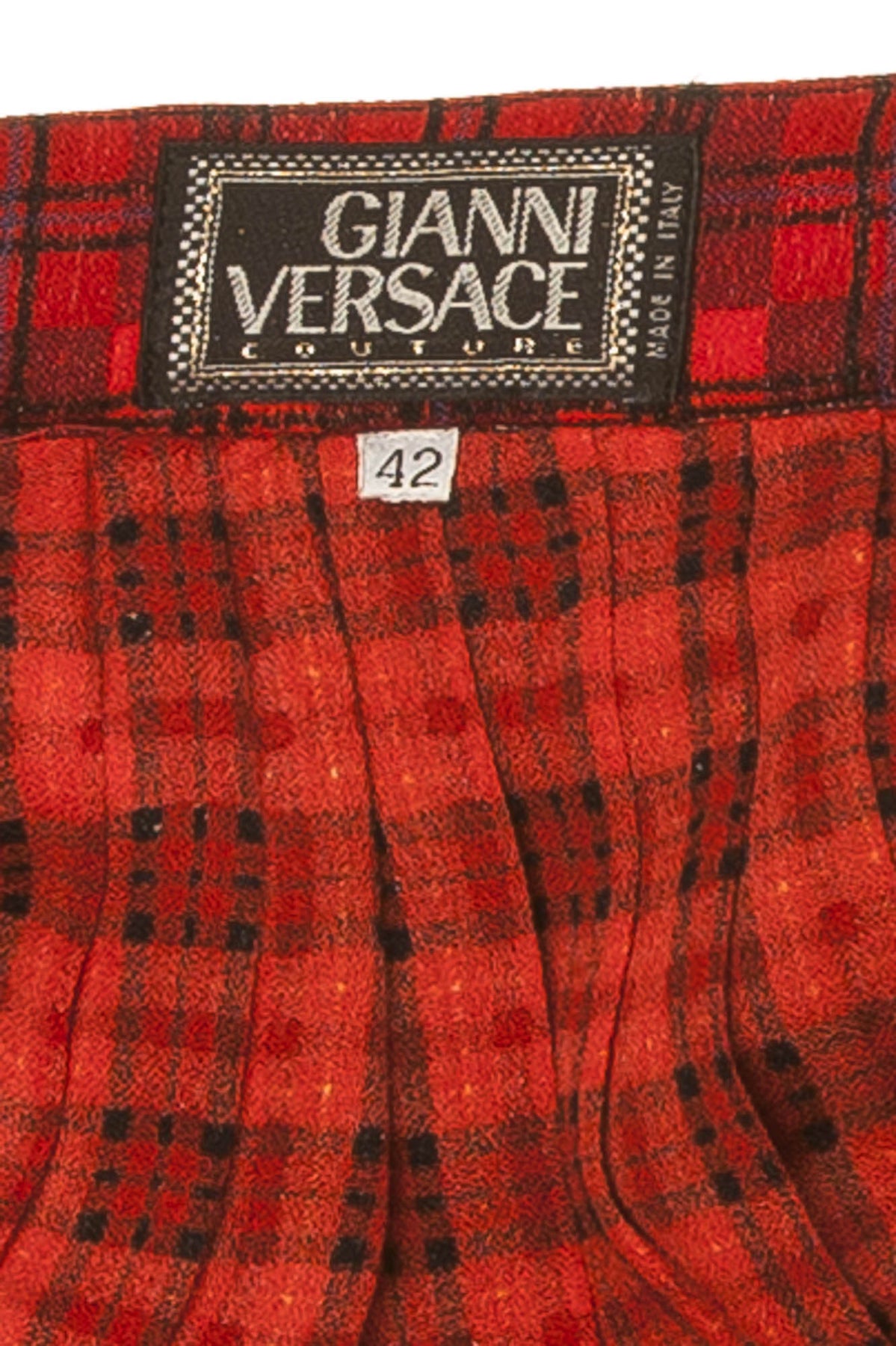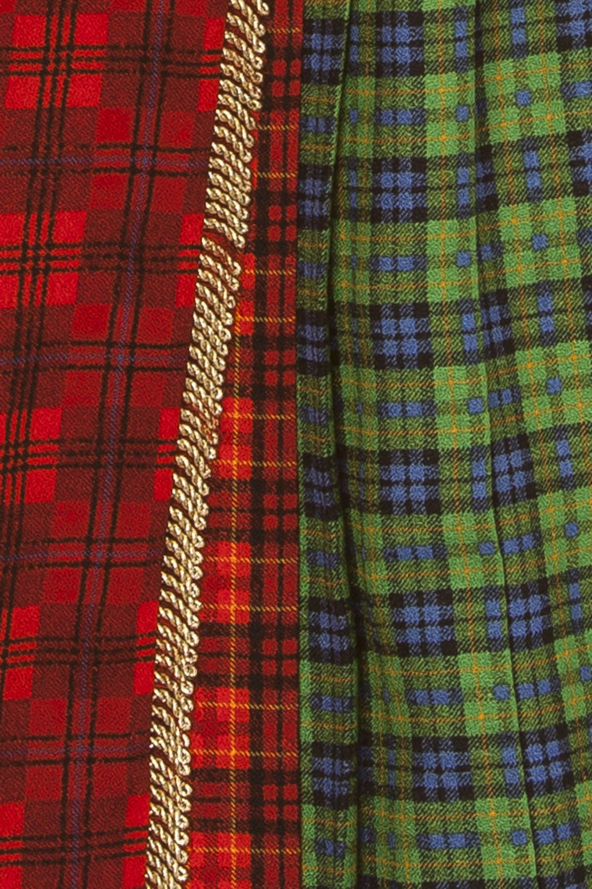 • Original Gianni Versace Tartan Pleated Wool Blend Skirt with gold fringed braid detailing