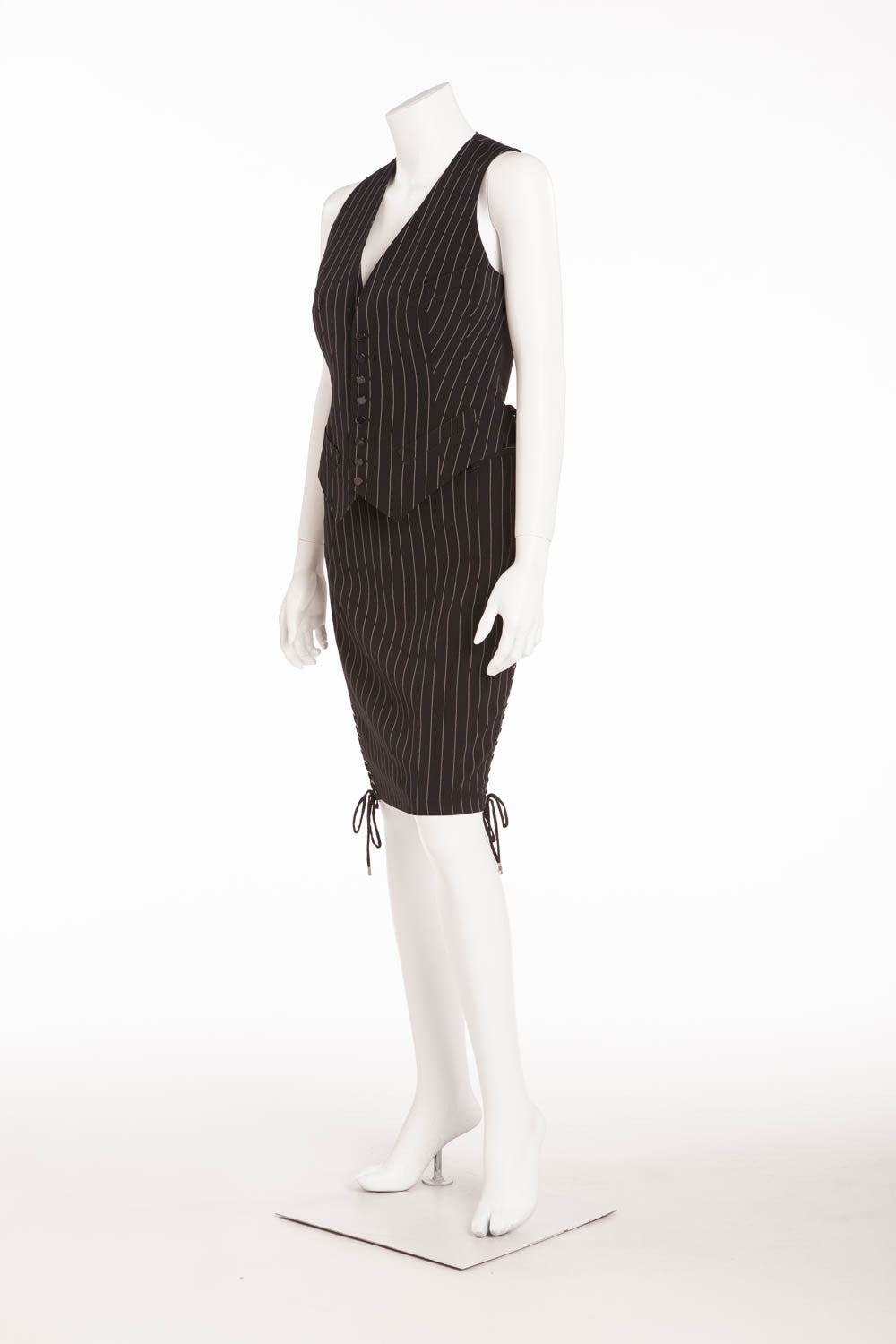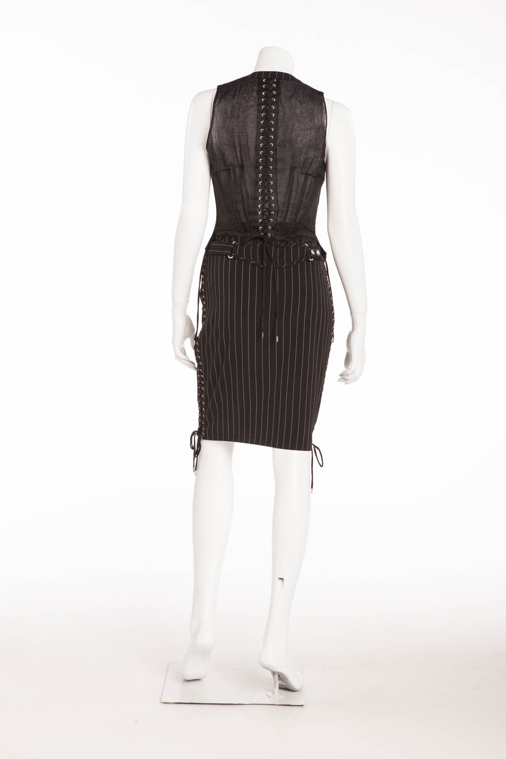 Jean Paul Gaultier - 2PC Pin Stripe Vest & Skirt Lace Up IT 40