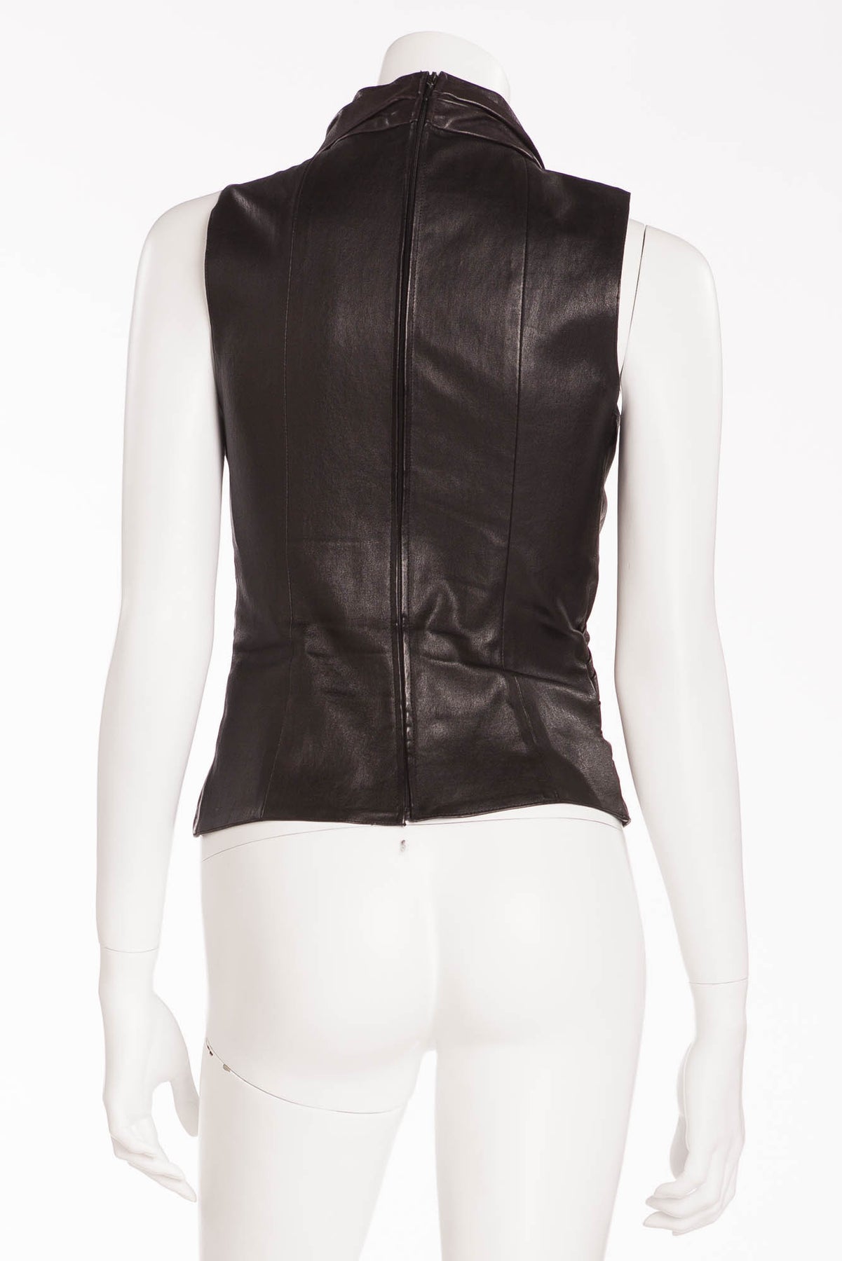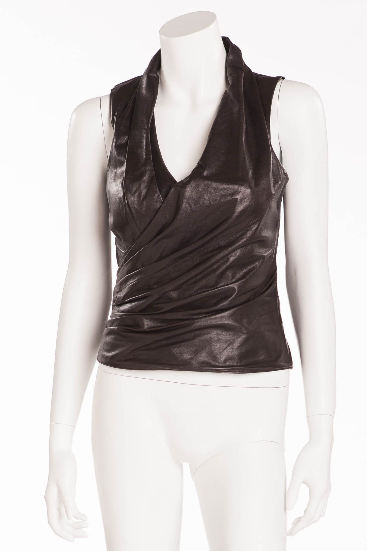 Jitrois - Black Leather Tank Top with Ruching - FR 38