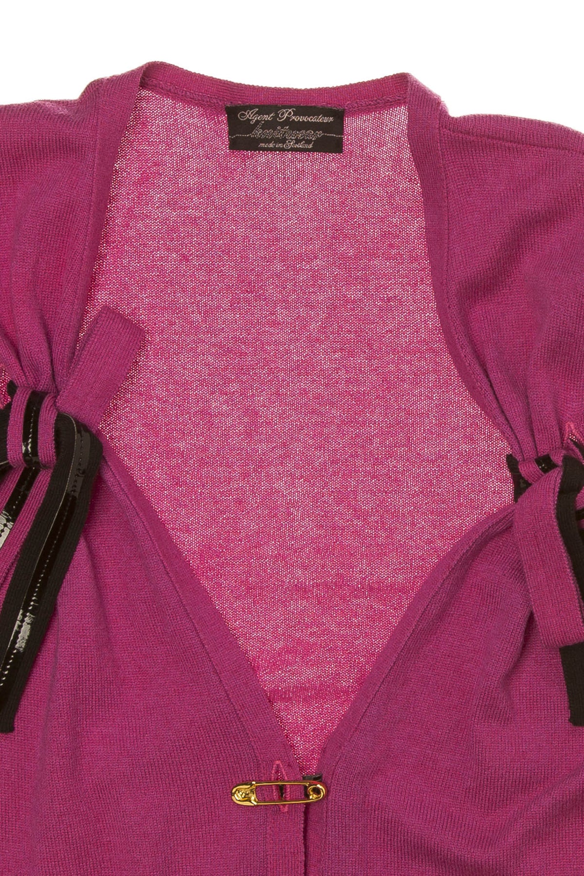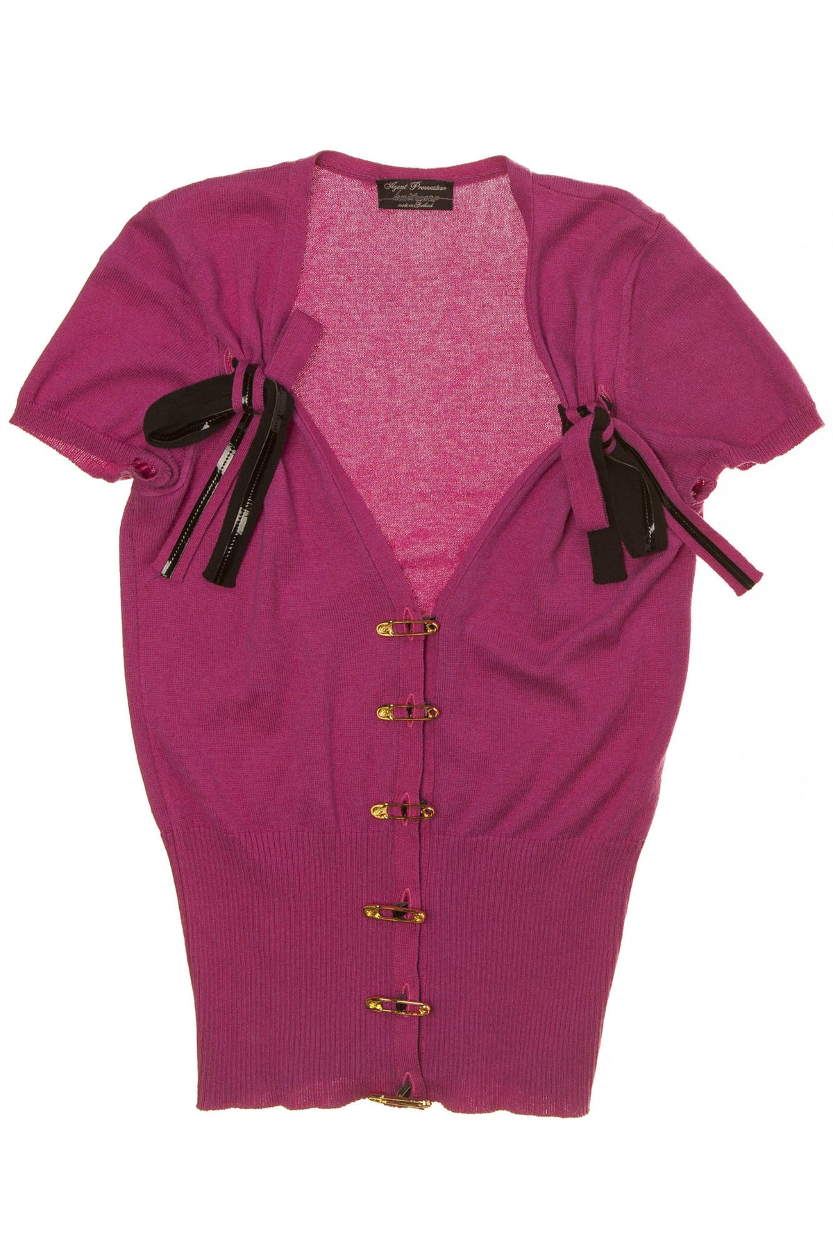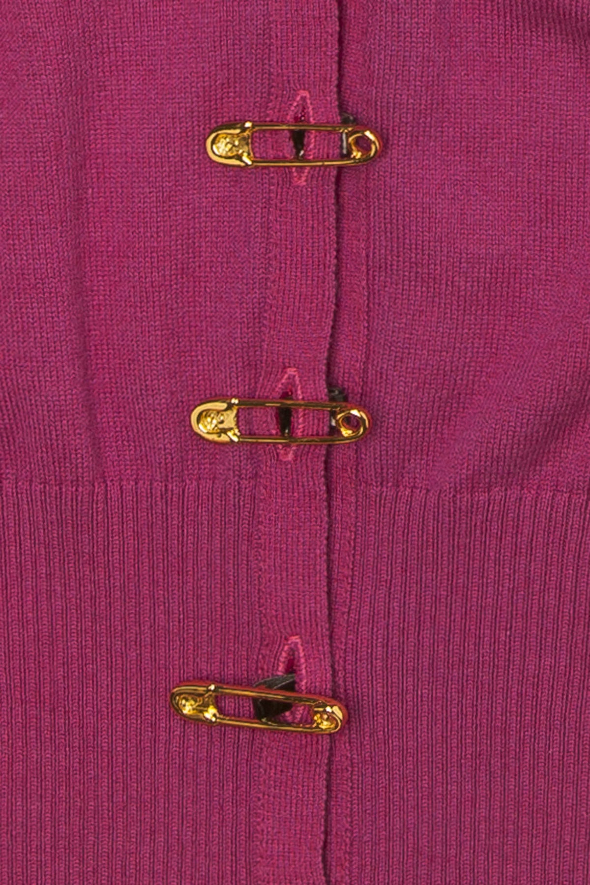 Agent Provocateur Knitwear - Fuchsia Short Sleeve Cardigan with Gold Safety Pin Buttons -