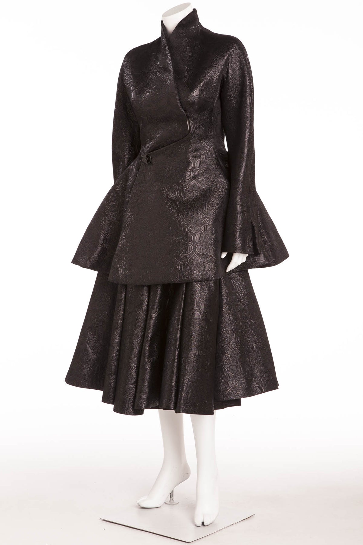 Alexander McQueen - 2PC Black Long Sleeve Floral Jacket and Skirt - IT 42
