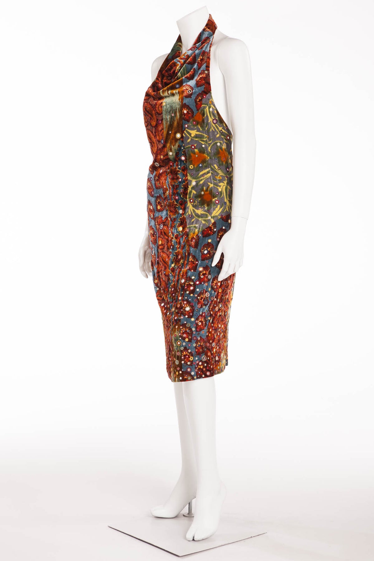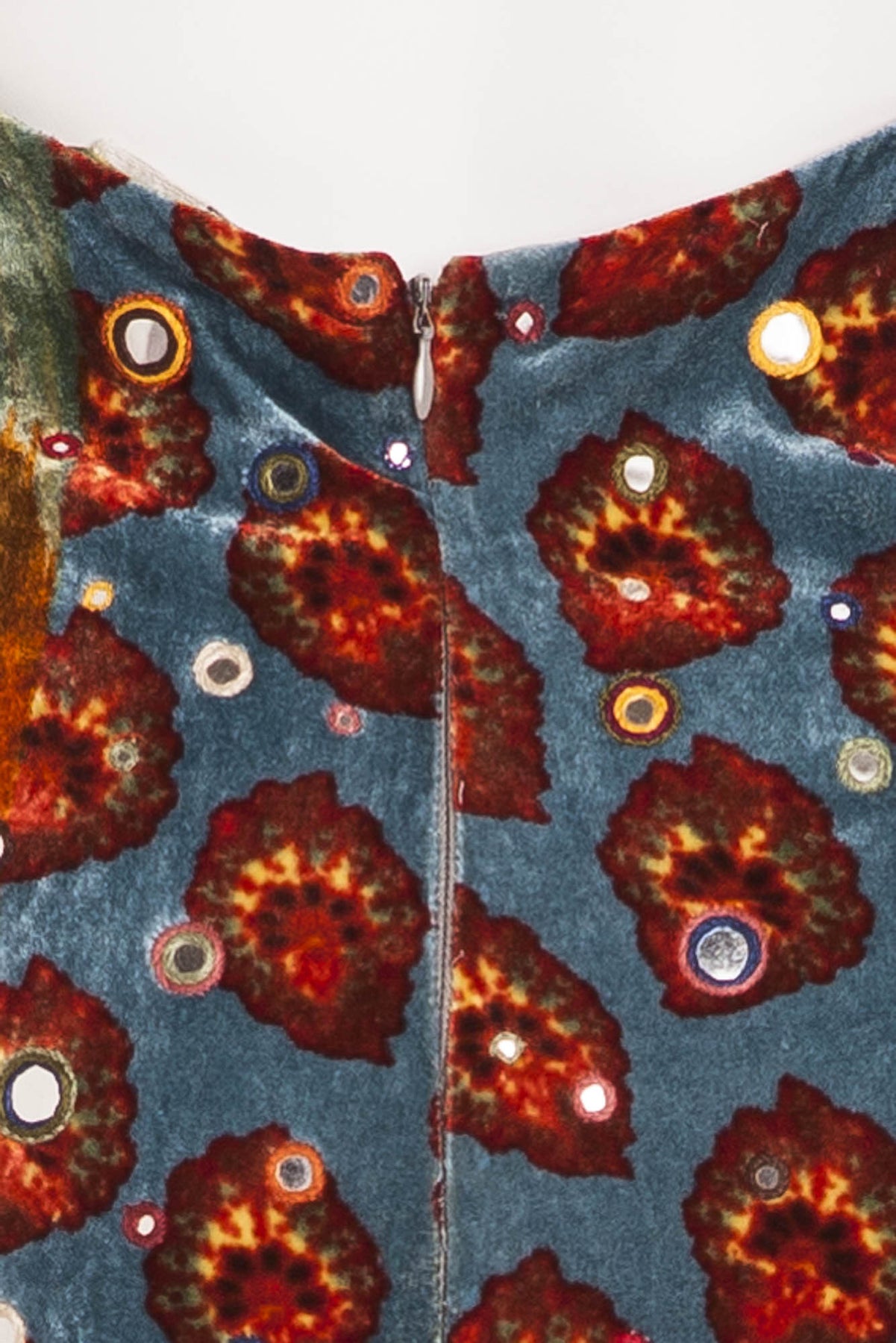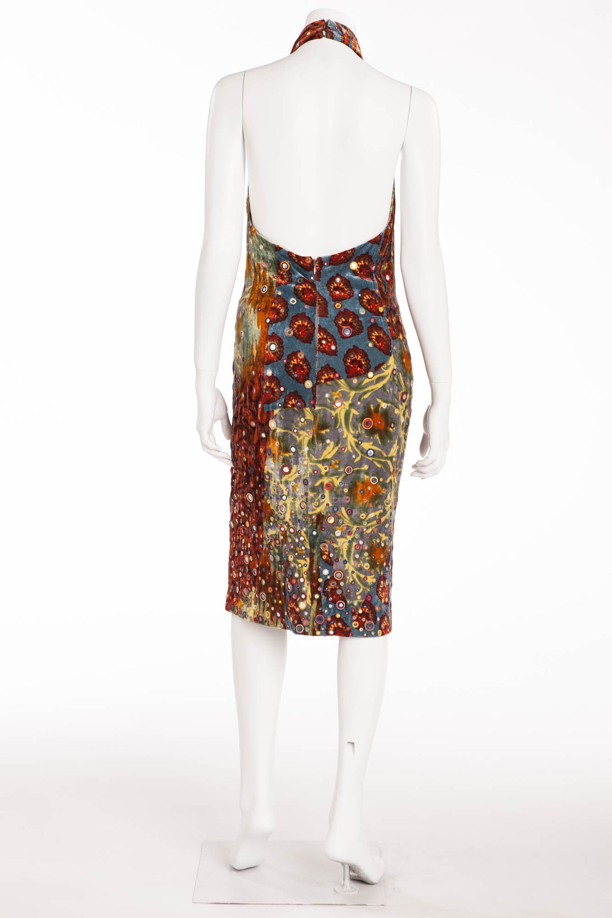 Oscar De La Renta - Blue and Red Velvet Print Halter Dress - US 4