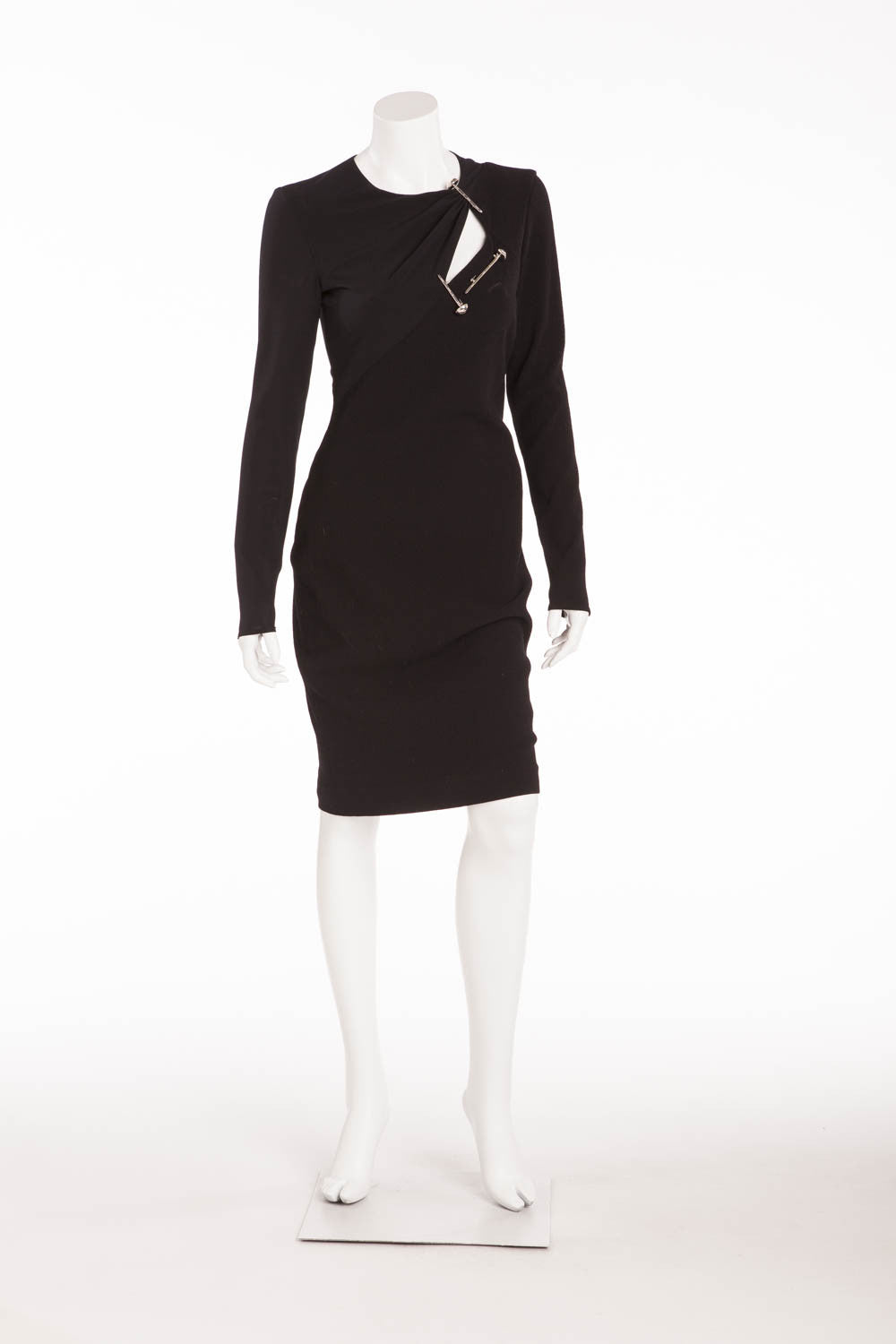 Versace - Long Sleeve Black Mini Dress with 3 Screw Pins - IT 42