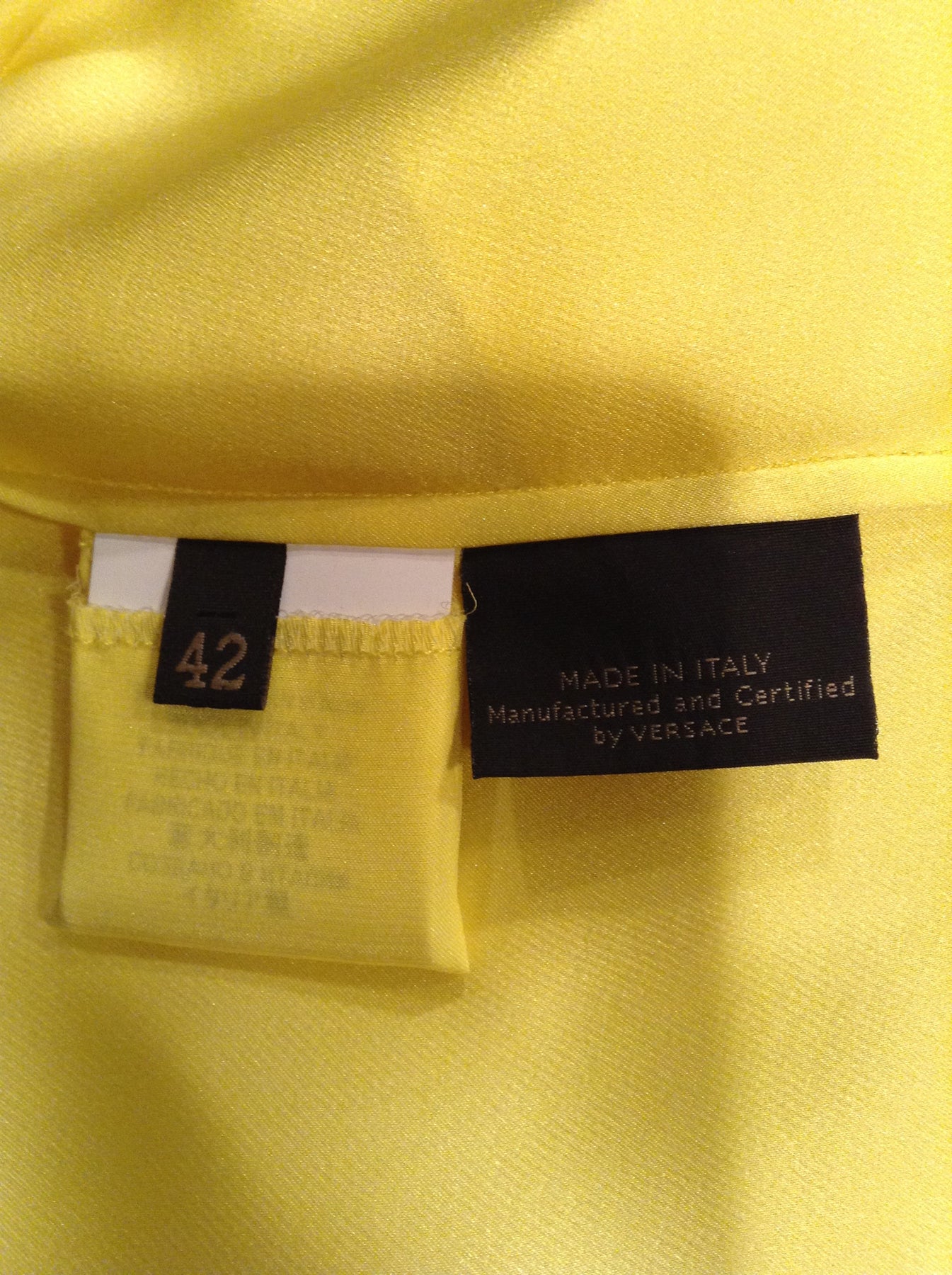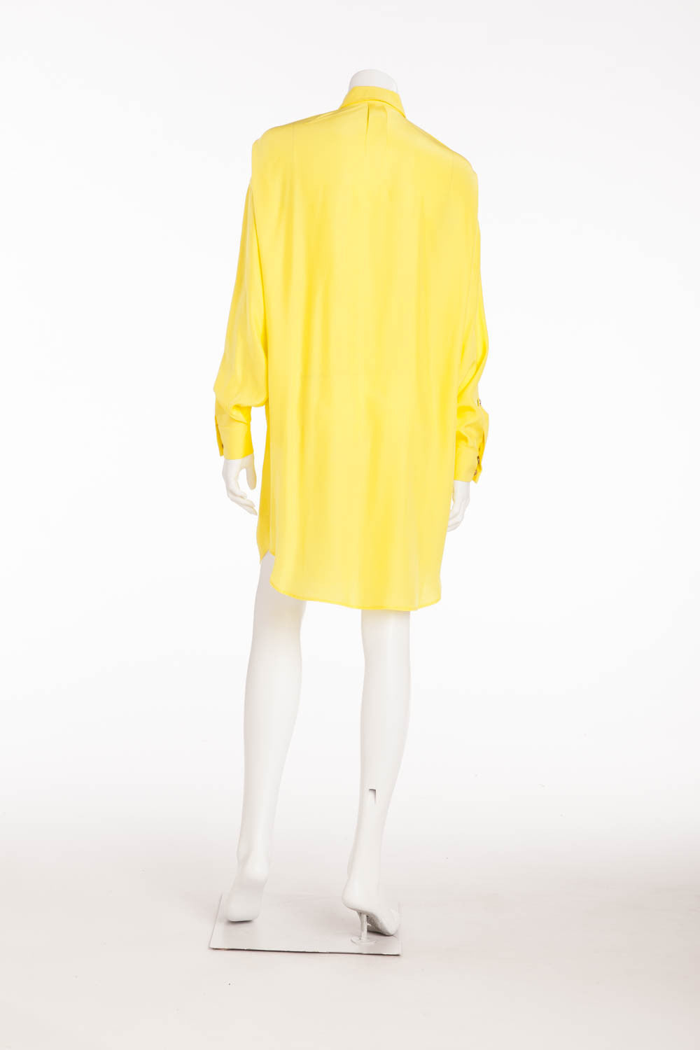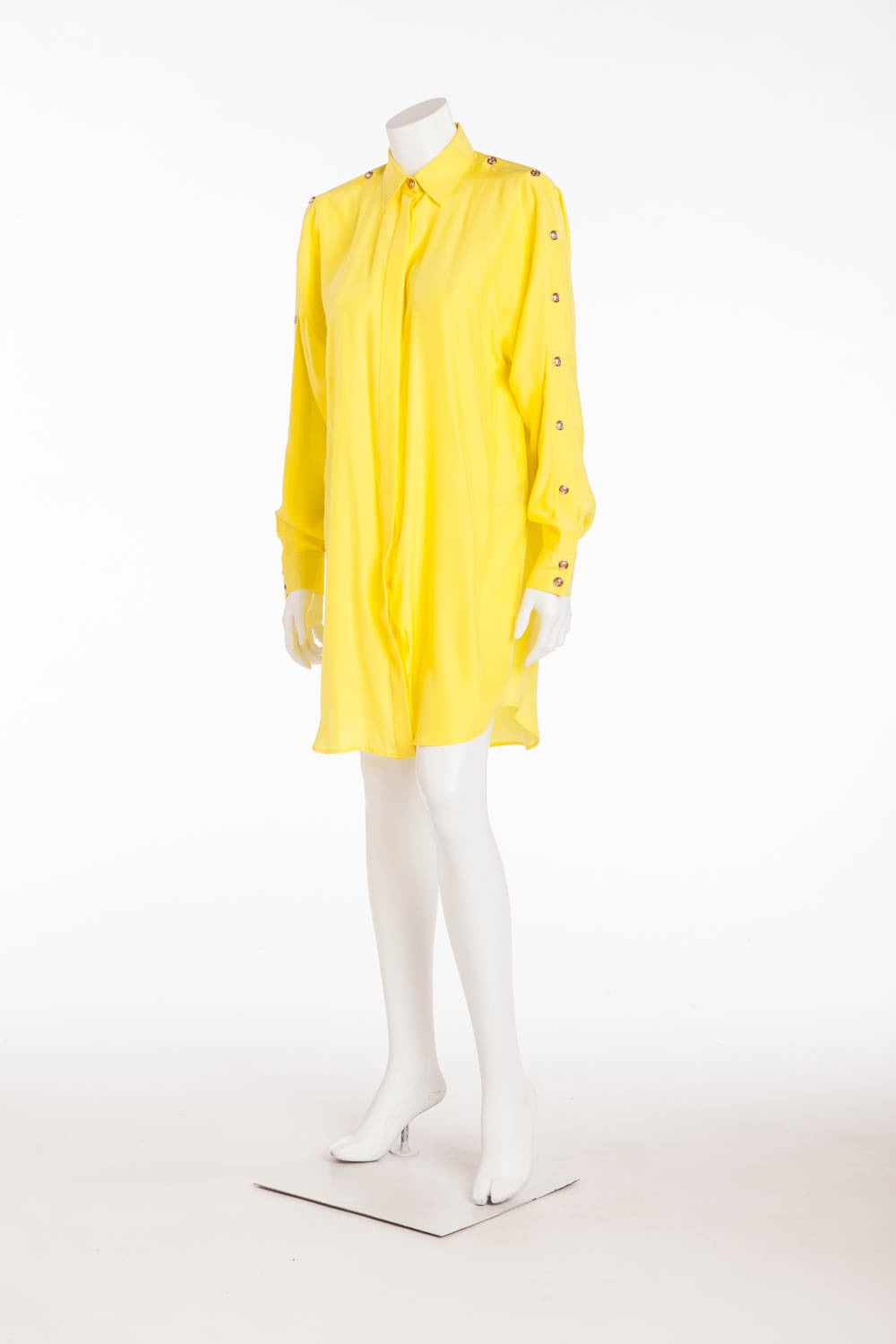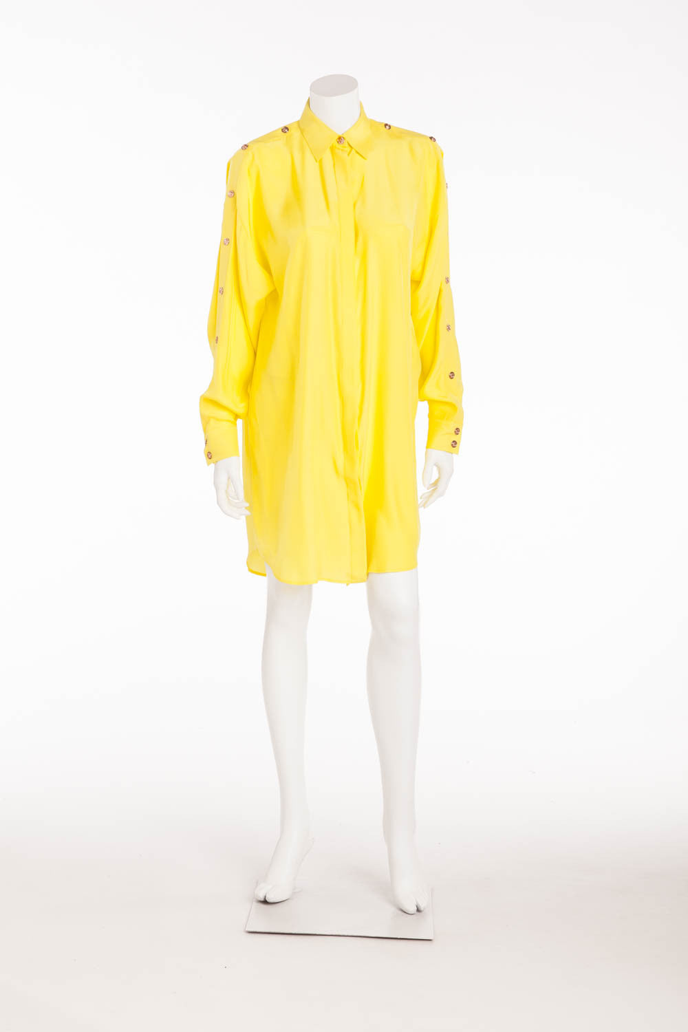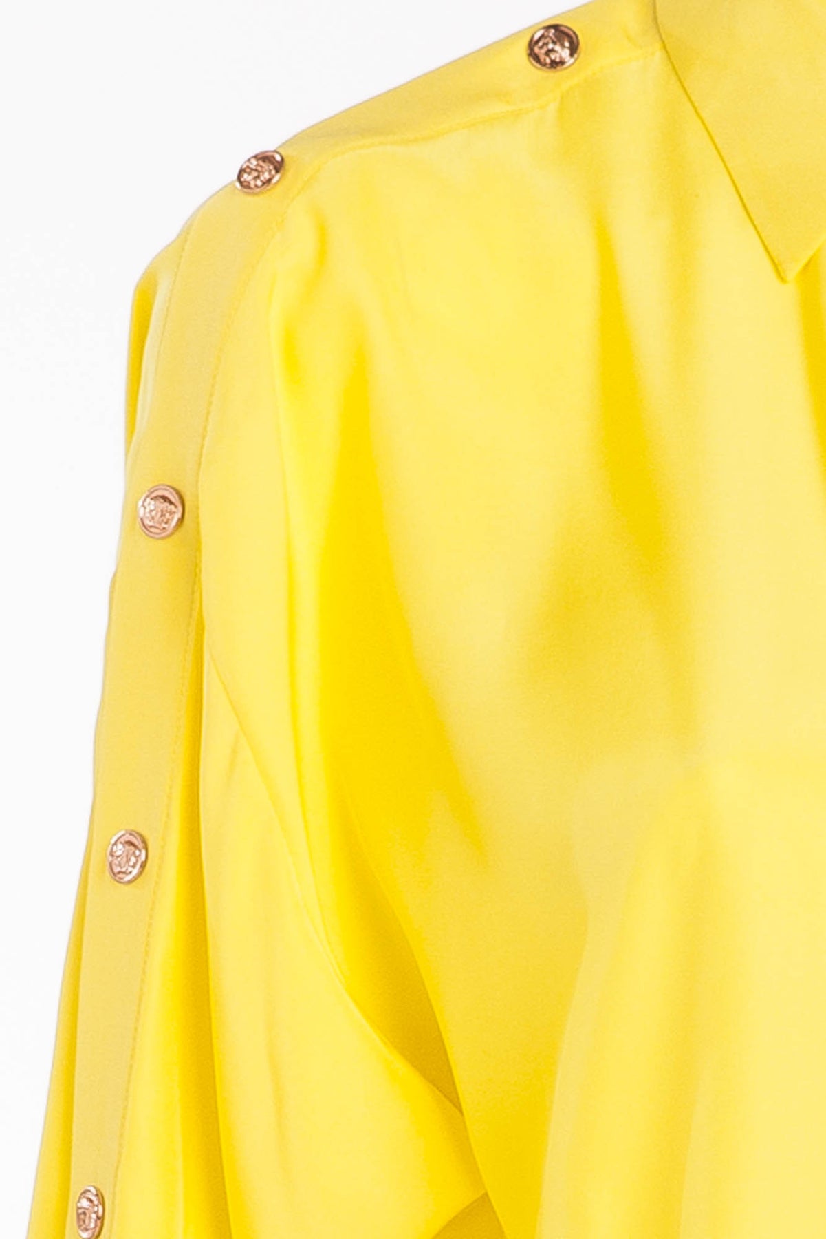 Versace - Yellow Long Sleeve Silk Button Up Dress Shirt with Rose Gold Buttons on Sleeve - IT 42